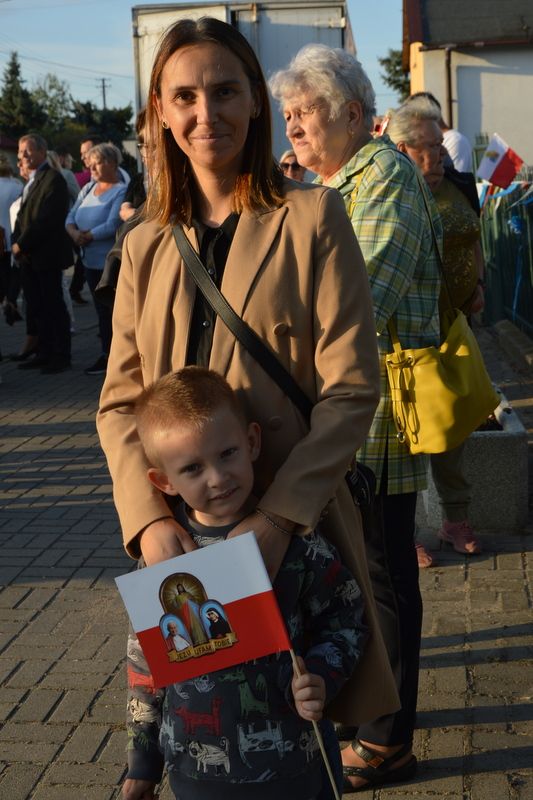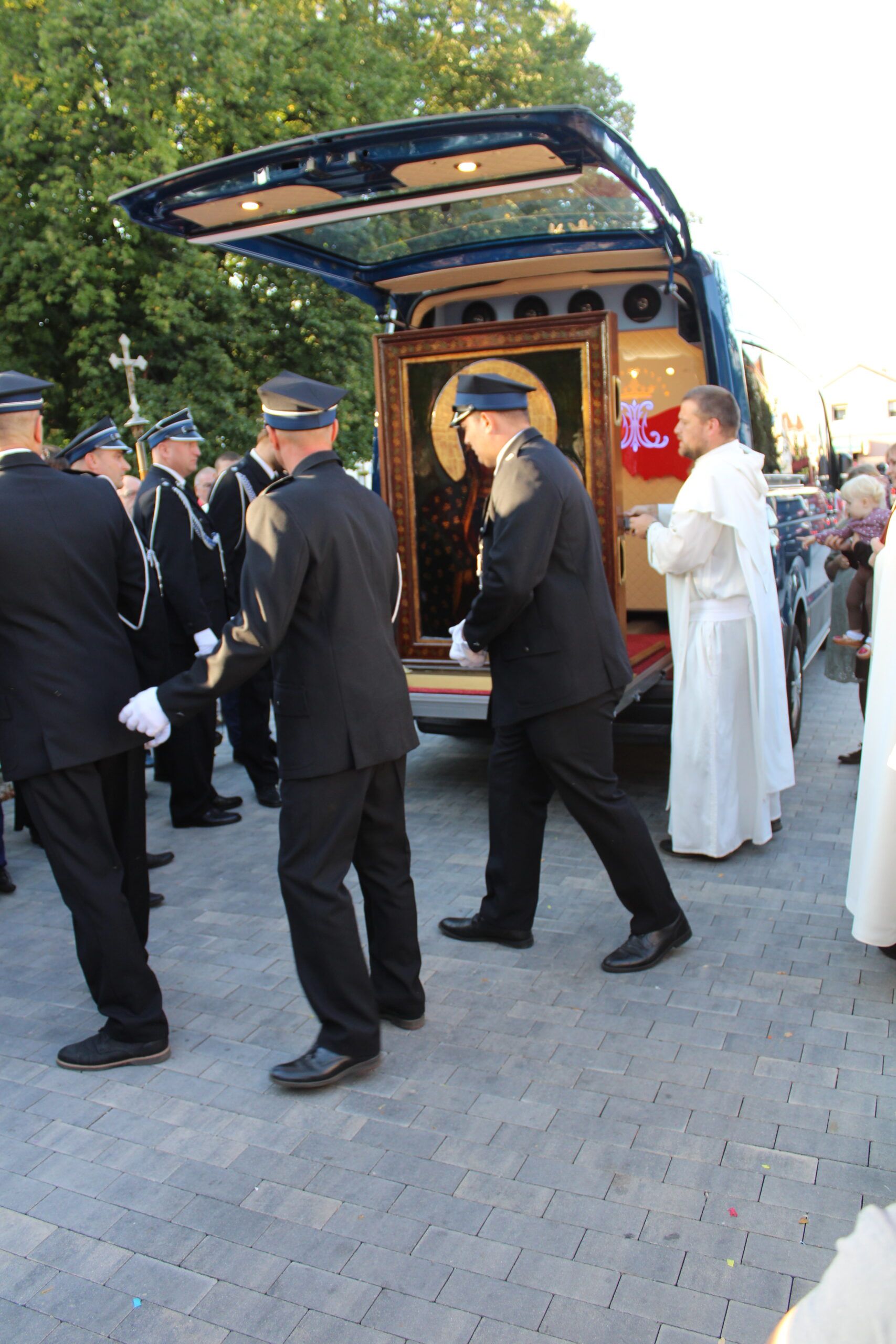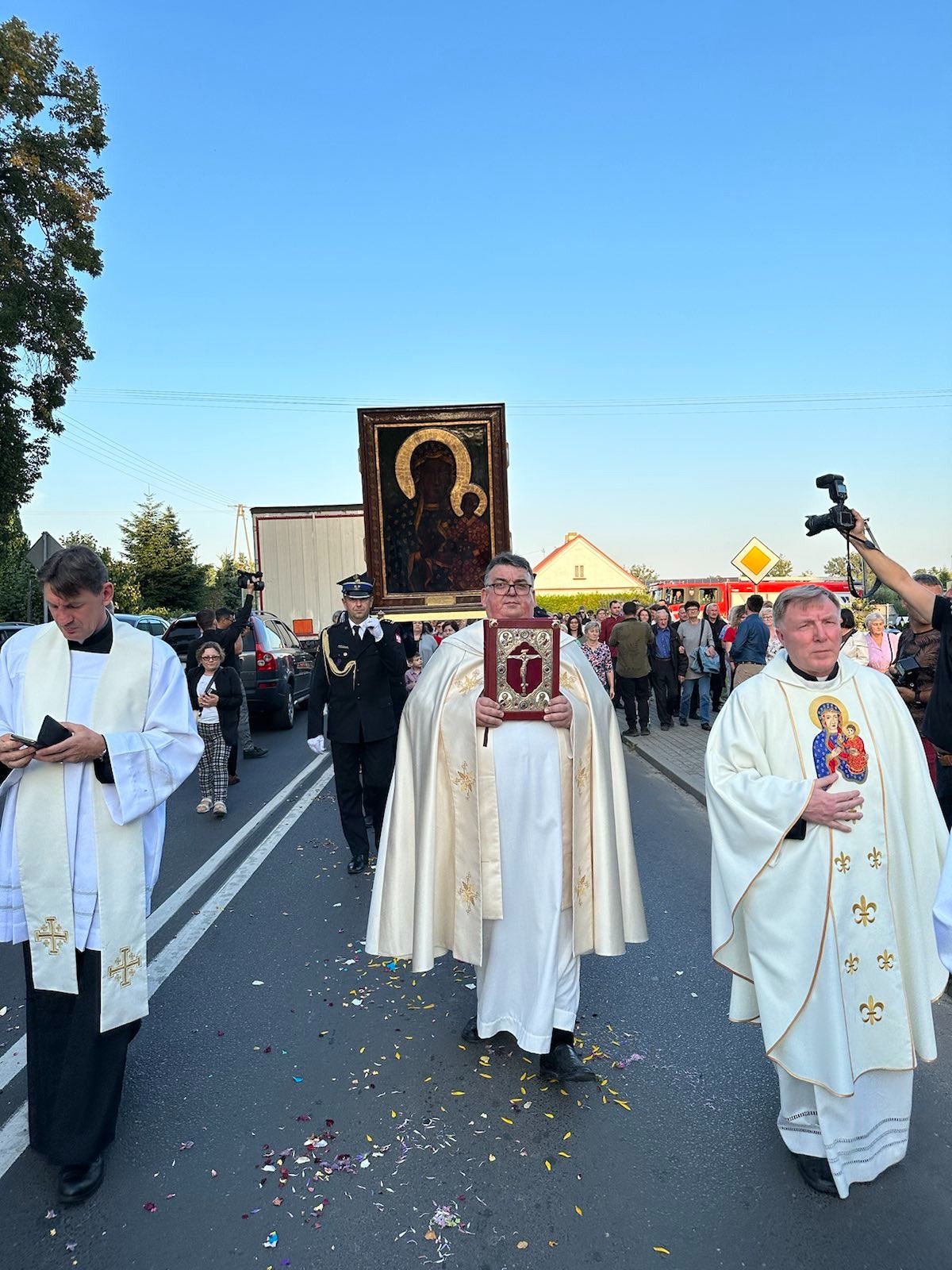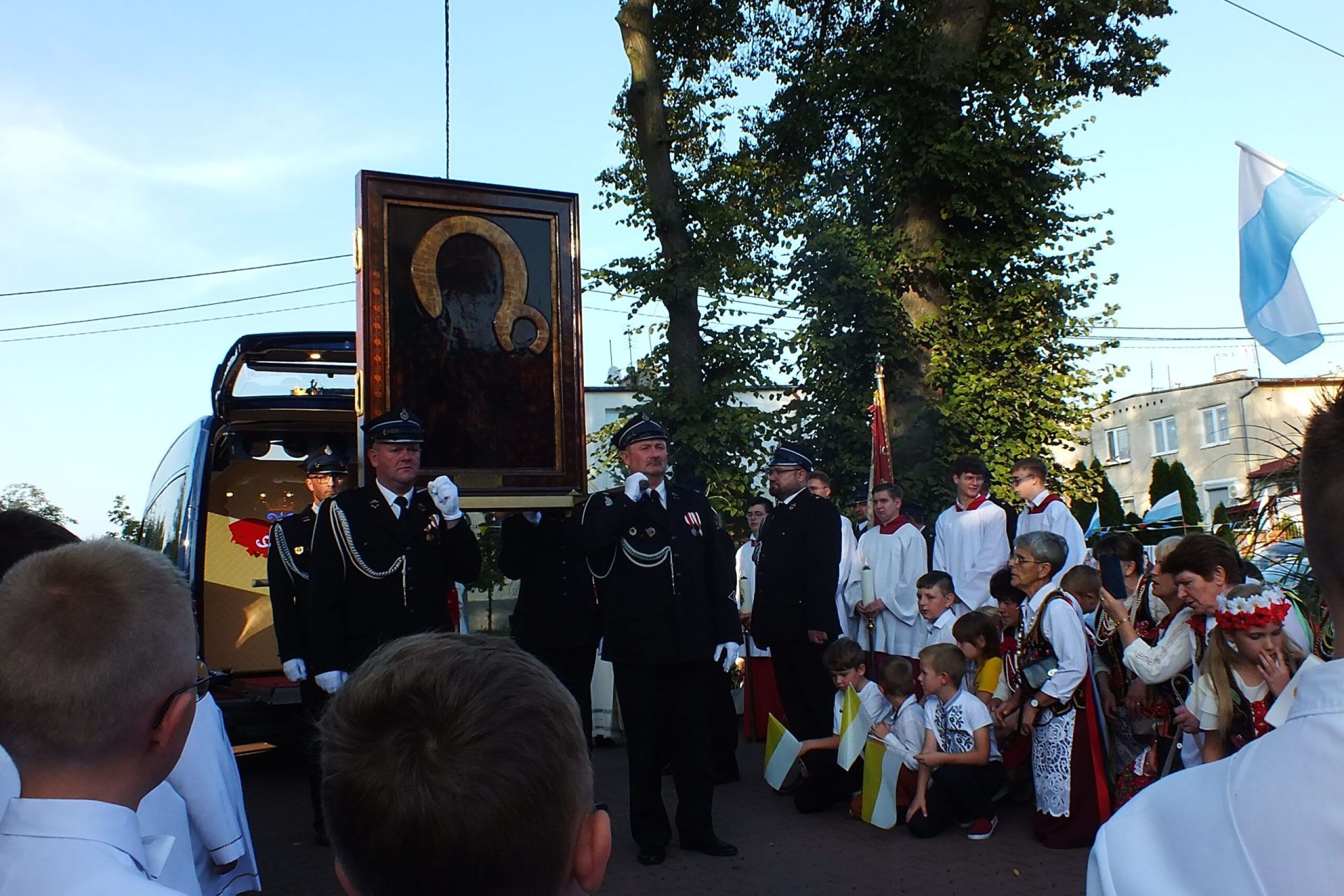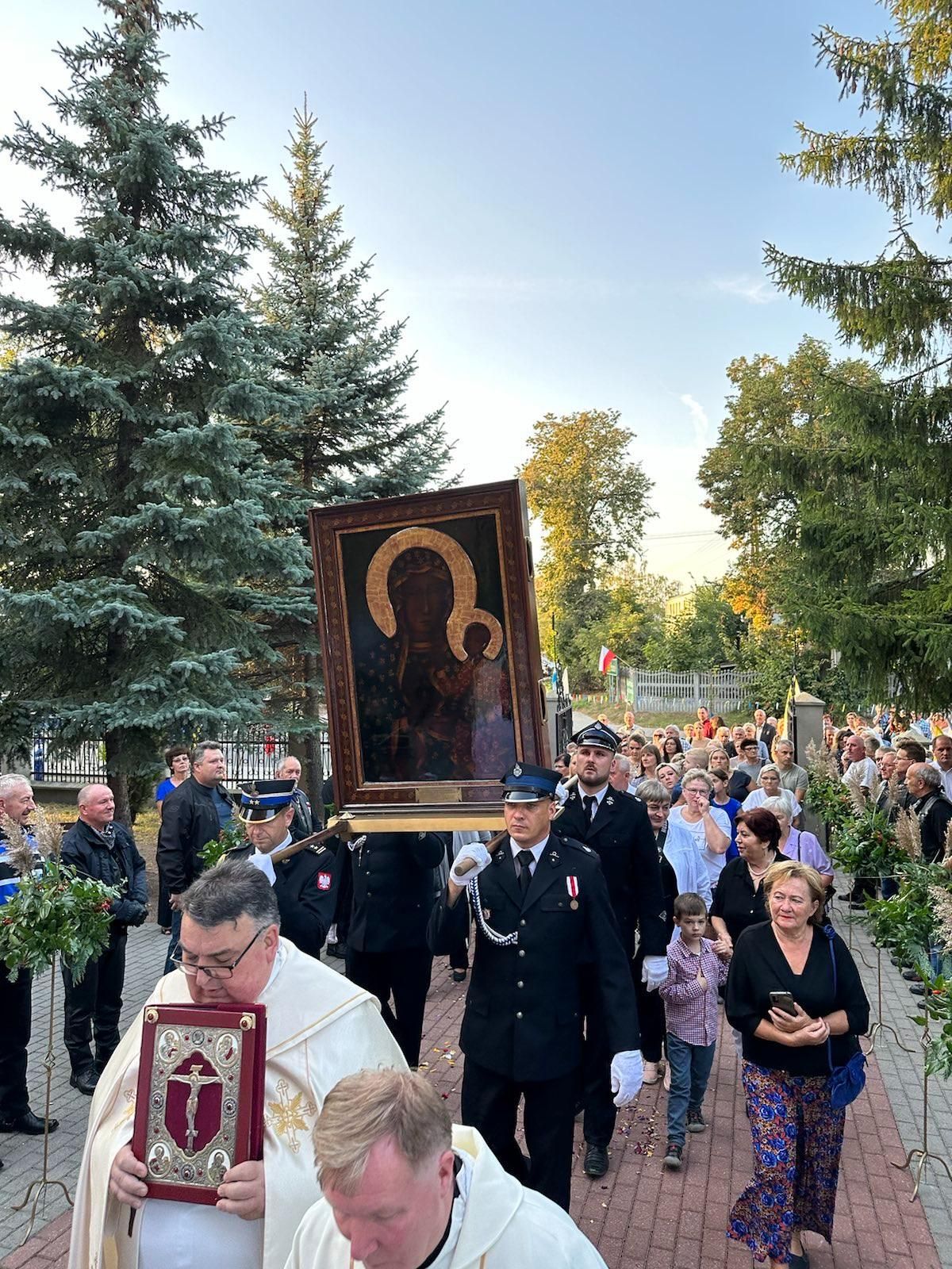 W niedzielę 24 września 2023 r. ks. proboszcz Łukasz Grabiasz, wspólnie z ks. wikariuszem Rafałem Marczewskim oraz ks. biskupem Wiesławem Meringiem, uroczyście powitali Obraz. Następnie podczas procesji, w asyście poszczególnych delegacji, druhów strażaków, orkiestry oraz licznie przybyłych parafian, Ikona Matki Bożej Jasnogórskiej została przeniesiona do kościoła. O godz. 18.00 rozpoczęła się Msza św. powitalna zudziałem kapłanów z dekanatu, której przewodniczył ks. bp Wiesław Mering.