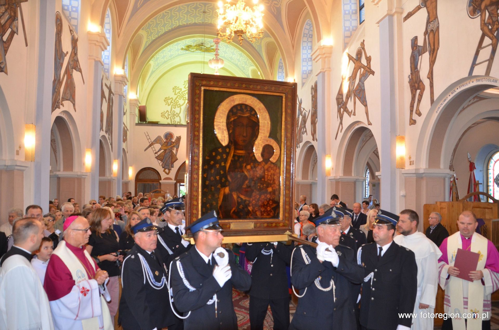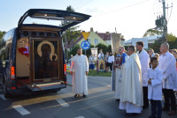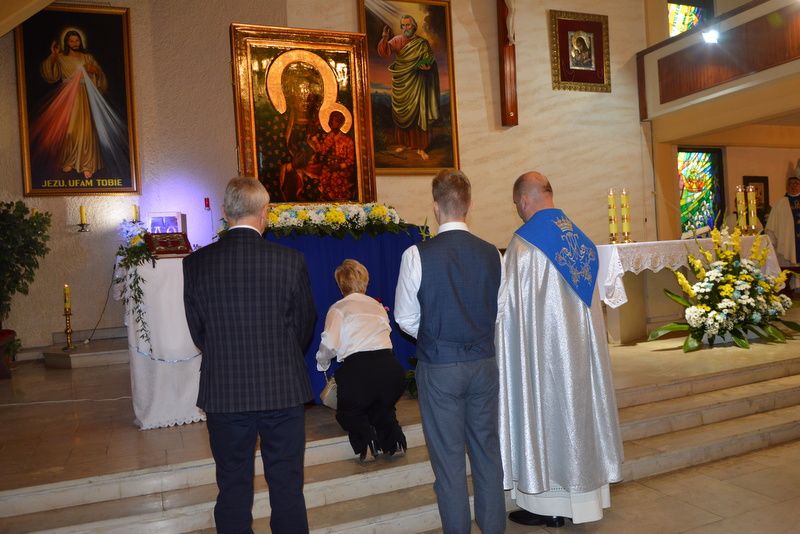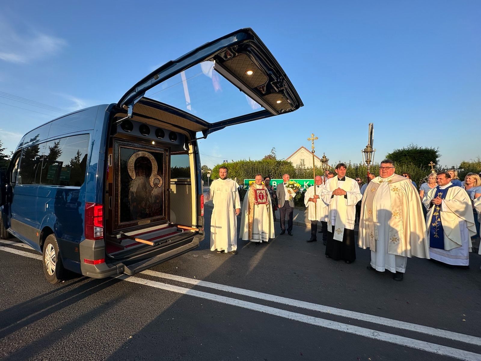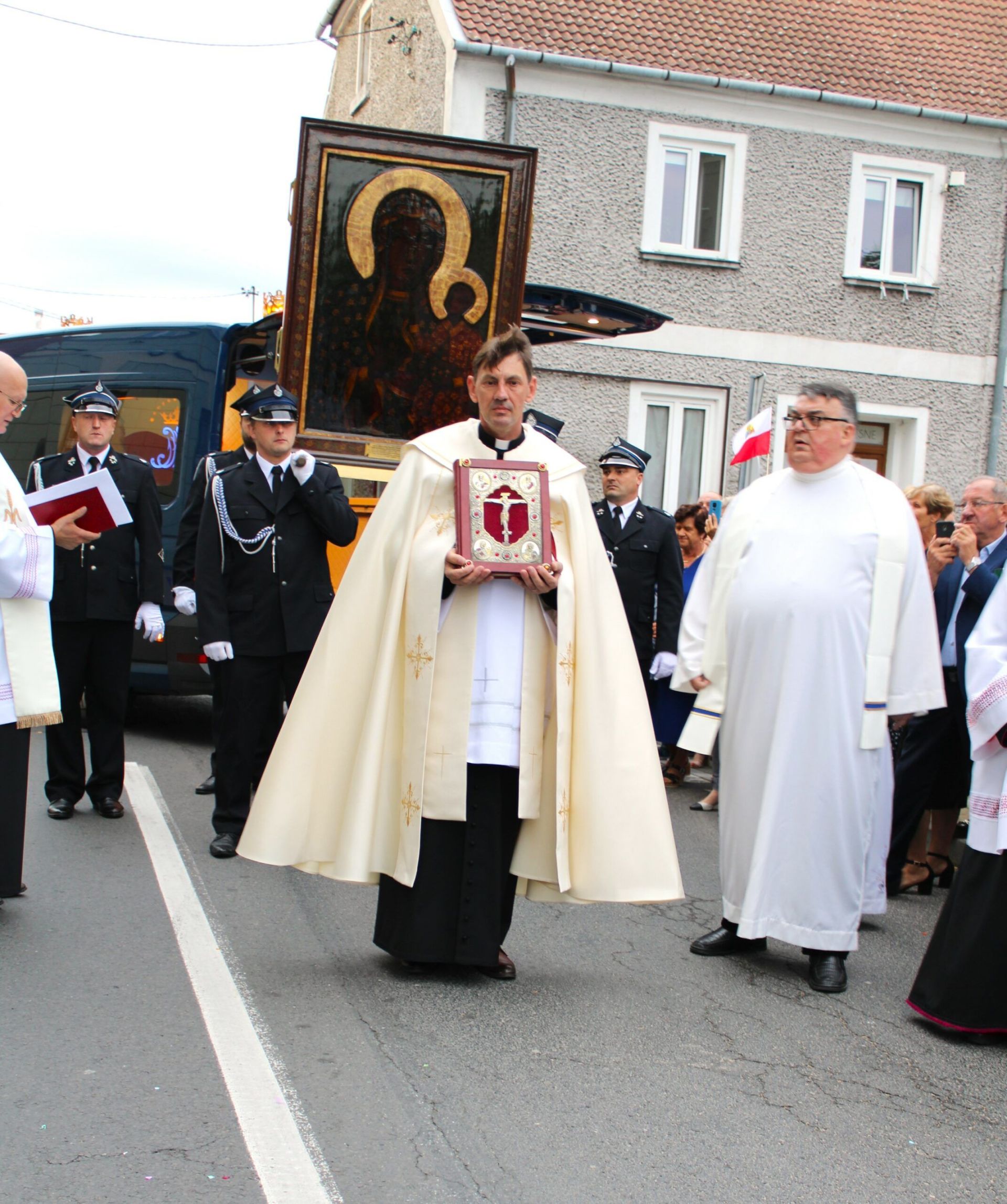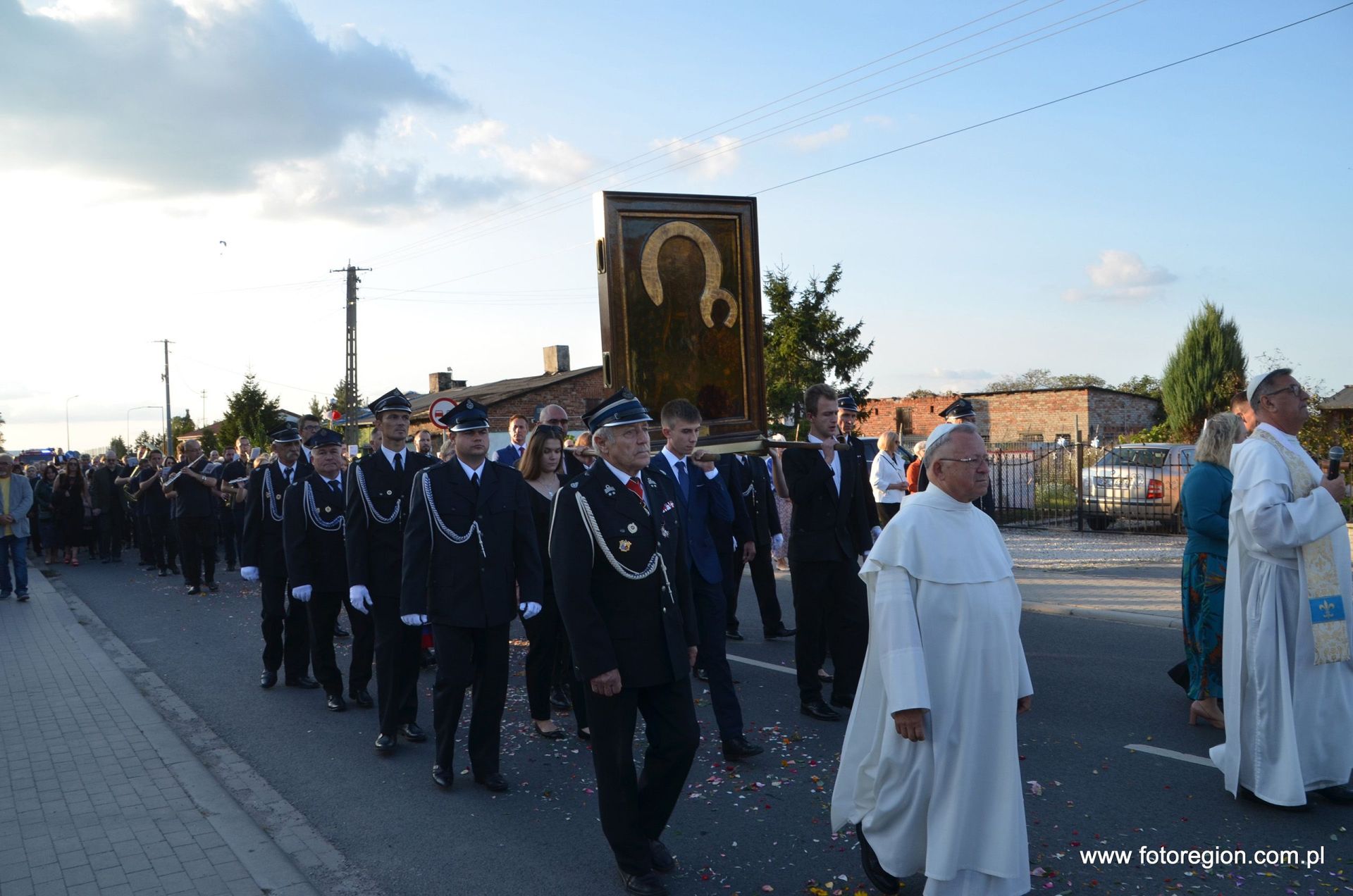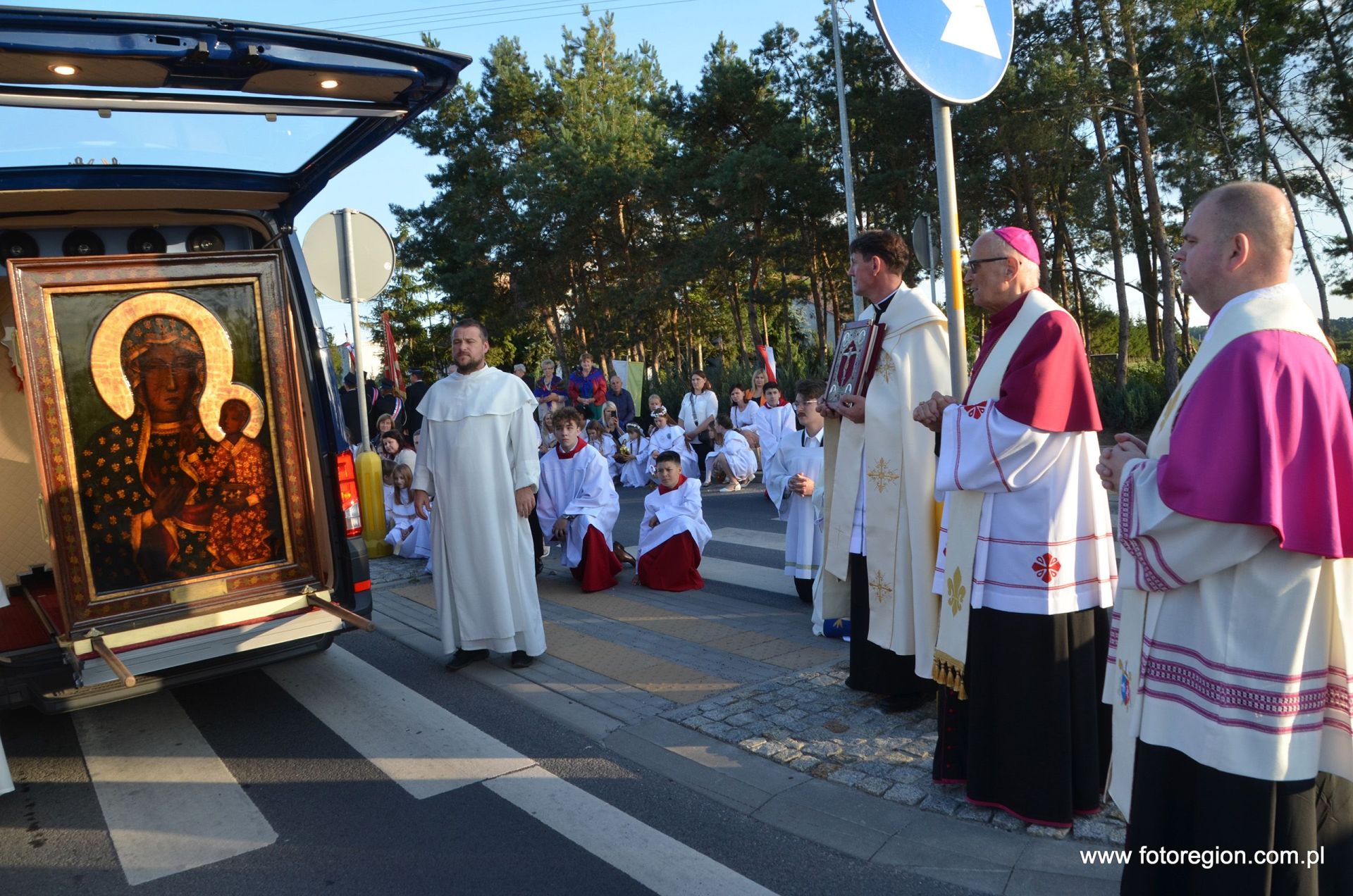 W niedzielę 24 września 2023 r. ks. proboszcz Łukasz Grabiasz, wspólnie z ks. wikariuszem Rafałem Marczewskim oraz ks. biskupem Wiesławem Meringiem, uroczyście powitali Obraz. Następnie podczas procesji, w asyście poszczególnych delegacji, druhów strażaków, orkiestry oraz licznie przybyłych parafian, Ikona Matki Bożej Jasnogórskiej została przeniesiona do kościoła. O godz. 18.00 rozpoczęła się Msza św. powitalna zudziałem kapłanów z dekanatu, której przewodniczył ks. bp Wiesław Mering.