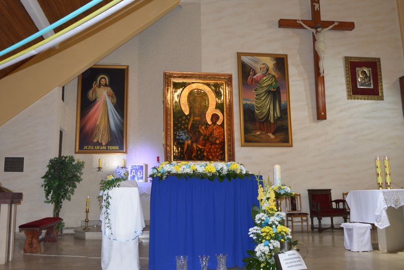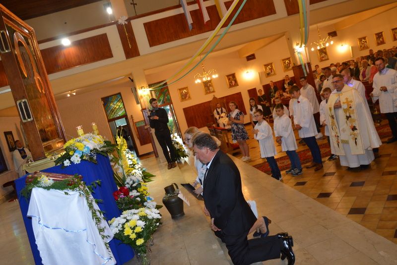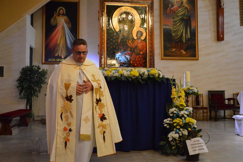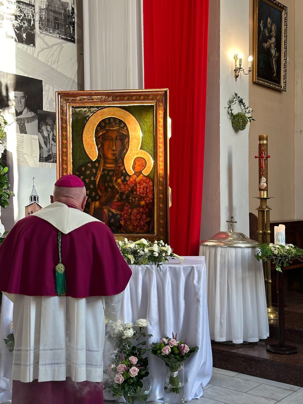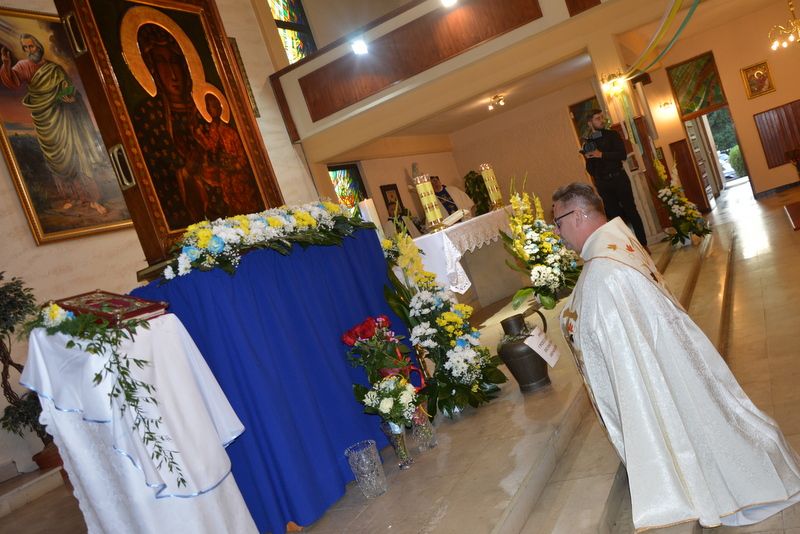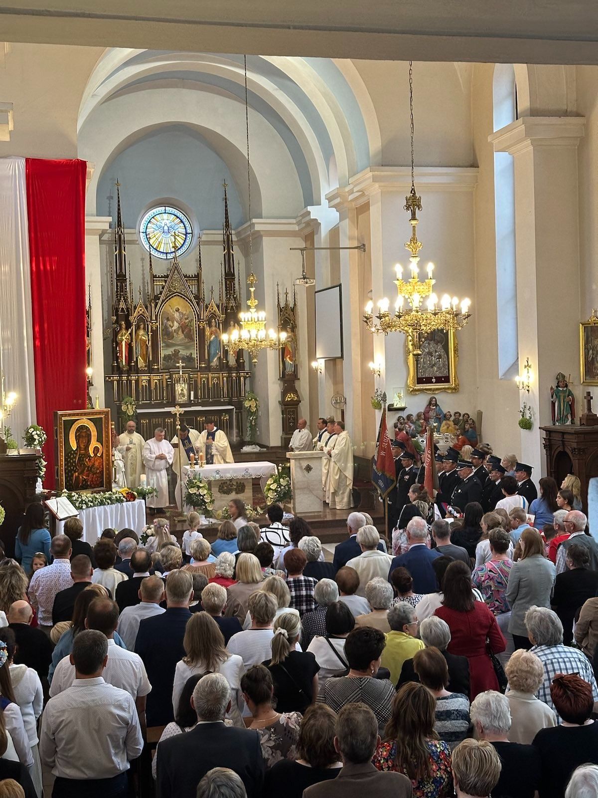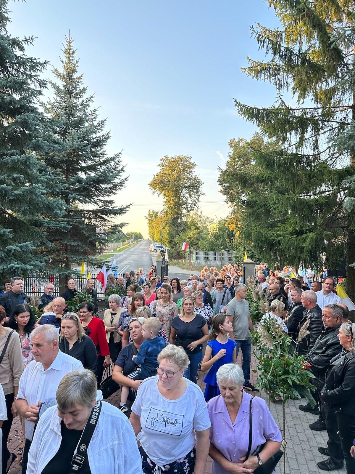 W niedzielę 24 września 2023 r. ks. proboszcz Łukasz Grabiasz, wspólnie z ks. wikariuszem Rafałem Marczewskim oraz ks. biskupem Wiesławem Meringiem, uroczyście powitali Obraz. Następnie podczas procesji, w asyście poszczególnych delegacji, druhów strażaków, orkiestry oraz licznie przybyłych parafian, Ikona Matki Bożej Jasnogórskiej została przeniesiona do kościoła. O godz. 18.00 rozpoczęła się Msza św. powitalna zudziałem kapłanów z dekanatu, której przewodniczył ks. bp Wiesław Mering.