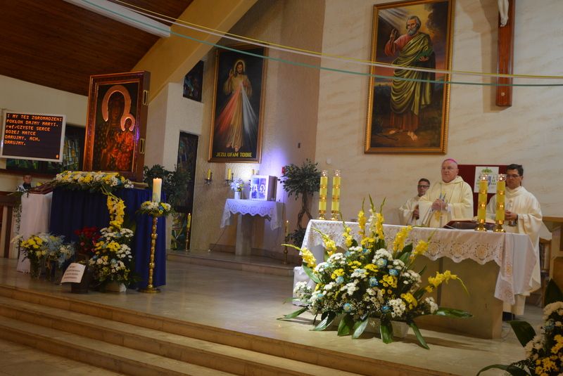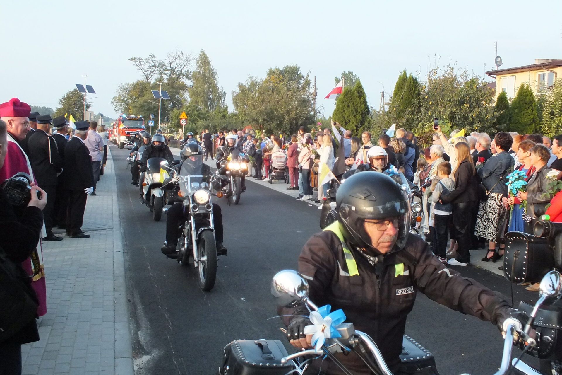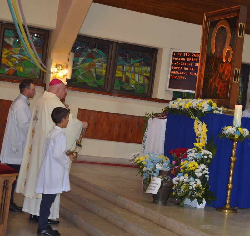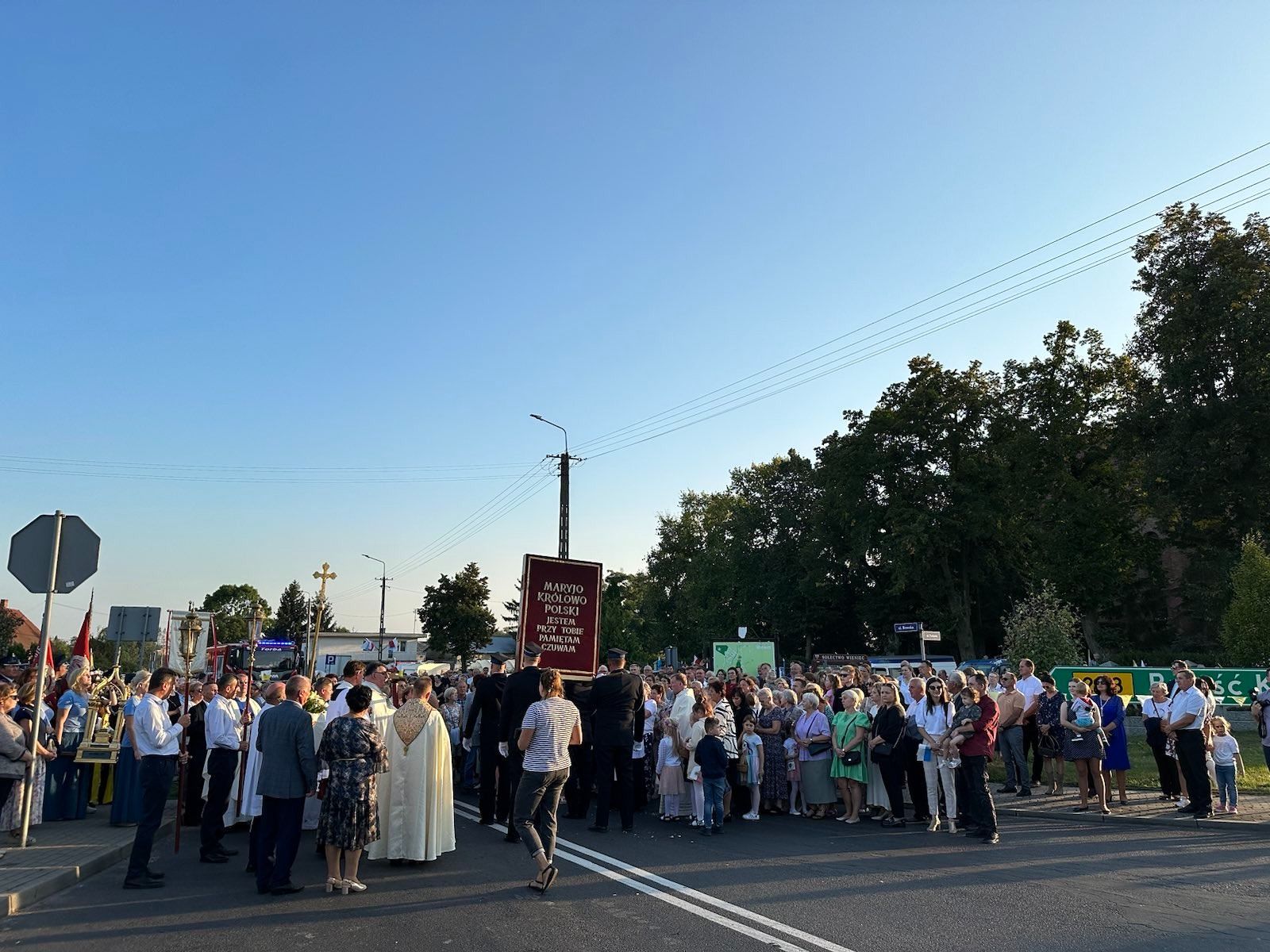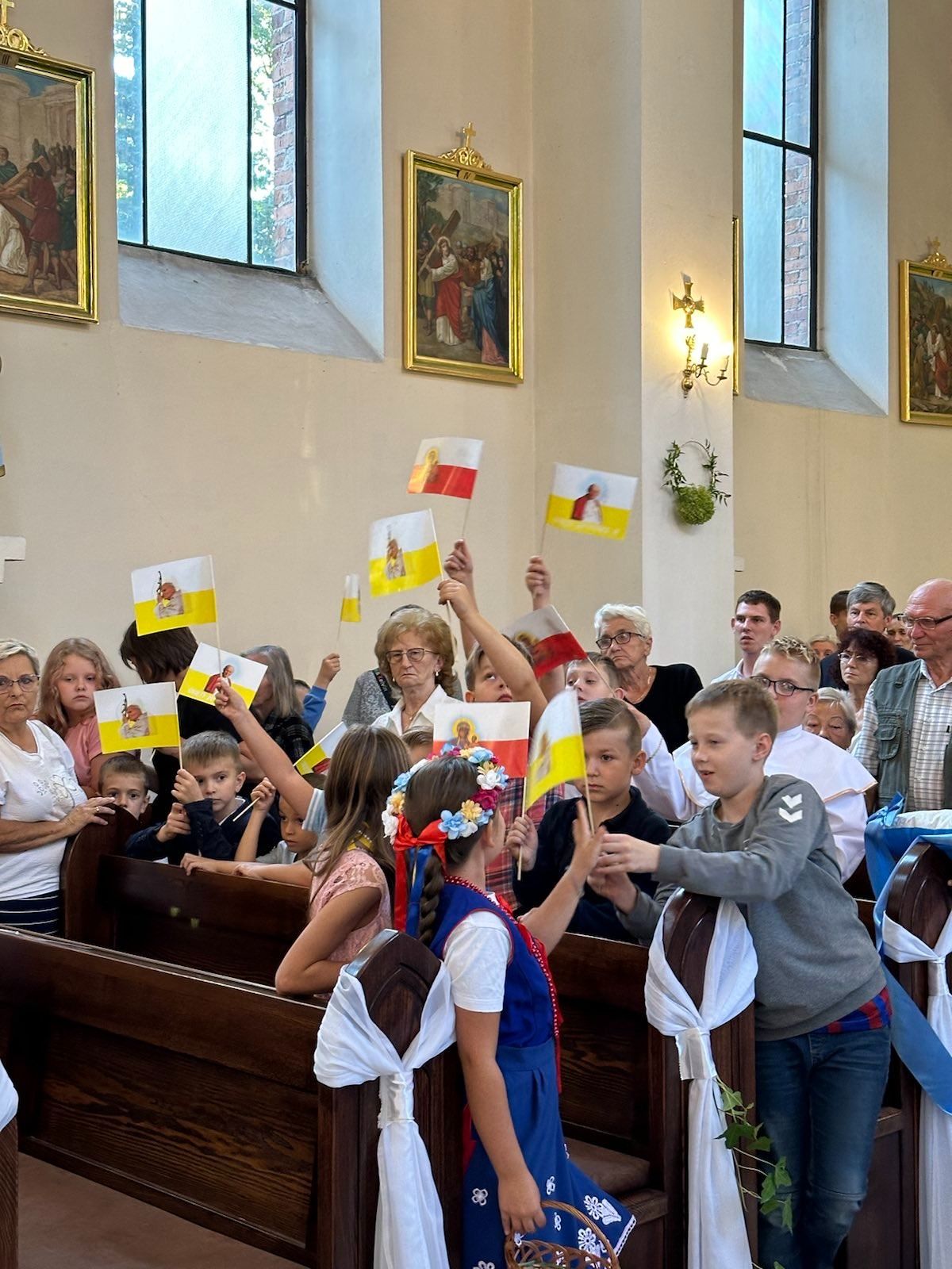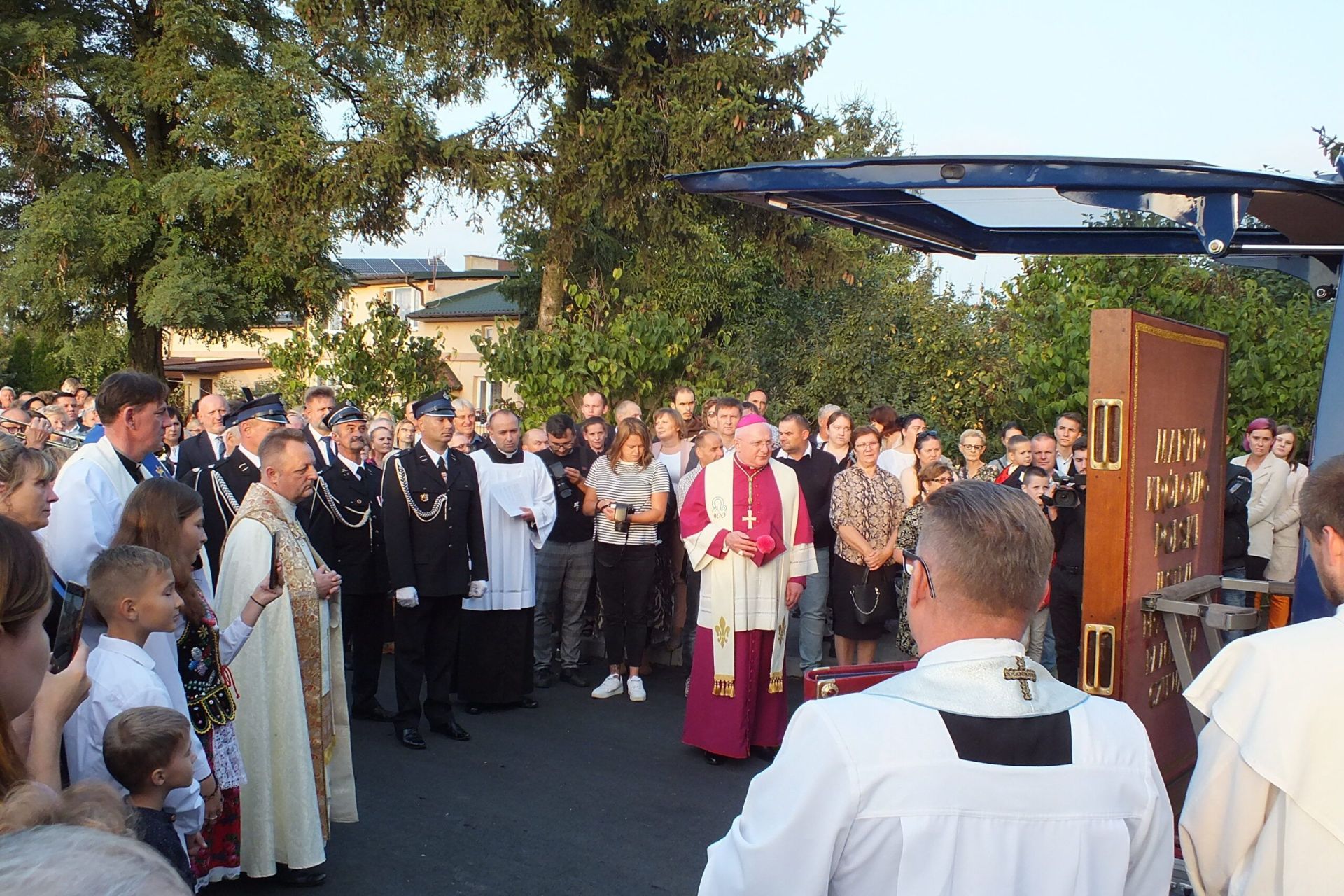 W niedzielę 24 września 2023 r. ks. proboszcz Łukasz Grabiasz, wspólnie z ks. wikariuszem Rafałem Marczewskim oraz ks. biskupem Wiesławem Meringiem, uroczyście powitali Obraz. Następnie podczas procesji, w asyście poszczególnych delegacji, druhów strażaków, orkiestry oraz licznie przybyłych parafian, Ikona Matki Bożej Jasnogórskiej została przeniesiona do kościoła. O godz. 18.00 rozpoczęła się Msza św. powitalna zudziałem kapłanów z dekanatu, której przewodniczył ks. bp Wiesław Mering.
