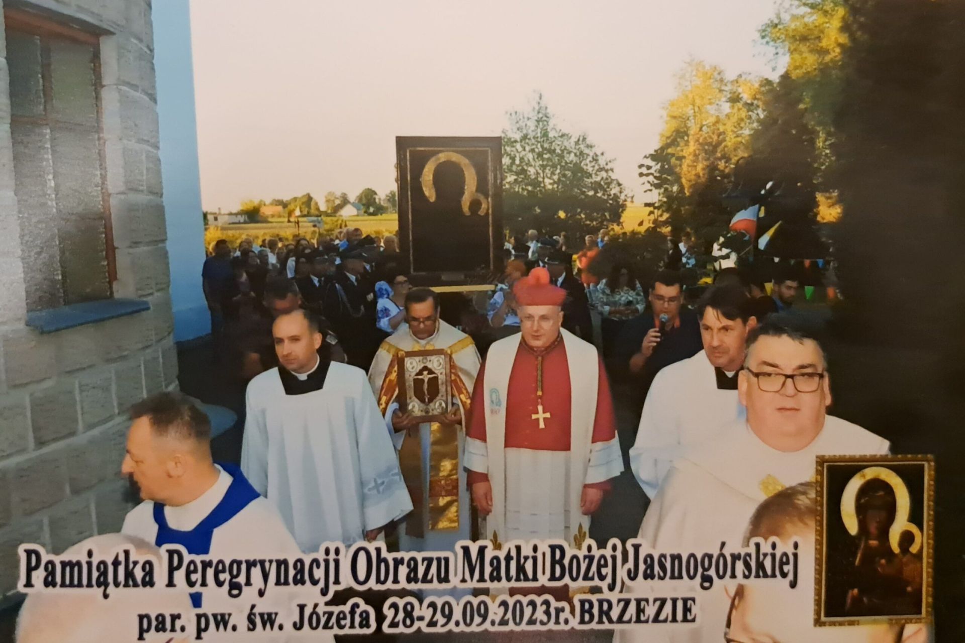 „Dni 23 i 24 września 2023 roku to czas wyjątkowy dla naszej wspólnoty parafialnej. Po 48 latach i dwóch dniach znowu byliśmy świadkami wielkiego wydarzenia jakim była peregrynacja Cudownego Obrazu Matki Bożej Jasnogórskiej. W tym czasie Parafia Brześcia Kujawskiego gościła Matkę Najświętszą. Nawiedzenie poprzedziły rekolekcje Maryjne, które prowadził kustosz Sanktuarium Matki Bożej Królowej Pokoju w Stoczku Klasztornym, ks. Wojciech Sokołowski. Spotykaliśmy się na naukach, słuchając Bożego Słowa, aby jak najlepiej przygotować się na sam czas przyjęcia do naszej wspólnoty Matki Królowej Polski. I wreszcie nastąpił oczekiwany 23 września…. Godzina 17.30 i w asyście Druhów Strażaków, Motocyklistów i bardzo licznie zgromadzonej liczby wiernych przybyła do nas Matka Boża. Całą dobę trwały modlitwy, spotkania, adoracja, sprawowane Msze święte przy Cudownym wizerunku Czarnej Madonny. To wyjątkowy czas…. Boży czas…. Te dwadzieścia cztery godziny to ogromne rzesze wiernych, którzy chcieli być z Matką Bożą…. W tym miejscu pragnę podziękować wszystkim, którzy w jakikolwiek sposób włączyli się w przygotowanie tego wyjątkowego i świętego czasu Nawiedzenia Obrazu Matki Bożej Czarnej Madonny. Wielkie serdeczne Bóg zapłać. Z żalem, ale też z nadzieją 24 września na Eucharystii pod przewodnictwem ks. Biskupa Wiesława Meringa, pożegnaliśmy Cudowny wizerunek Matki Najświętszej. Obraz odjechał do sąsiedniej parafii w Kruszynie, ale Matka Boska Częstochowska została z nami. Dziękujemy Maryjo.”