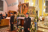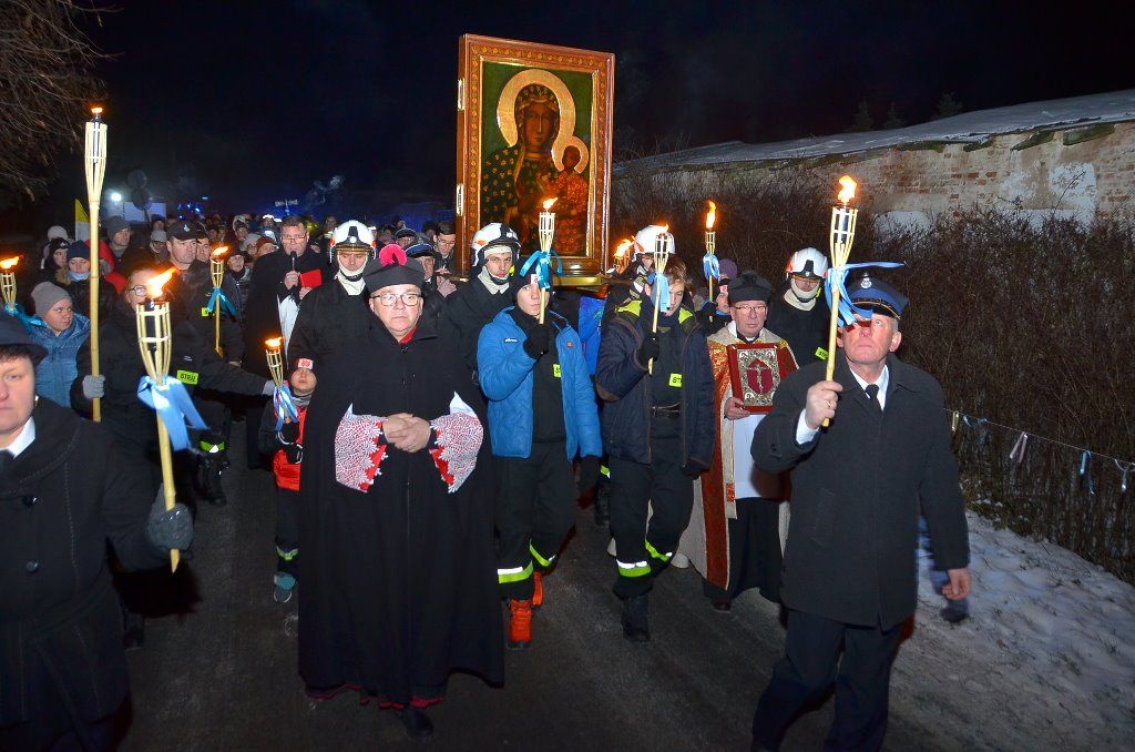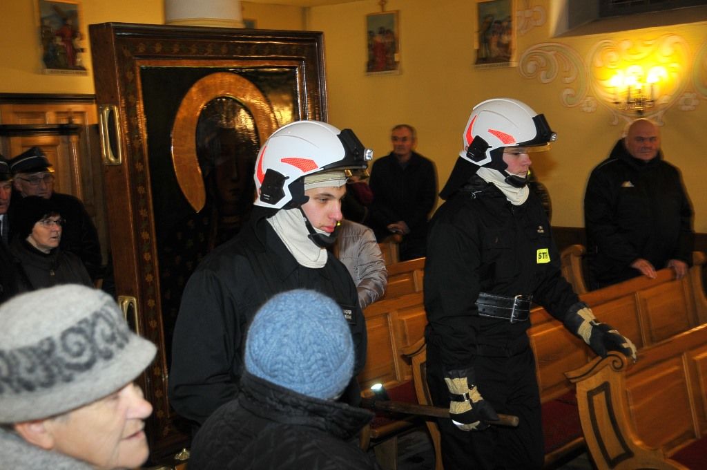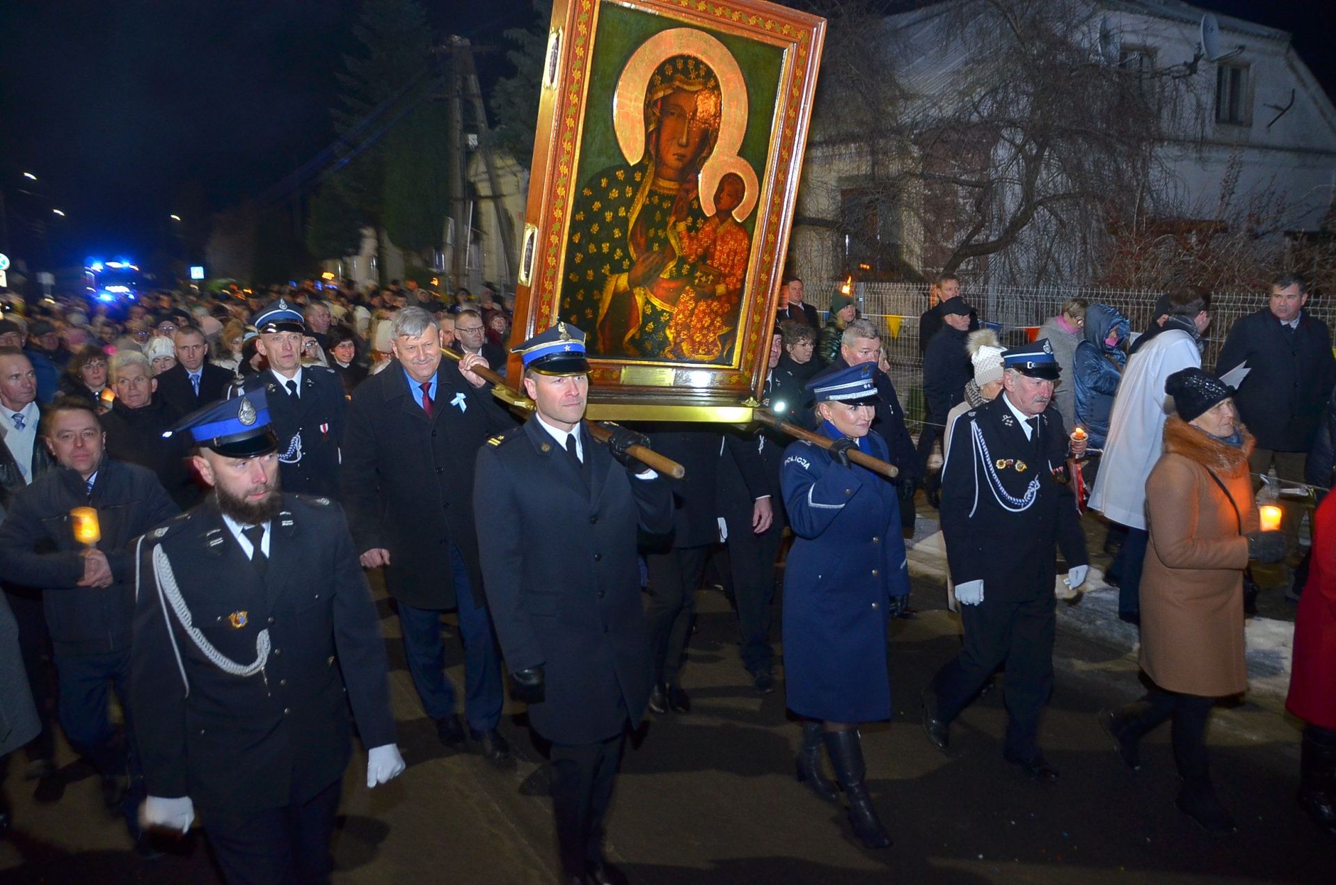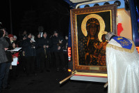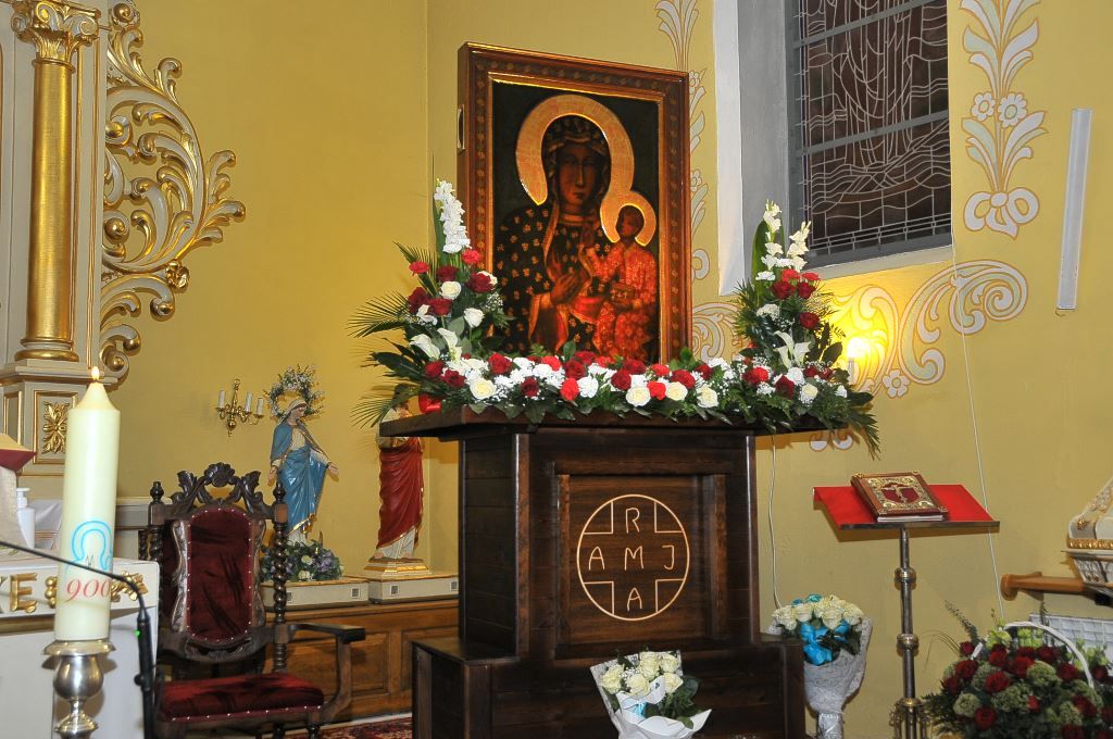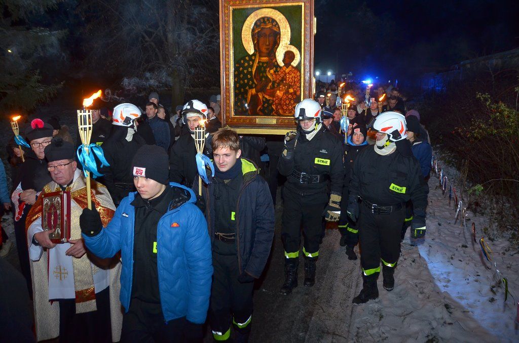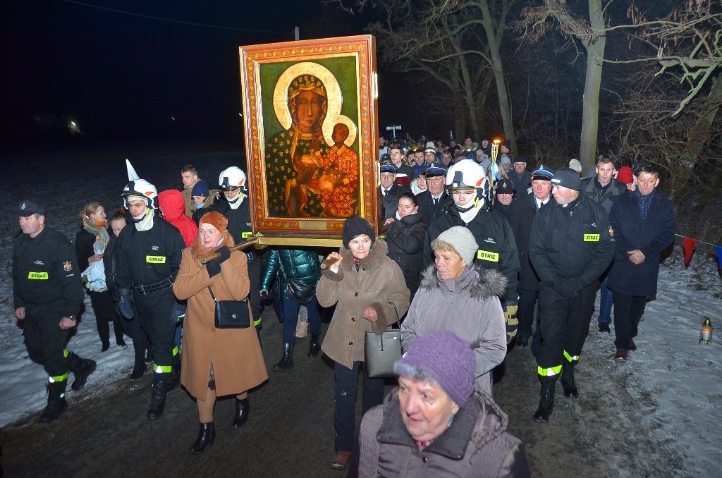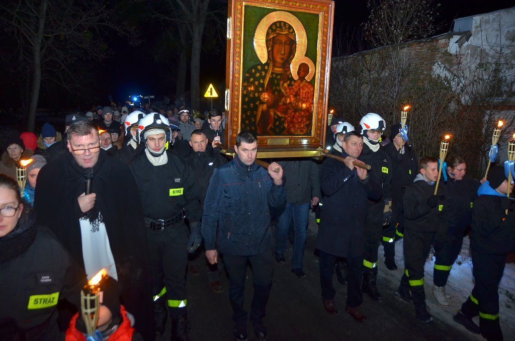 O godz. 17:30 Matka Boża przybyła do nas z parafii Ciepień. Po fanfarach, ucałowaniu Ikony Jasnogórskiej przez księdza proboszcza Andrzeja Minko i księdza dziekana Krzysztofa Graczyka, została ona wprowadzona do kościoła, niesiona przez strażaków, a wcześniej przez ojców i matki z parafii.