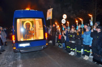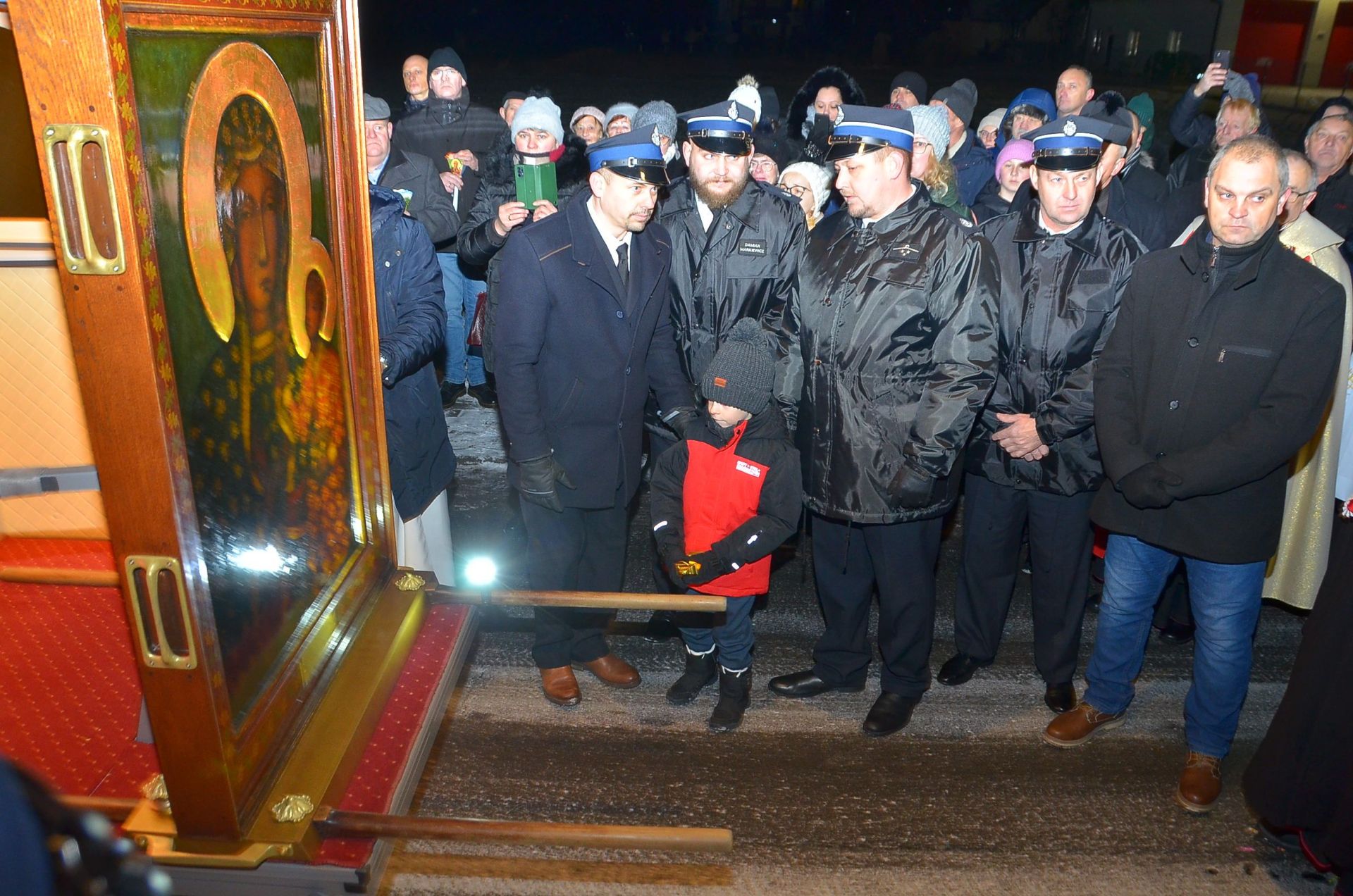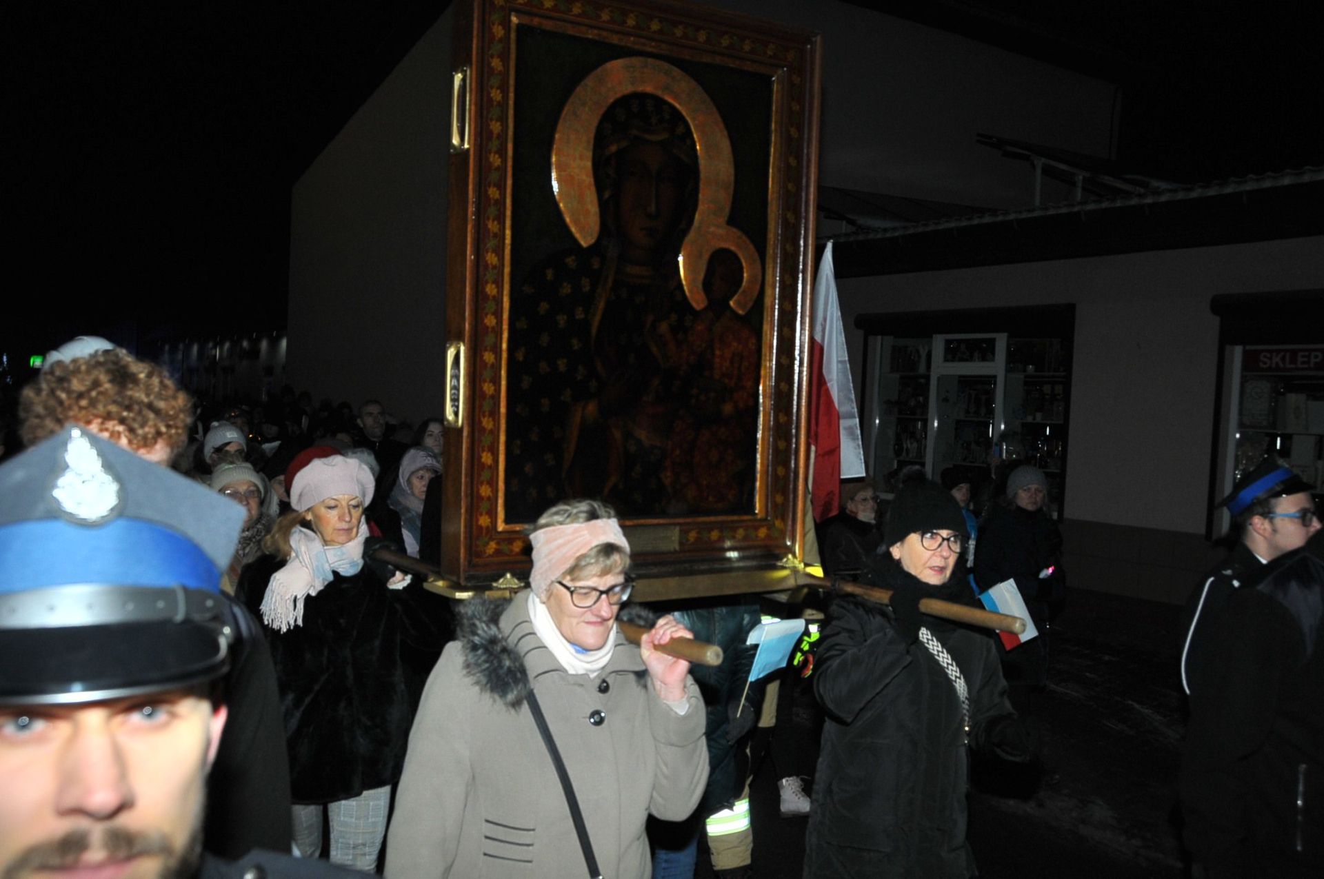 Ikona Jasnogórskiej Pani została przywitana przy kapliczce obok Zespołu Szkół