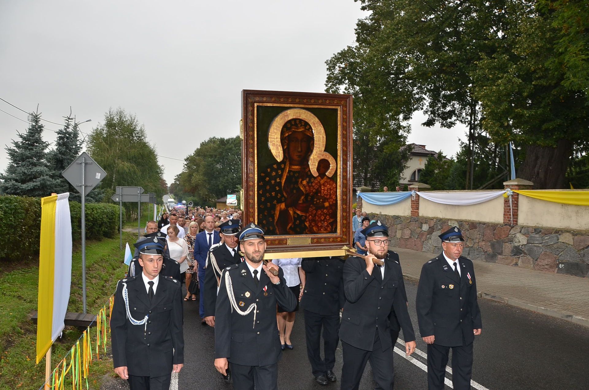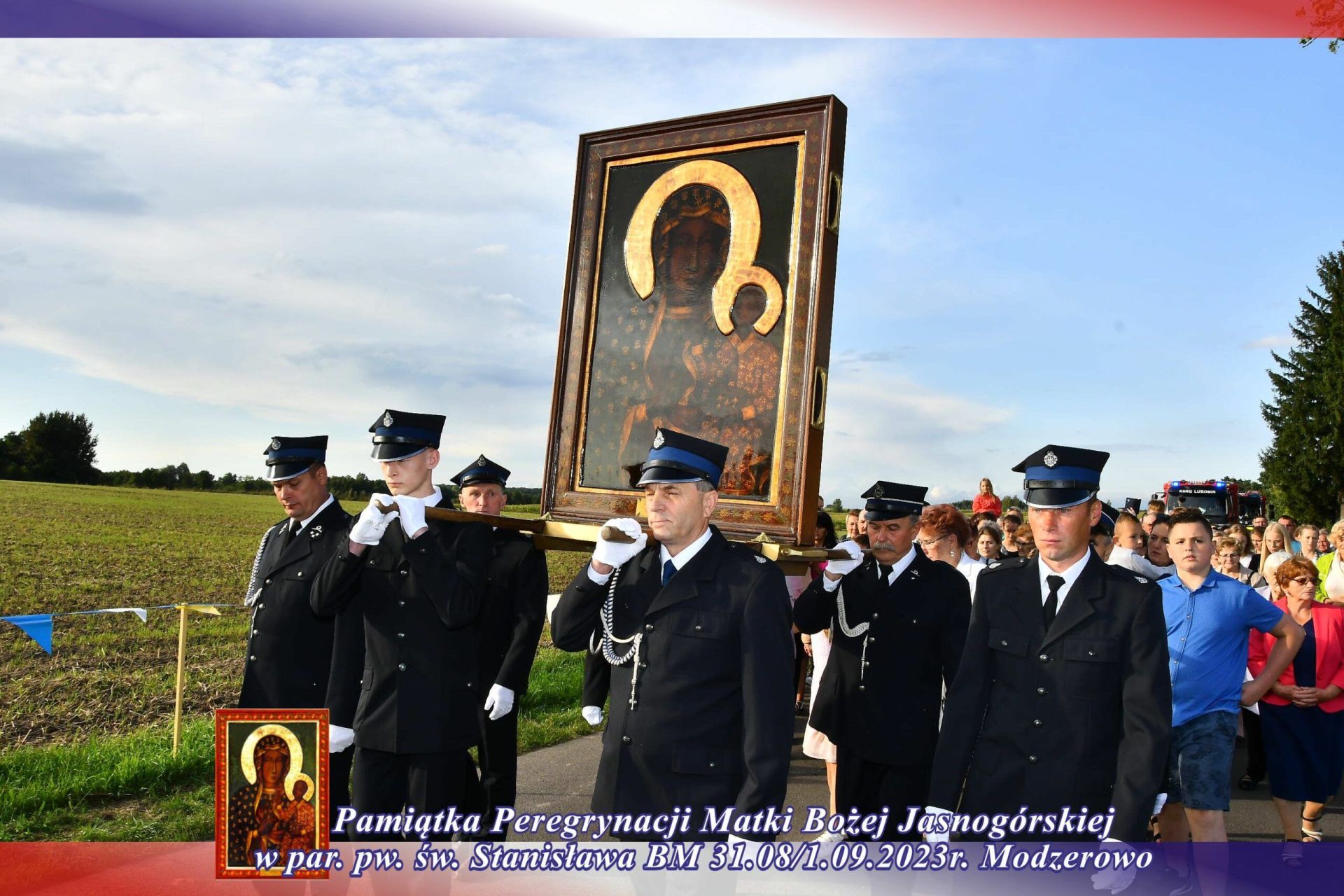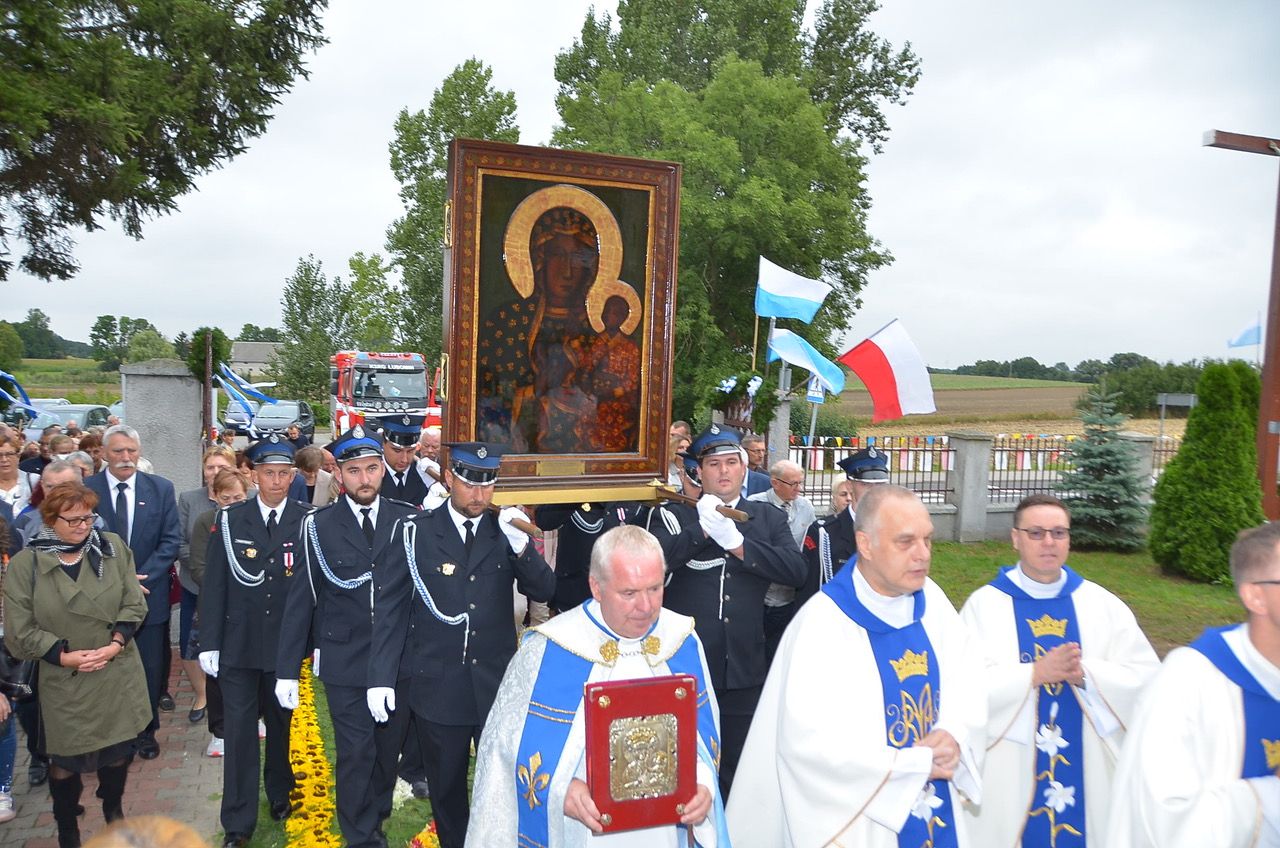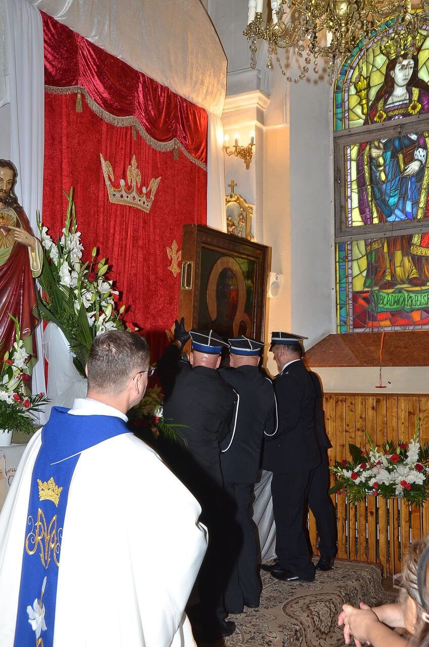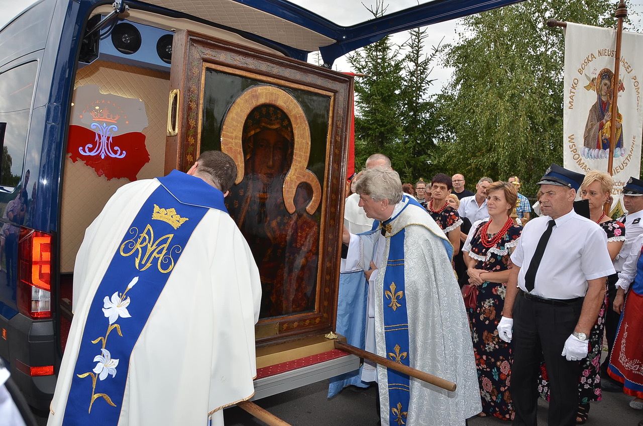 Po zakończonej Mszy świętej i odśpiewaniu hymnu „Ciebie Boga wysławiamy”, proboszcz parafii ks. Stanisław Janiak pożegnał Matkę Bożą i podziękował za Jej obecność. Na koniec ksiądz proboszcz zawierzył całą parafię opiece Pani Jasnogórskiej. Następnie druhowie strażacy zdjęli obraz z tronu i procesyjnie odprowadzili go do samochodu – kaplicy. Wszyscy wierni pożegnali Matkę Bożą, która odjechała do parafii Modzerowo.