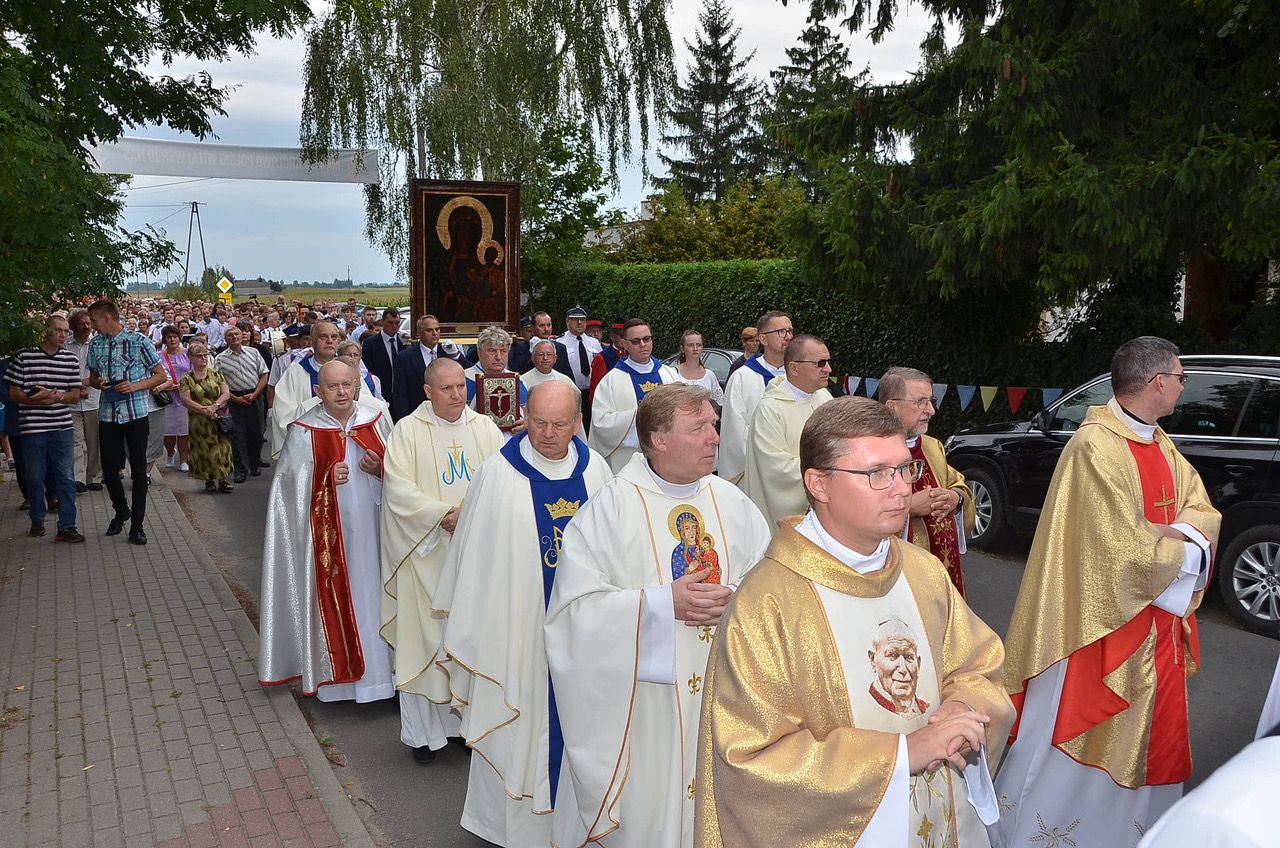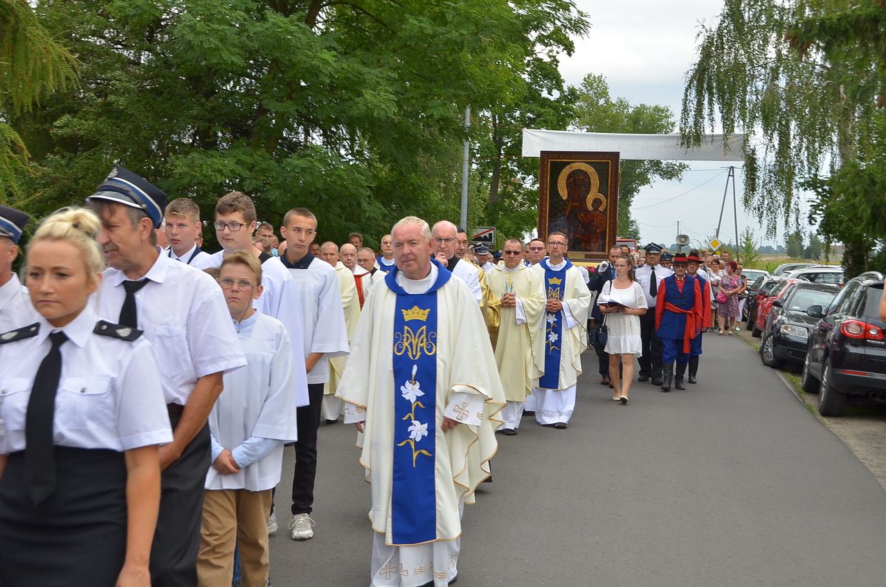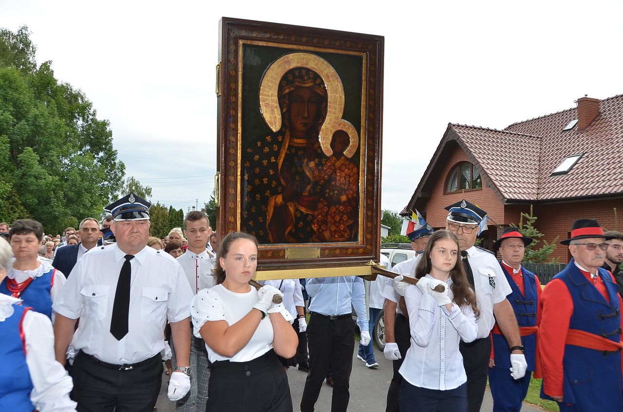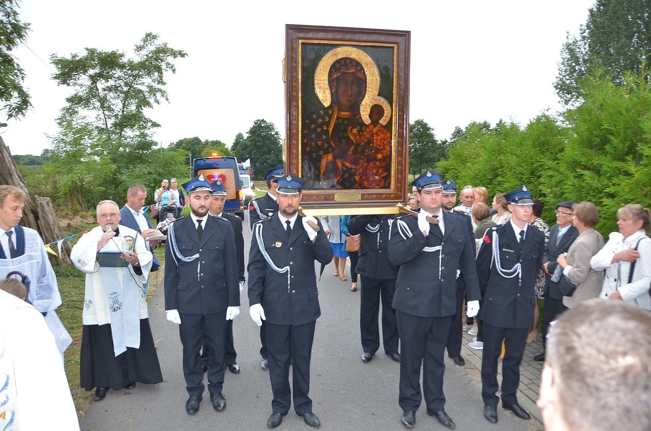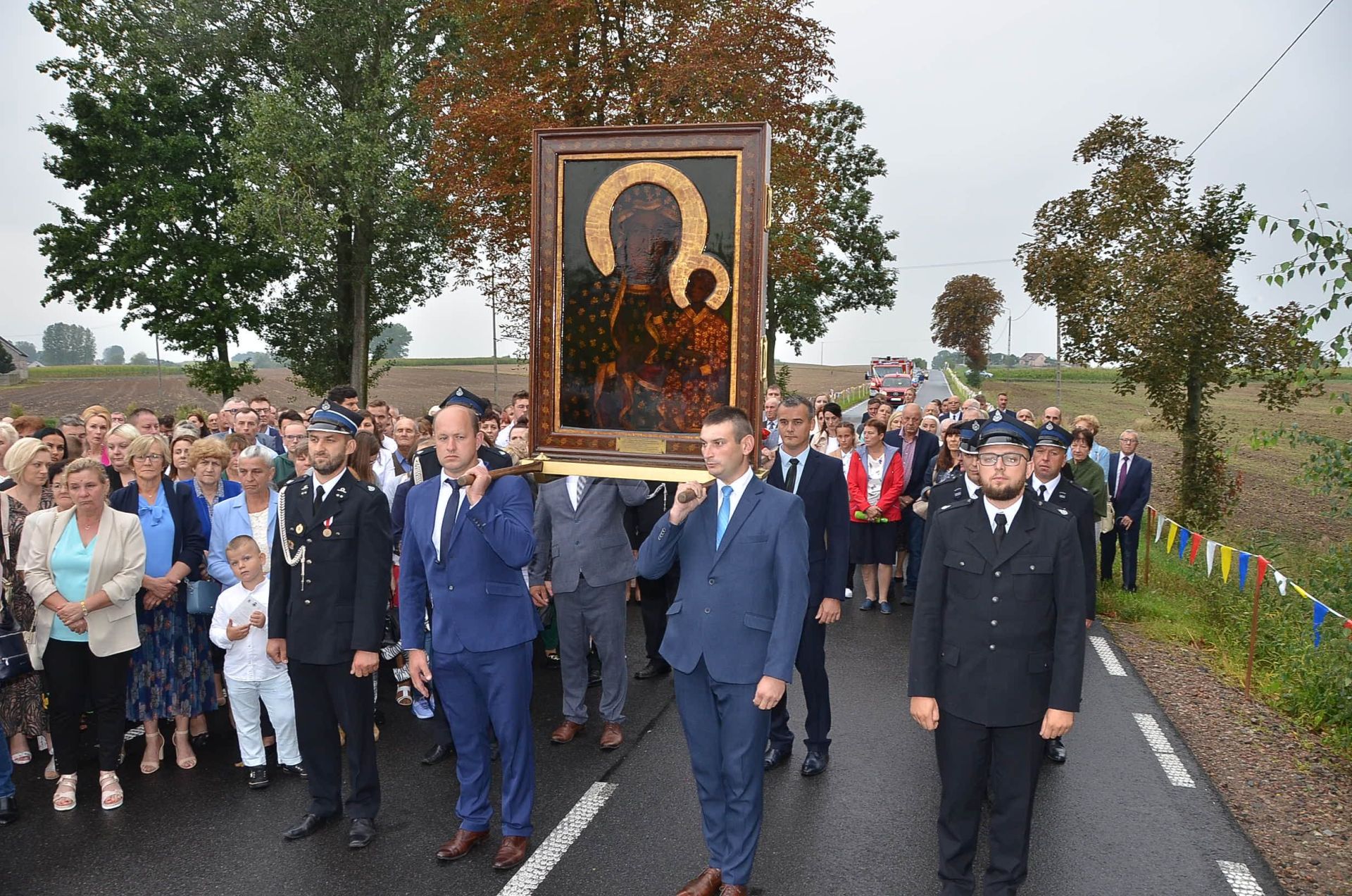 Po zakończonej Mszy świętej i odśpiewaniu hymnu „Ciebie Boga wysławiamy”, proboszcz parafii ks. Stanisław Janiak pożegnał Matkę Bożą i podziękował za Jej obecność. Na koniec ksiądz proboszcz zawierzył całą parafię opiece Pani Jasnogórskiej. Następnie druhowie strażacy zdjęli obraz z tronu i procesyjnie odprowadzili go do samochodu – kaplicy. Wszyscy wierni pożegnali Matkę Bożą, która odjechała do parafii Modzerowo.