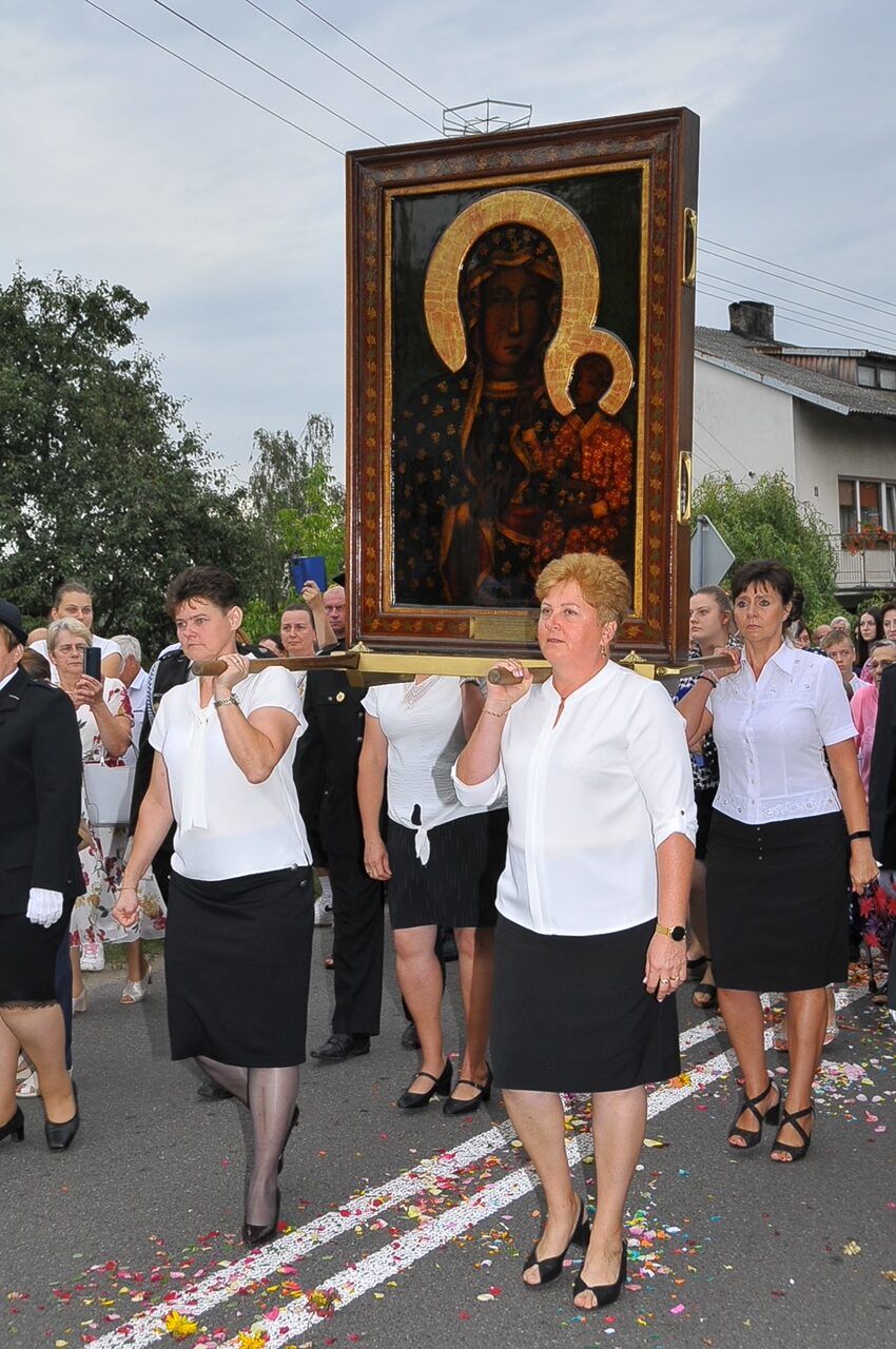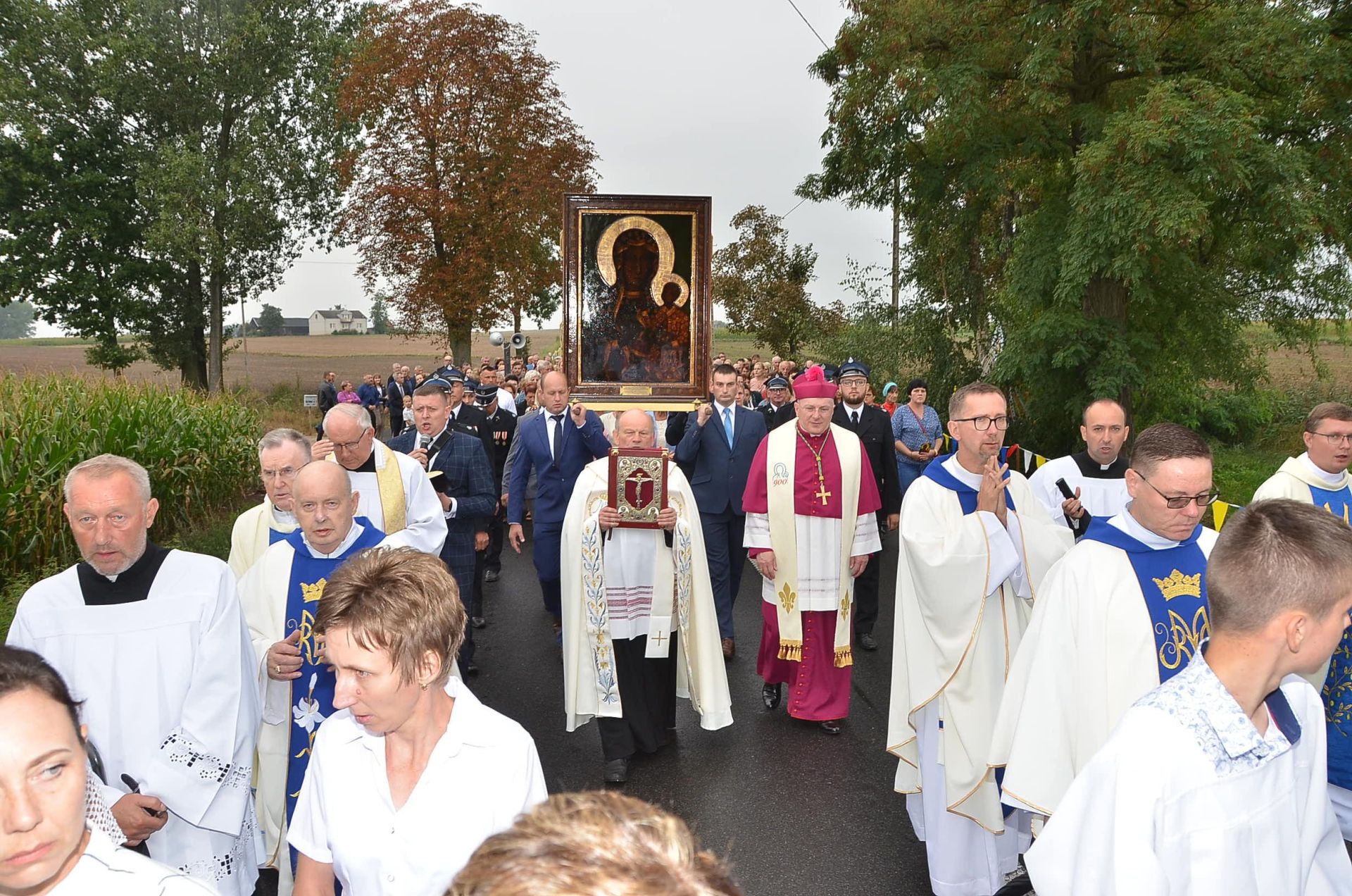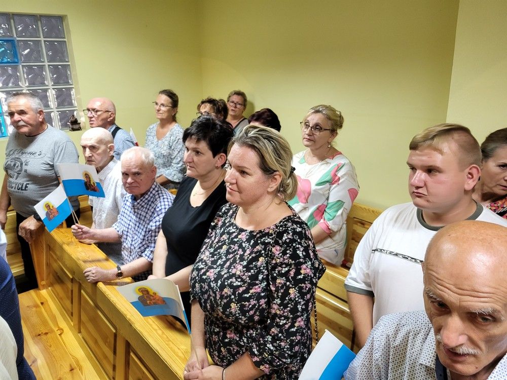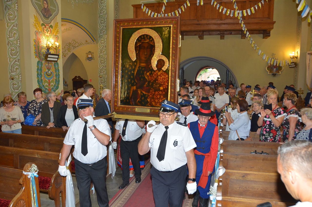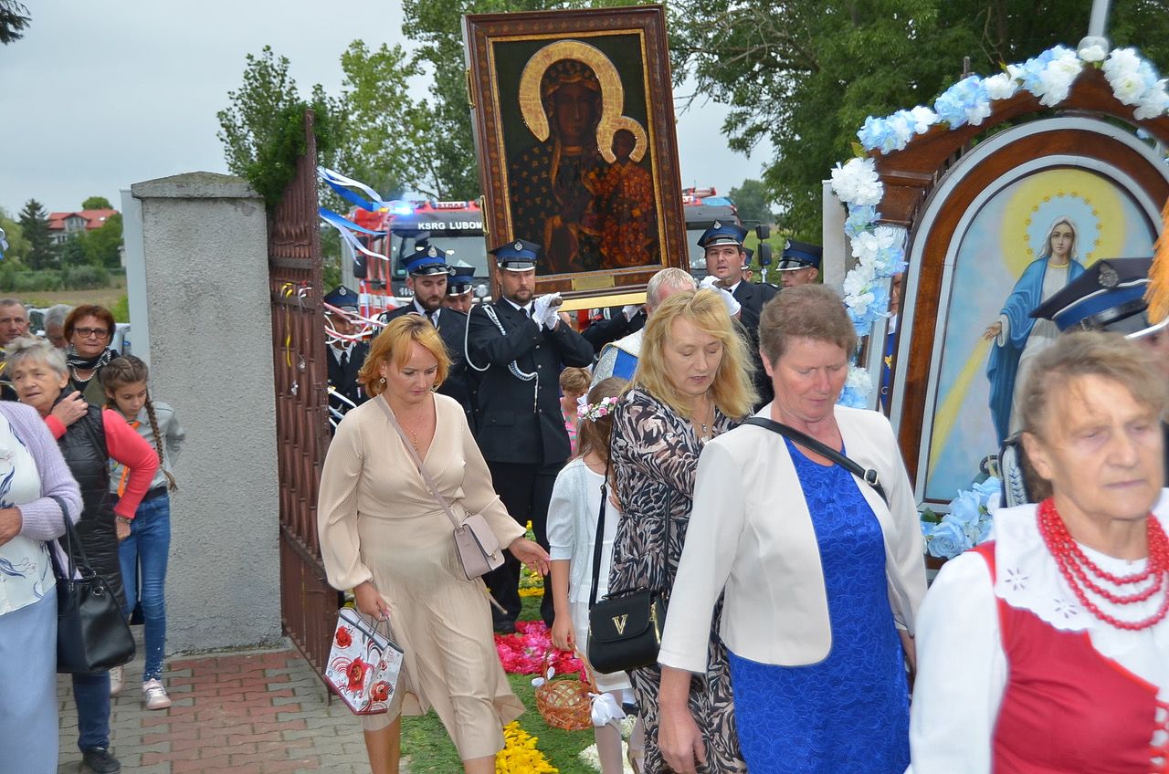 Po zakończonej Mszy świętej i odśpiewaniu hymnu „Ciebie Boga wysławiamy”, proboszcz parafii ks. Stanisław Janiak pożegnał Matkę Bożą i podziękował za Jej obecność. Na koniec ksiądz proboszcz zawierzył całą parafię opiece Pani Jasnogórskiej. Następnie druhowie strażacy zdjęli obraz z tronu i procesyjnie odprowadzili go do samochodu – kaplicy. Wszyscy wierni pożegnali Matkę Bożą, która odjechała do parafii Modzerowo.