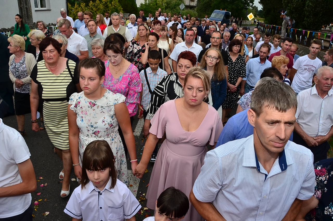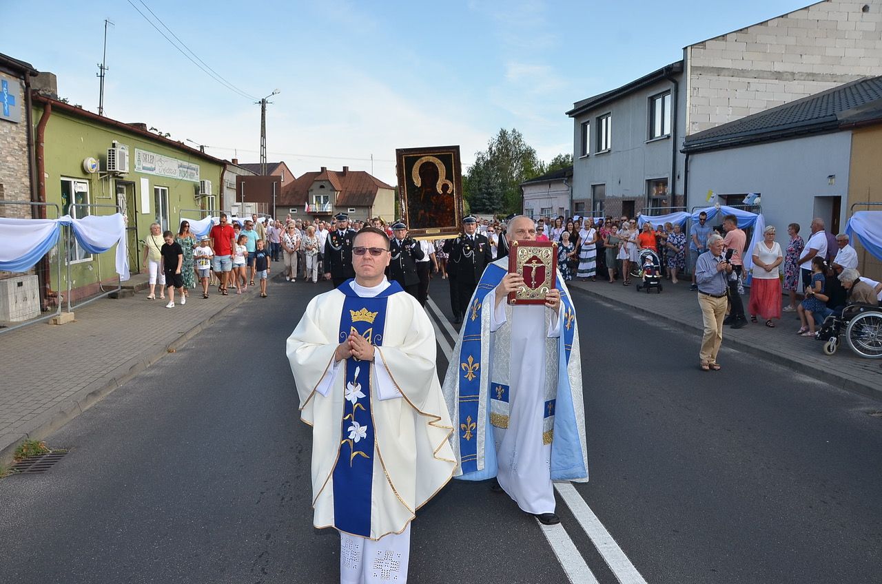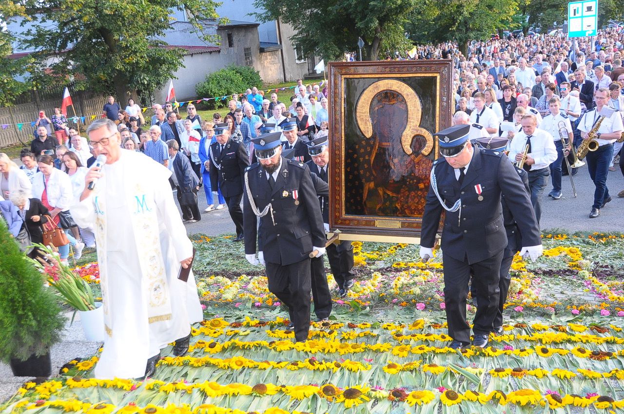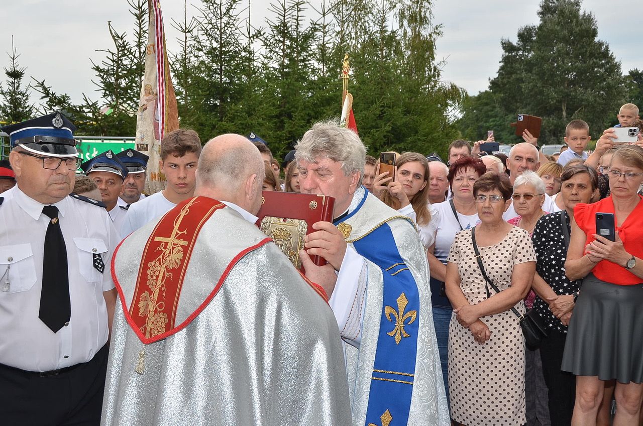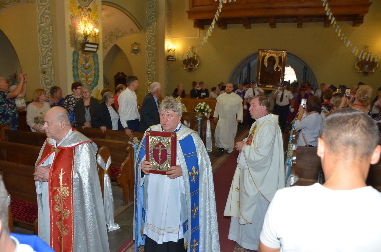 Po zakończonej Mszy świętej i odśpiewaniu hymnu „Ciebie Boga wysławiamy”, proboszcz parafii ks. Stanisław Janiak pożegnał Matkę Bożą i podziękował za Jej obecność. Na koniec ksiądz proboszcz zawierzył całą parafię opiece Pani Jasnogórskiej. Następnie druhowie strażacy zdjęli obraz z tronu i procesyjnie odprowadzili go do samochodu – kaplicy. Wszyscy wierni pożegnali Matkę Bożą, która odjechała do parafii Modzerowo.