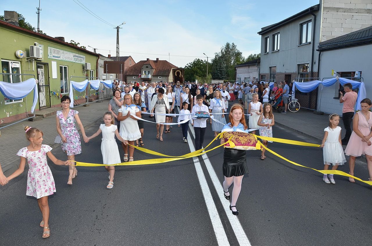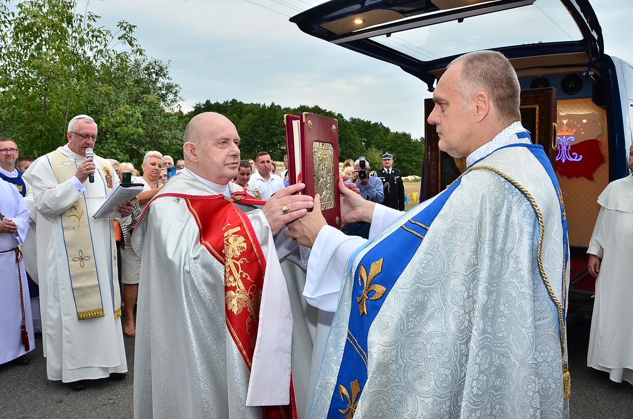 25 sierpnia 2023 roku, w dzień przybycia Maryi do Parafii, zgromadził się tłum parafian i gości.O godz. 17.00 rozpoczęto nabożeństwo oczekiwania, potem wierni w procesji wyruszyli na miejsce powitania Cudownego Wizerunku Maryi. Uroczystościom oczekiwania przewodniczył ks. biskup Wiesław Mering – biskup senior diecezji włocławskiej. Po wyjęciu obrazu z samochodu obraz wniesiono uroczyście do świątyni.