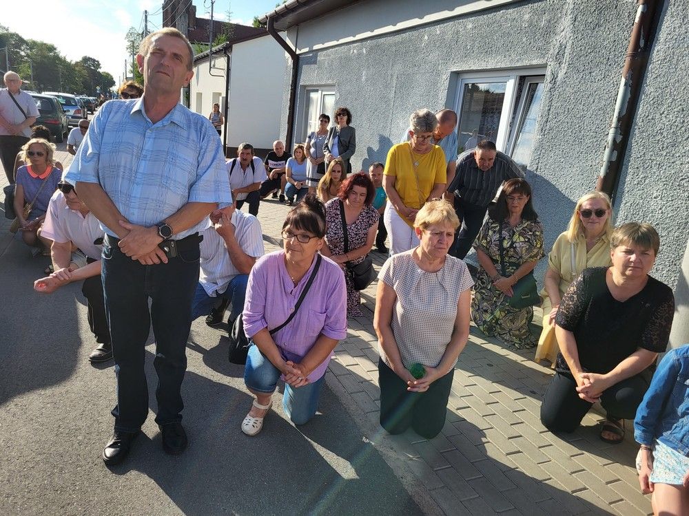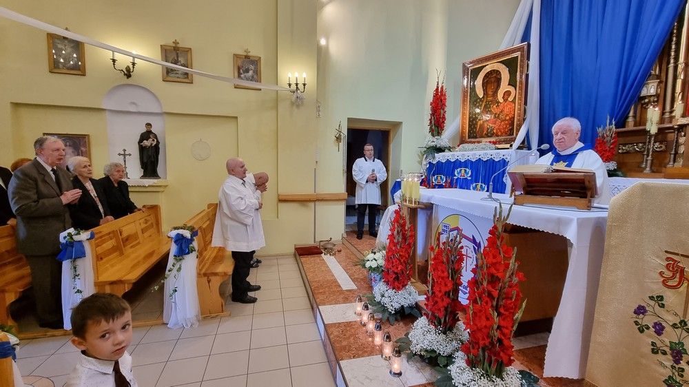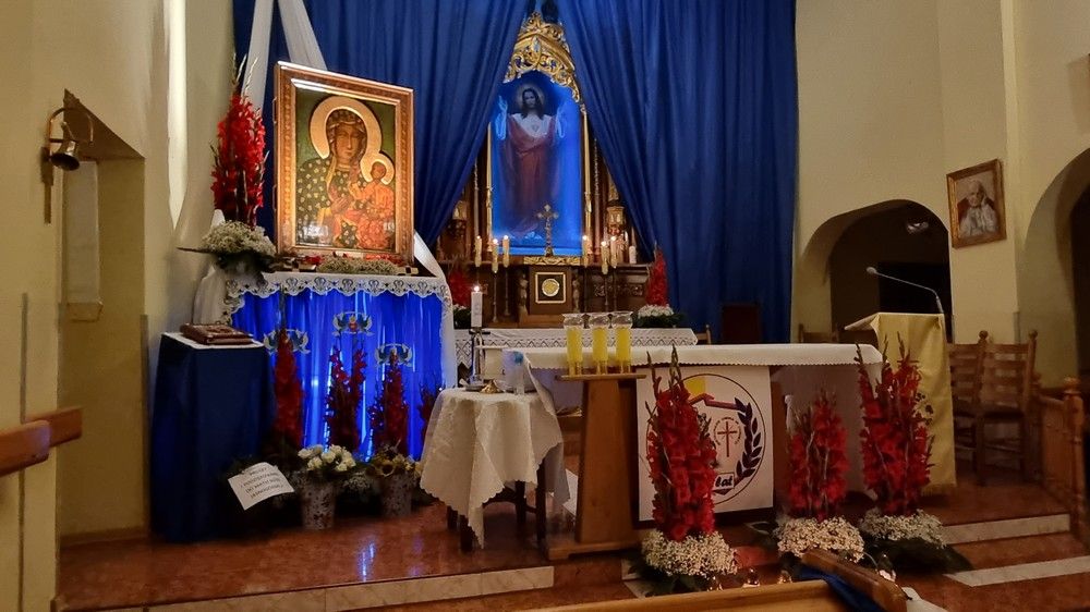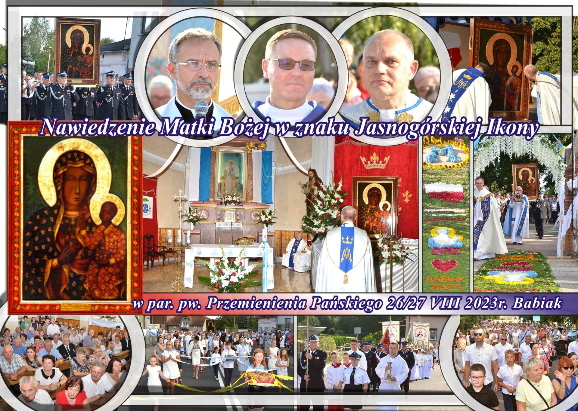 „W dniach 26-27 sierpnia 2023 r. Matka Boża w znaku Ikony Jasnogórskiej nawiedziła parafię Przemienienia Pańskiego w Babiaku.Poprzednie Nawiedzenie miało miejsce 2 czerwca 1975 roku. Do tego historycznego wydarzenia parafia przygotowywała się w dniach 20-27 sierpnia poprzez ośmiodniowe Misje Święte, które poprowadził ks. SylwesterSowizdrzałze Zgromadzenia Księży Orionistów. Wieczorne nabożeństwo o godz. 20.00 kończyliśmy codziennie Apelem Jasnogórskim oczekiwania, w blasku świec. Zapalone lampiony w dłoniach wszystkich uczestników nasuwały biblijne skojarzenia i symbolizowały trwanie w gotowości na spotkanie z Matką Najświętszą. Serce radowało się, widząc tak licznych uczestników Mszy świętych oraz zaangażowanie we wspólne śpiewanie pieśni Maryjnych, w czym zasłużył się nasz organista Jarosław Świątek oraz utworzony przez niego zespół muzyczny, akompaniujący na gitarze i flecie. W dniu 24 sierpnia, księża z całego dekanatu poprzez Sakrament Pokuty i Pojednania przygotowali nasze serca na spotkanie z Panią Jasnogórską. Parafianie w tych dniach dawali też świadectwo miłości do Maryi, poprzez dekorowanie tras przejazdu, ulic i domów. Wielki wysiłek w dekorowanie kościoła włożyła nasza zakrystianka siostra Klara Krawczykowska.