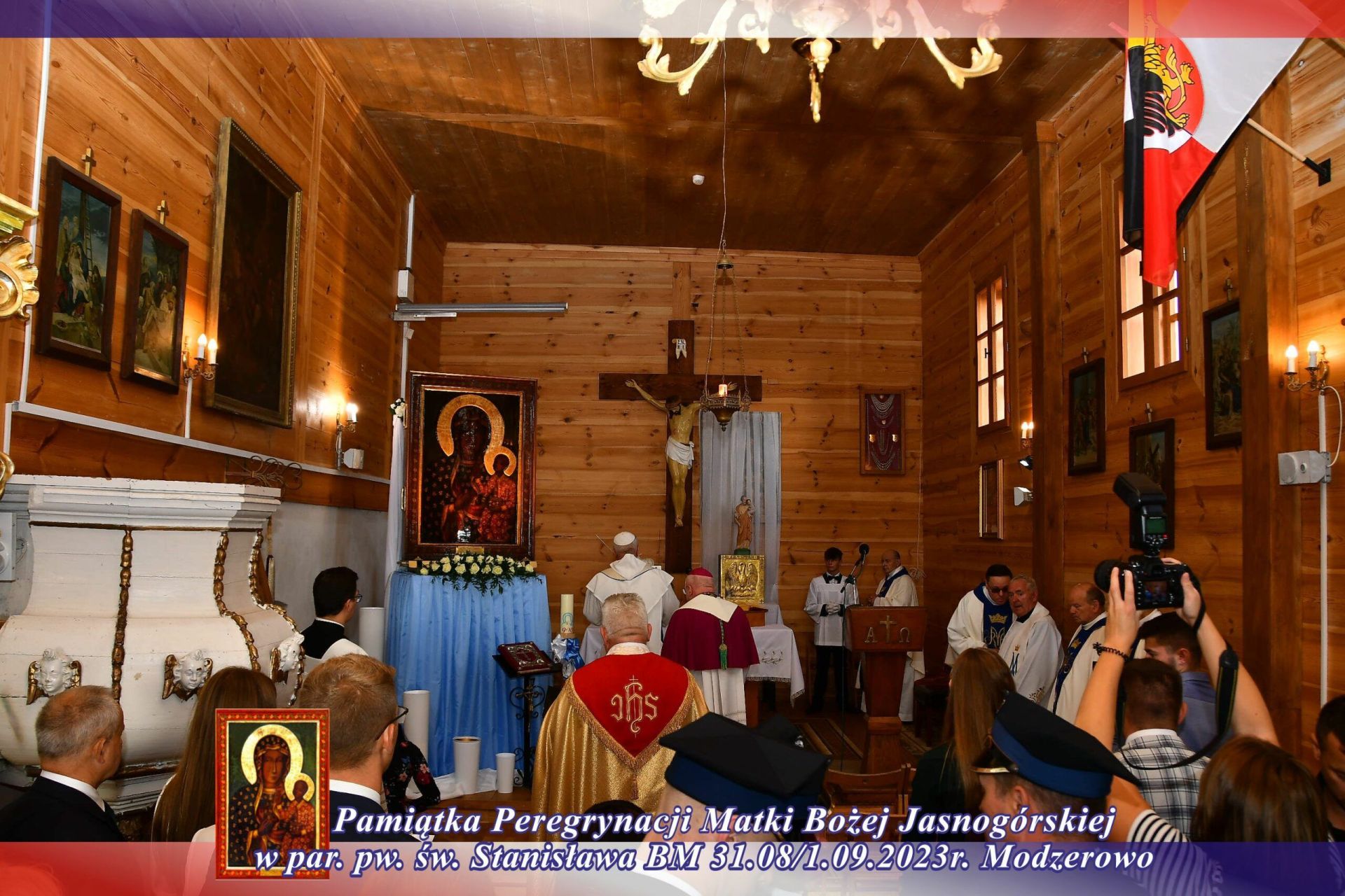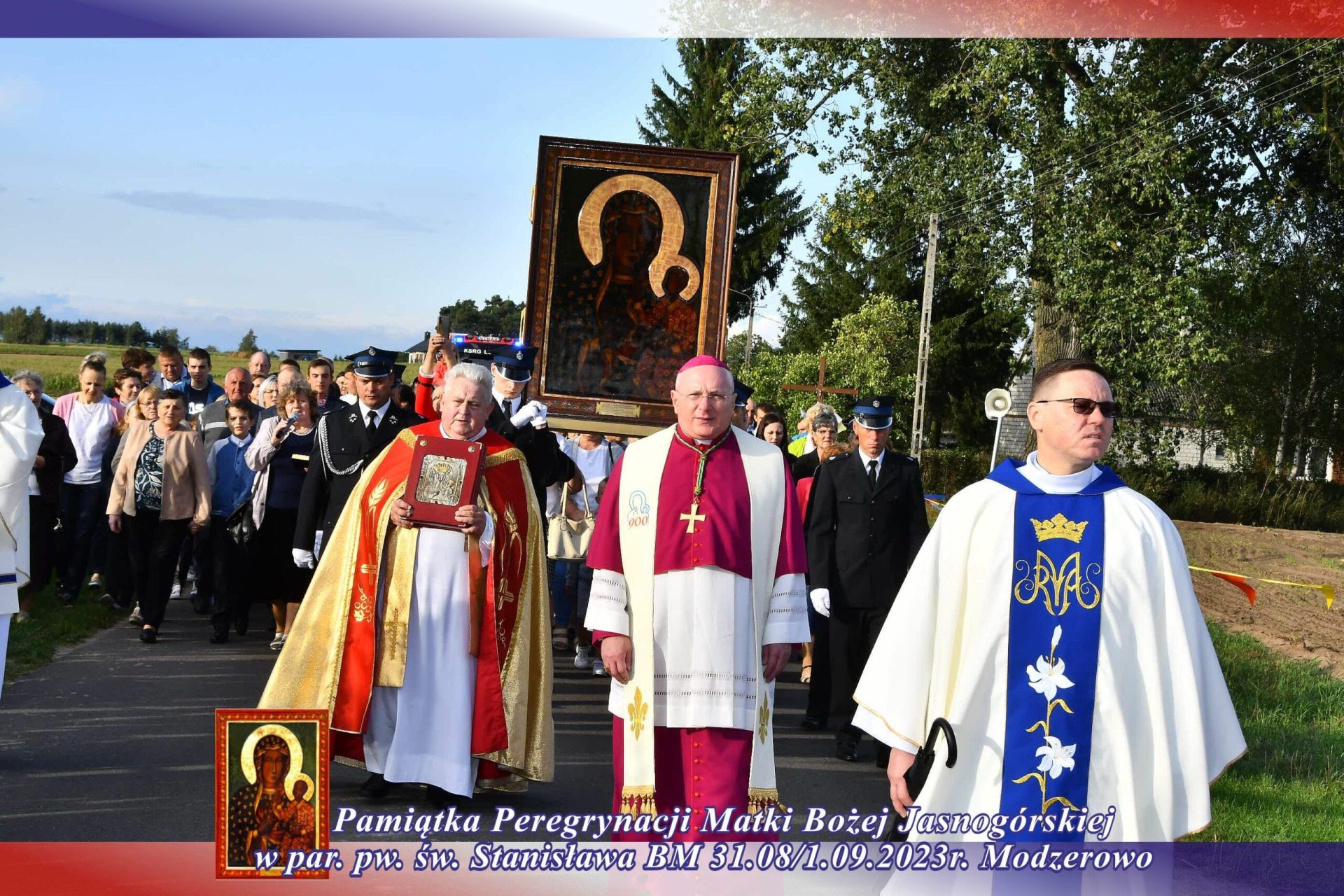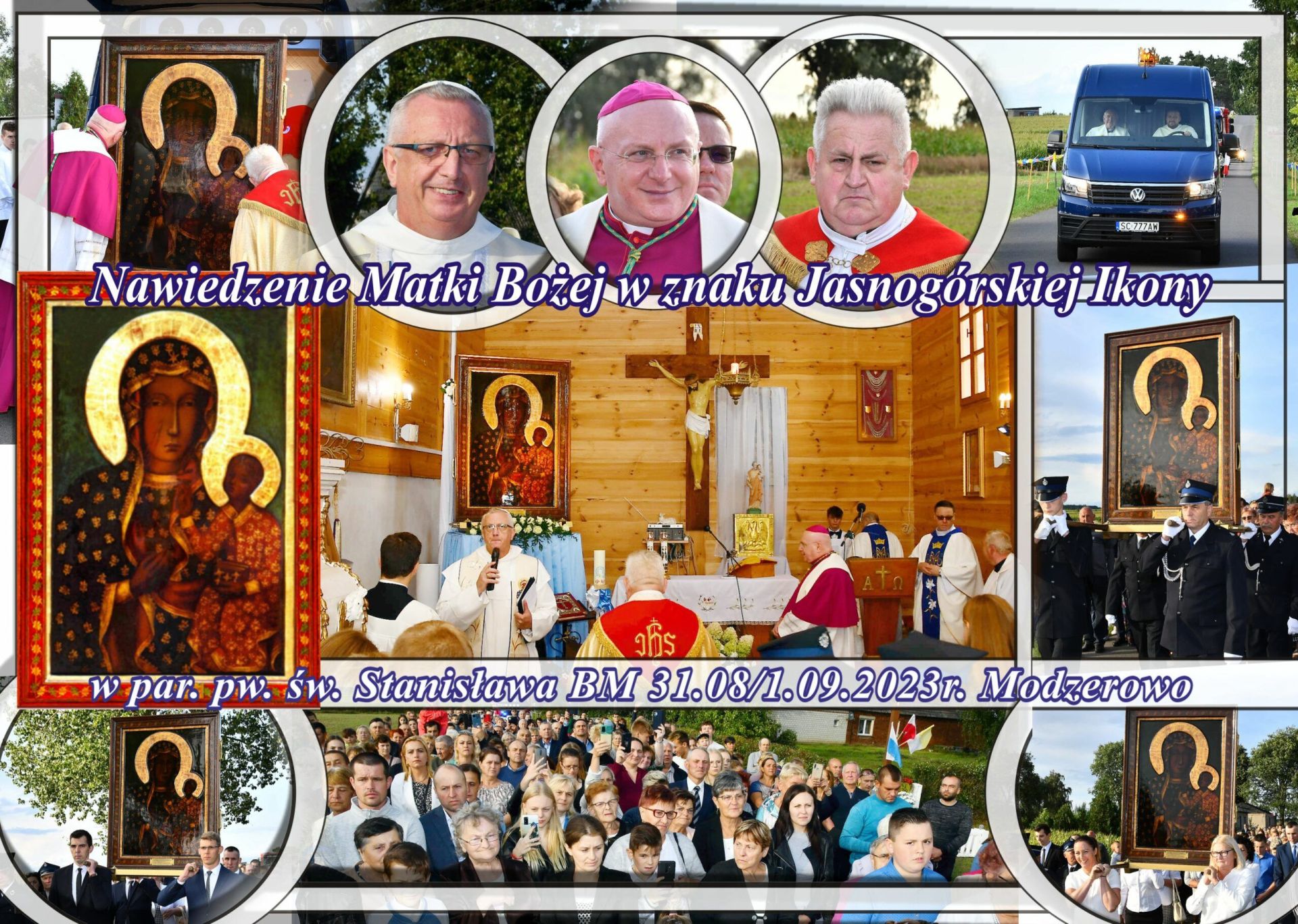 We wtorek 29 sierpnia, parafianie mieli okazję do spowiedzi i komunii świętej. Uroczystość Nawiedzenia rozpoczęła się w czwartek, o godz. 16.45 nabożeństwem oczekiwania. Po nim nastąpiła procesja do krzyża przydrożnego i powitanie obrazu Matki Bożej oraz wprowadzenie obrazu Matki Bożej do kościoła i rozpoczął się czas obecności Matki Bożej w parafii Modzerowo. Maryje powitał ksiądz proboszcz oraz delegacje z parafii, które złożyły wiązanki kwiatów przed Cudownym Obrazem. Następnie miała miejsce uroczysta Eucharystia, której przewodniczył JE ks. Bp Krzysztof Wętkowski w obecności wszystkich kapłanów z dekanatu izbickiego.