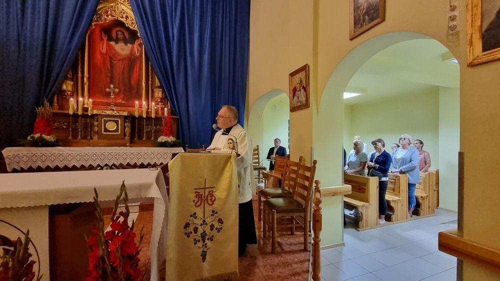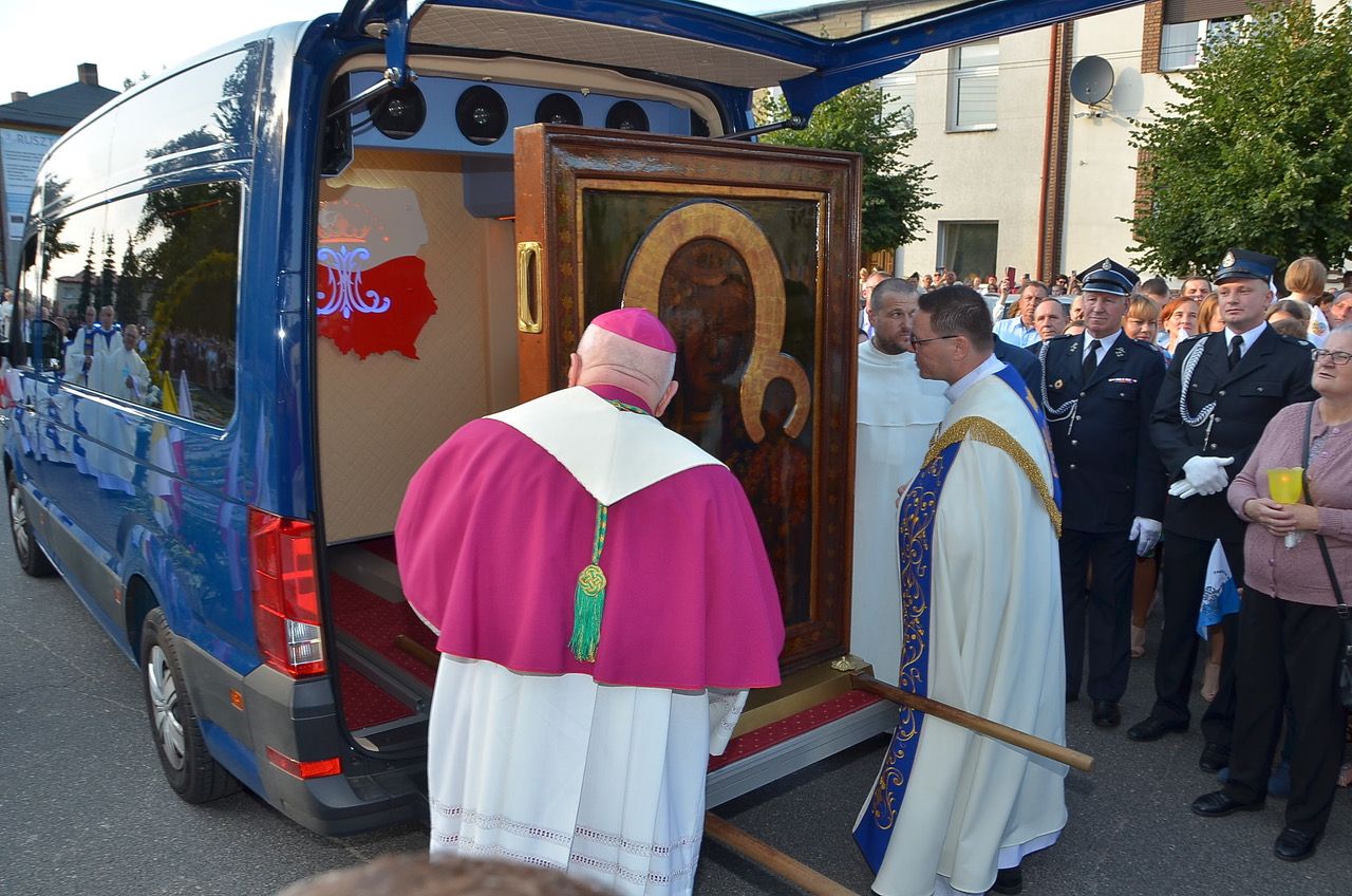 Uroczystej Mszy świętej dziękczynnej z obrzędem pożegnania obrazu Matki Bożej Częstochowskiej przewodniczył ks. Bp Krzysztof Wętkowski. Odśpiewano Bogurodzicę. Były łzy wzruszenia. W imieniu wiernych słowa wdzięczności i pożegnania wypowiedzieli jej przedstawiciele. Błogosławiony był to czas i bardzo potrzebny w naszej wspólnocie i parafii. Przy dźwięku syren Obraz odjechał w stronę parafii w Dębnie Królewskim. Samochód – Kaplica przejechał w asyście dużej grupy motocyklistów i samochodów Straży pożarnej z Babiaka. Ludzie jeszcze ok. godziny stali na ulicy przed kościołem, jakby byli osieroceni. O Maryjo Matko nasza otul nas płaszczem Swej opieki.”