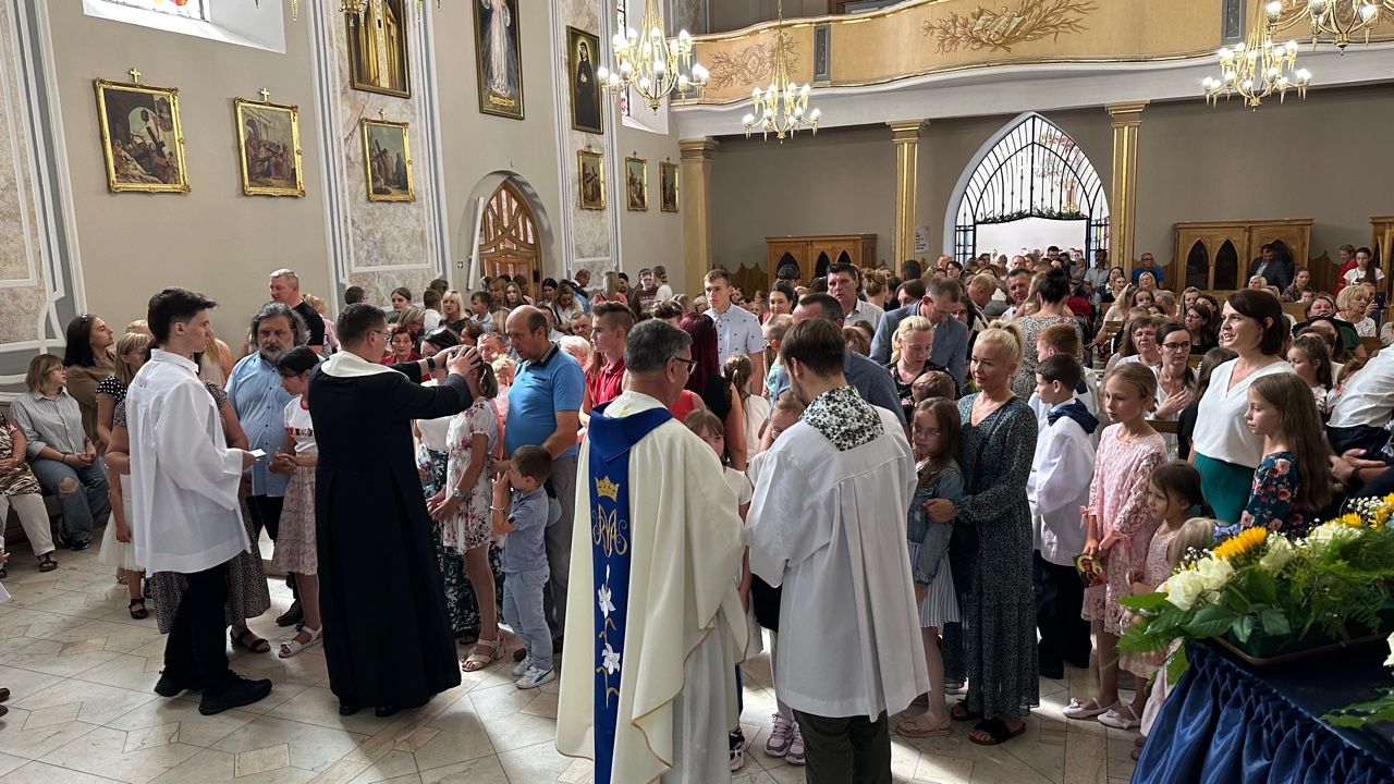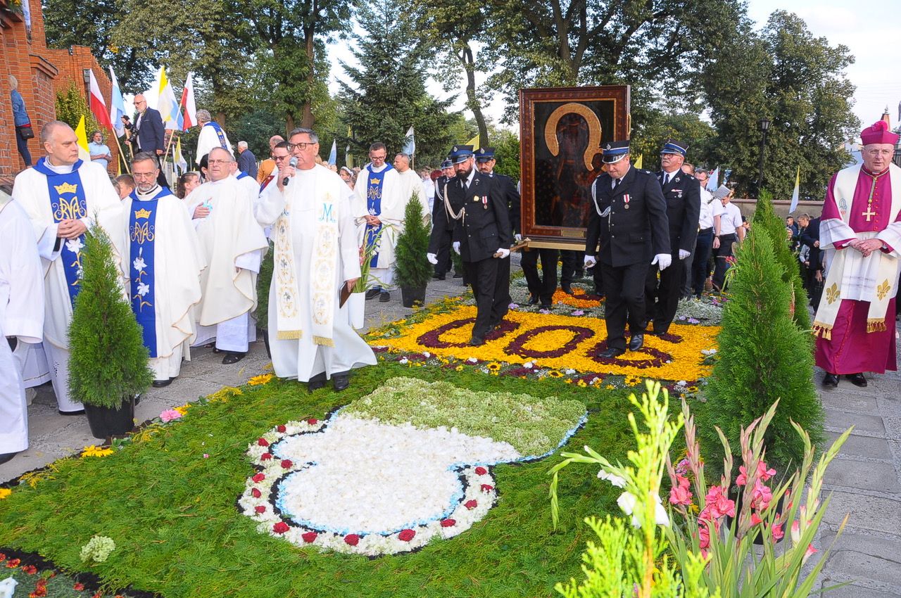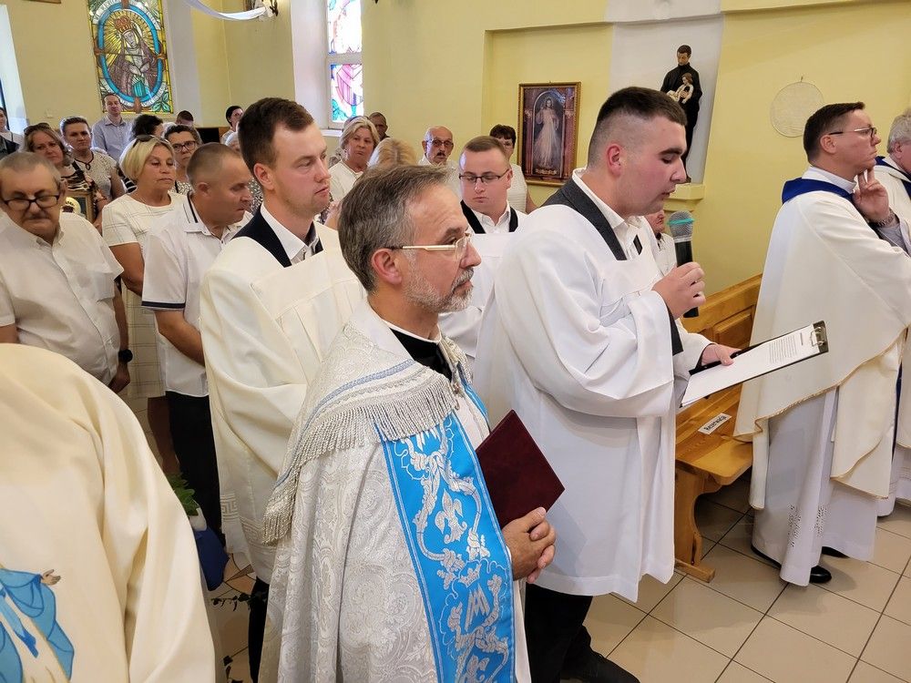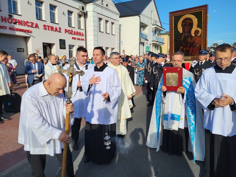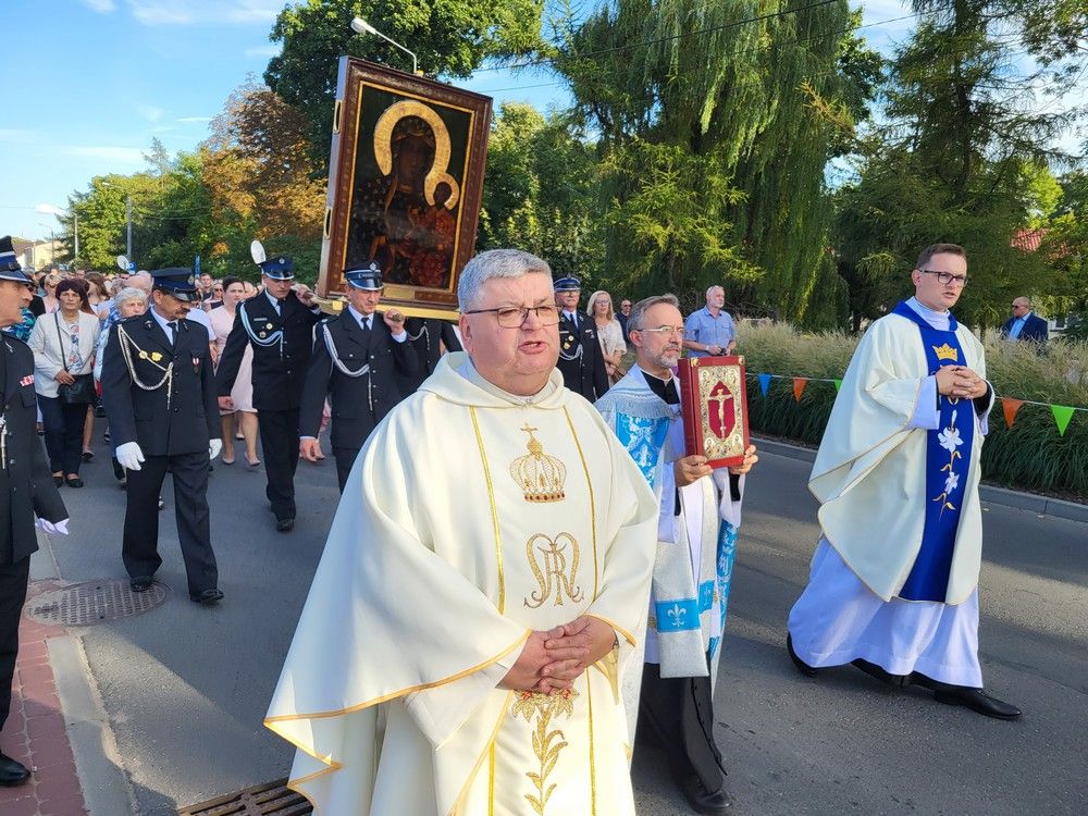 Ostatni tydzień sierpnia był dla parafian z Izbicy Kujawskiej niezwykły i bardzo pracowity. Cała wspólnota przygotowywała się do ważnego wydarzenia – Nawiedzenia Matki Bożej w znaku Ikony Jasnogórskiej. Zbiegło się ono z Jubileuszem 900-lecia Diecezji Włocławskiej. 48 lat temu, w dniach 16-17 sierpnia 1975 r. Matka Boża przybyła do izbickiej parafii. 1-2 września 2023 r. nawiedziła nas ponownie. Do tej uroczystości wspólnota przygotowywała się poprzez Misje Święte, które w dniach 27- 31.08 2023 r. prowadził ojciec Paulin Krzysztof Kowalski. Wierni zatroszczyli się również o godne przyjęcie Matki w swojej parafii. Udekorowali trasy przejazdu, swoje domy, kościół parafialny, na Placu Wolności i przed świątynią powstał dywan kwiatowy. Przyjęcie było wyjątkowe, jak na powitanie Królowej Polski przystoi. Wielu ludzi z zapałem pracowało, aby pięknie powitać Matkę Bożą w Izbicy Kujawskiej.1 września 2023 r. tłumy wiernych zebrały się o godzinie 17 w świątyni, a potem przeszły na miejsce powitania Obrazu Matki Bożej. Tylu ludzi nie było na żadnej uroczystości religijnej. O godzinie 17.30 samochód – kaplica pilotowany przez policję, straż i motocyklistów przybył na Plac Wolności. Matka Boża przyjechała do Izbicy Kujawskiej z parafii Modzerowo. Przybył również ks. Marek Kasiorkiewicz – proboszcz z Modzerowa wraz z delegacją. Na niezwykłego Gościa oczekiwali: ks. biskup Krzysztof Wętkowski, ks. dziekan – proboszcz izbickiej parafii – Krzysztof Stawicki, ks. wikariusz Paweł Piasecki, kapłani z dekanatu izbickiego oraz rzesze wiernych. Takiego wydarzenia w naszym miasteczku nie było od dekad. Maryja uczyniła cud i zjednoczyła swoje dzieci. Po przybyciu samochodu- kaplicy Ikonę przywitali symbolicznym pocałunkiem ram ksiądz biskup i ksiądz dziekan. Druhowie strażacy przejęli Obraz i procesyjnie zanieśli do kościoła po kwietnych dywanach. Była orkiestra, dzieci sypiące kwiatki, asysta kujawska, liczni kapłani i lud Boży witający swoją Matkę. W świątyni Obraz przywitał ks. proboszcz, rodzina, młodzież i dzieci. O godzinie 18.00 rozpoczęła się Msza święta powitania pod przewodnictwem ks. biskupa Krzysztofa Wętkowskiego, który modlił się o błogosławione owoce czasu nawiedzenia.