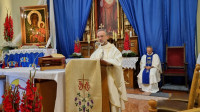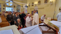 Po odczytaniu Ewangelii o Nawiedzeniu oraz telegramu Ojca św. Franciszka miało miejsce powitanie przez ojca proboszcza oraz delegacje rodziców, młodzieży i dzieci, a następnie rozpoczęła się koncelebrowana Msza święta powitania, której przewodniczy bp Wiesław Mering.