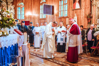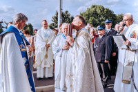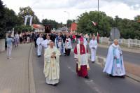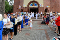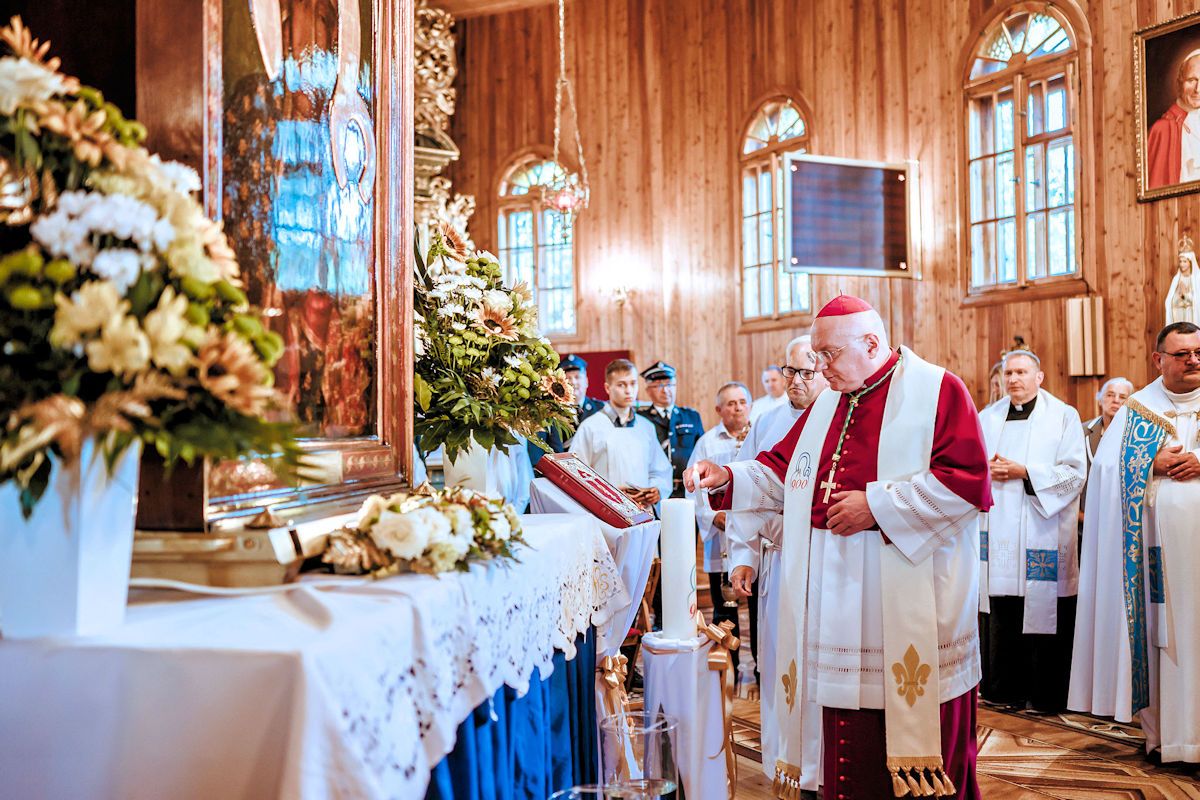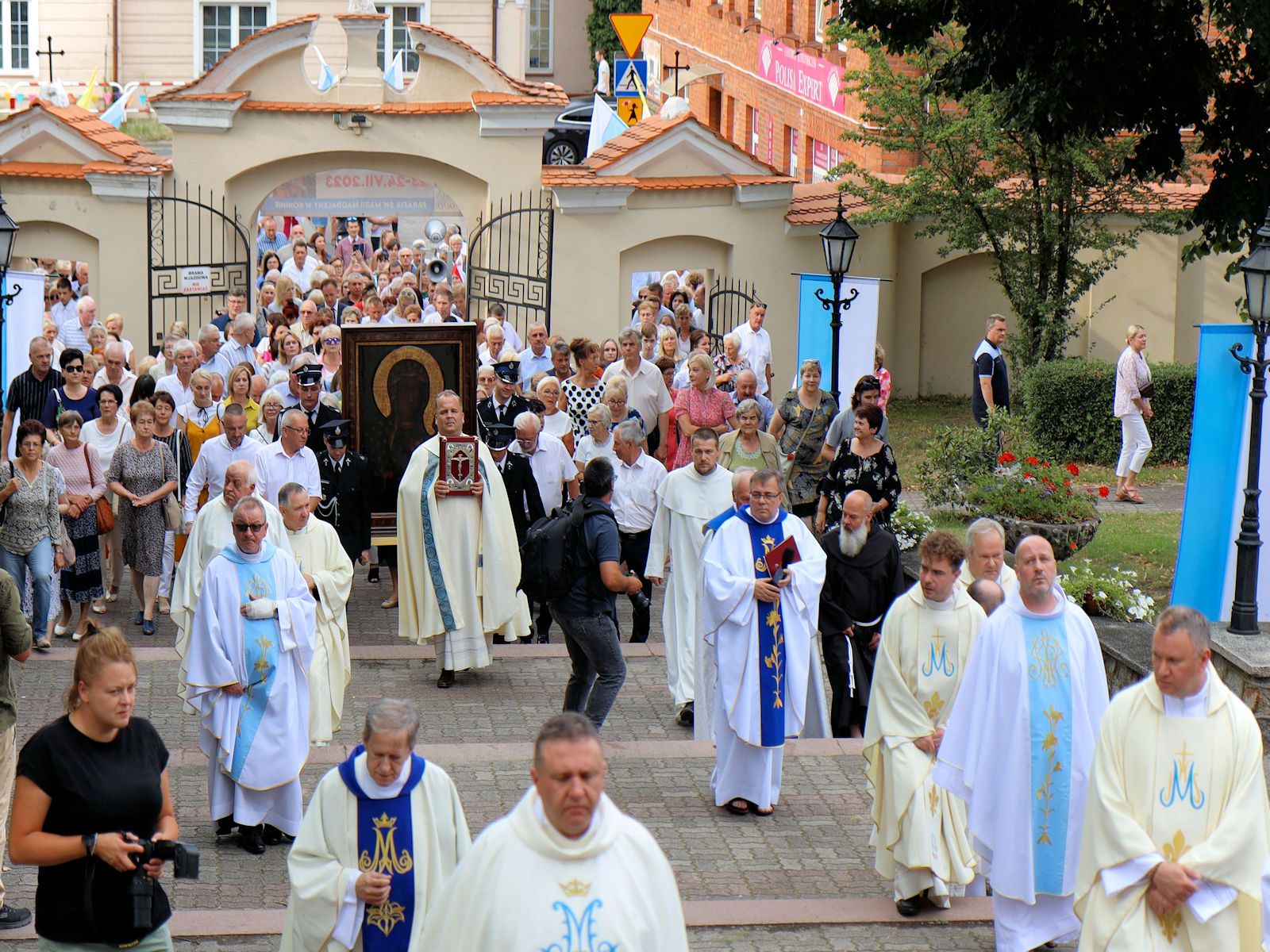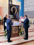 Uroczystości zostały zakończone Eucharystią pożegnania o godzinie 16.00, której przewodniczył ksiądz biskup senior Wiesław Alojzy Mering. Odśpiewano uroczysteTe Deum laudamusi Ikona Matki Bożej Częstochowskiej w uroczystej procesji została złożona doautokaplicy i udała siędoparafii NMP Królowej Polski po drugiej stronie Warty, gdzie podziękowanie za nawiedzenie złożyli ks. proboszczTomasz Michalski iPaństwo Borowczyk wraz z czwórką swoich dzieci.