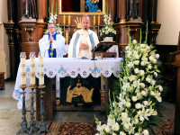 O północy odbyła się Msza święta dziękczynno-błagalna opowołania. Mszy świętej przewodniczył i wygłosił homilię ks.Tomasz Matecki pochodzący z parafii.