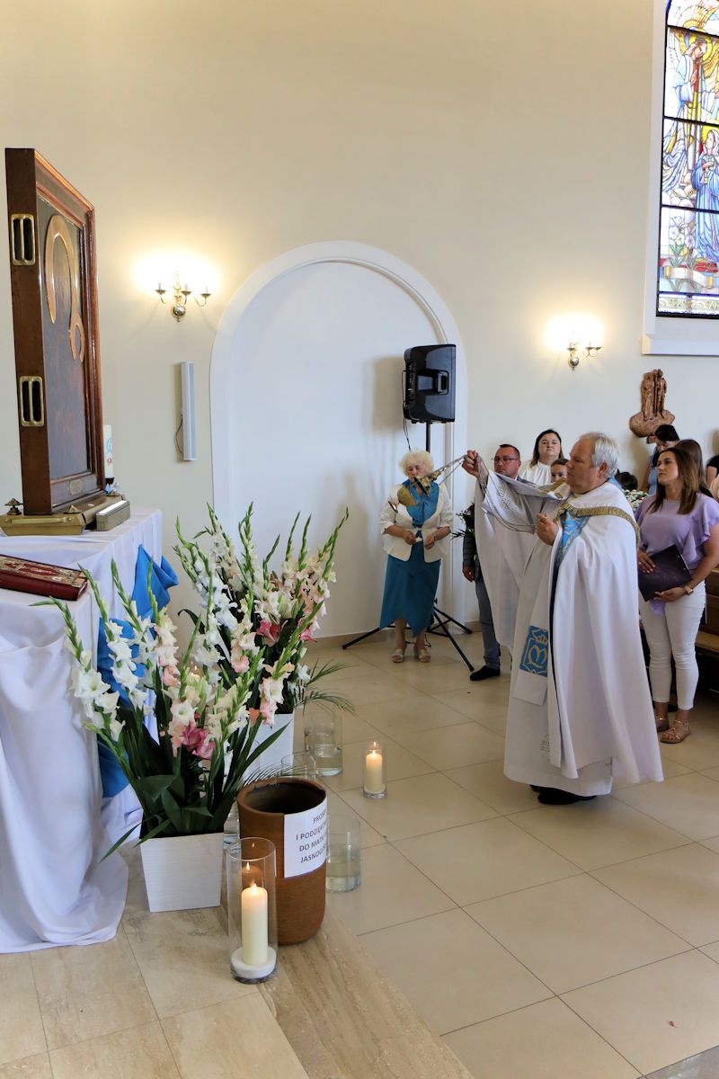 Po dniach słuchania Słowa Bożego, modlitwie apelowej i sakramentalnej spowiedzi 24 lipca rozpoczęliśmy nabożeństwo oczekiwania, by około 17:30 ze wzruszeniem przyjąć Panią Jasnogórską. Słowo powitania wypowiedział ks. Proboszcz, rodzina i młodzież z parafii. Eucharystii koncelebrowanej przez księży z dekanatu przewodniczył bp Stanisław Gębicki, amaryjną homilię wygłosił o. Krzysztof. Apel Jasnogórski z modlitwą o dary Ducha Świętego dla całej wspólnoty parafialnej wraz z ojcem misjonarzem poprowadził ojciec kustosz Paweł Subik. Następnie młodzież i wspólnota Equipes Notre-Dame animowały czuwanie przy Ikonie nawiedzenia.