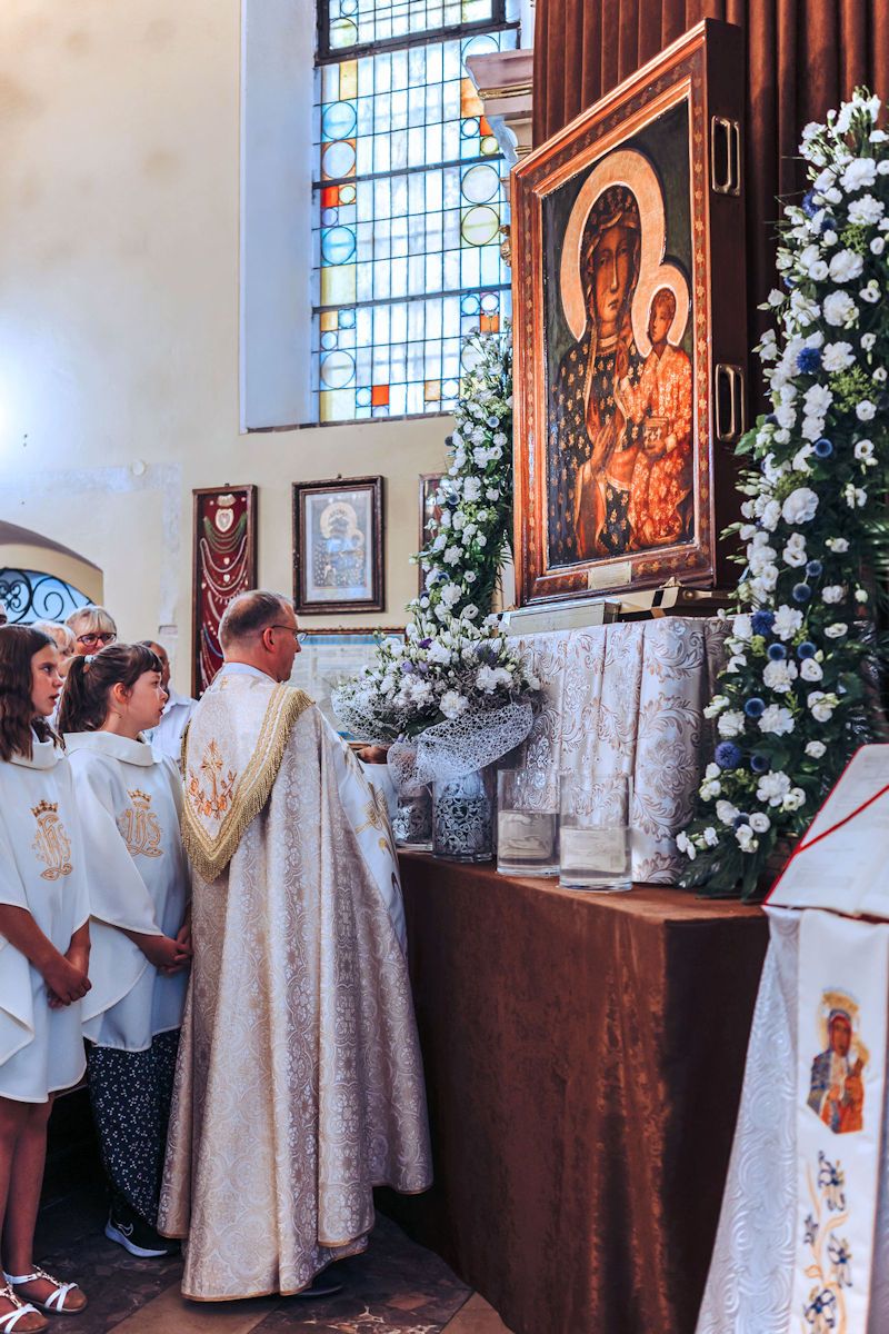 „Do tego ważnego wydarzenia parafia przygotowywała się przez 9 – miesięczną nowennę. Od pierwszej niedzieli sierpnia 2022 co miesiąc o godz. 17.00 ks. Proboszcz przewodniczył modlitwie różańcowej w tej intencji dokonując aktu zawierzenia diecezji włocławskiej i parafii św. Bartłomieja Matce Bożej. Zewnętrznym znakiem naszego oczekiwania była okolicznościowa dekoracja, na której umieszczono obraz Matki Bożej Częstochowskiej oraz zapalona jubileuszowa świeca.