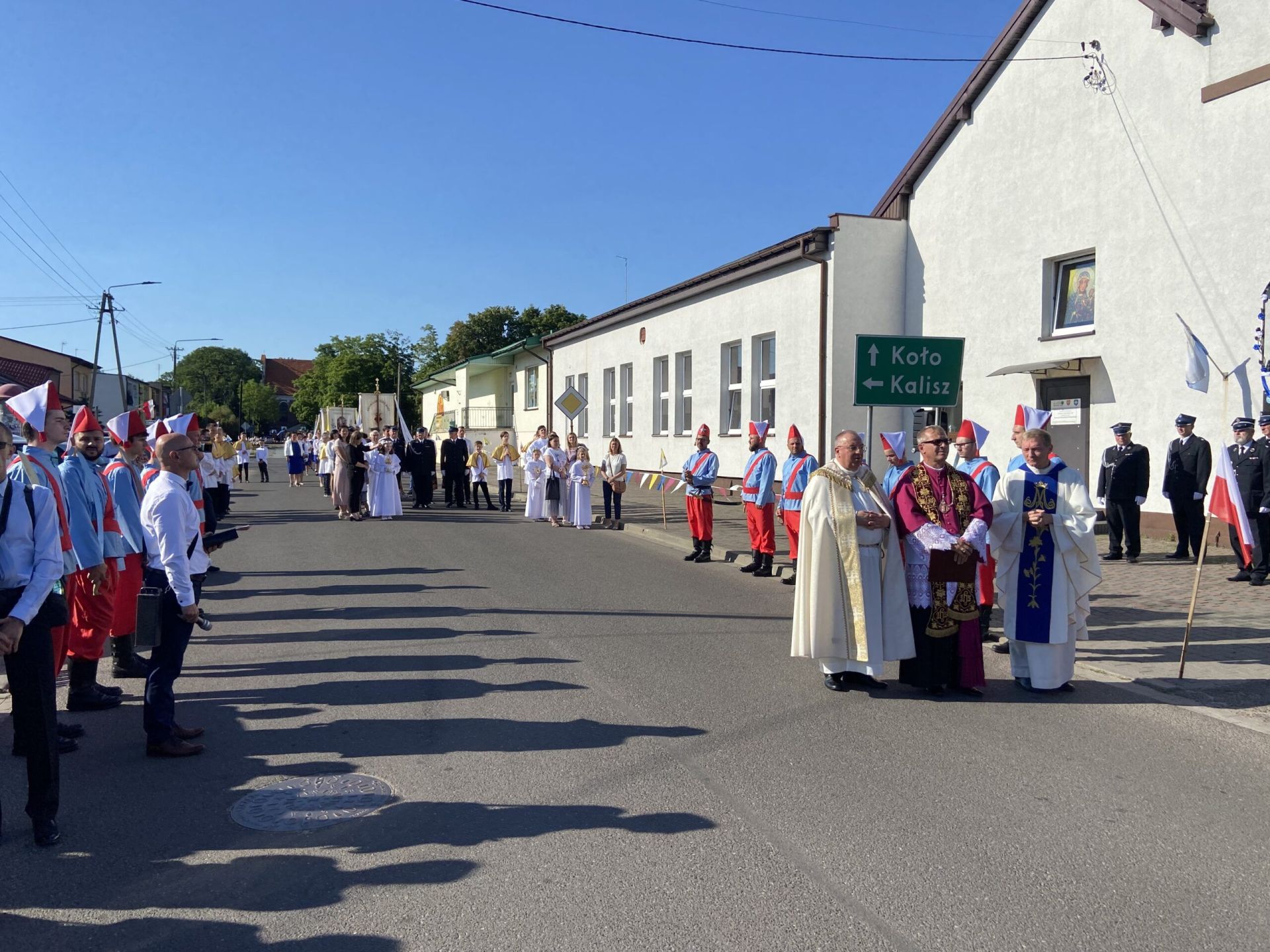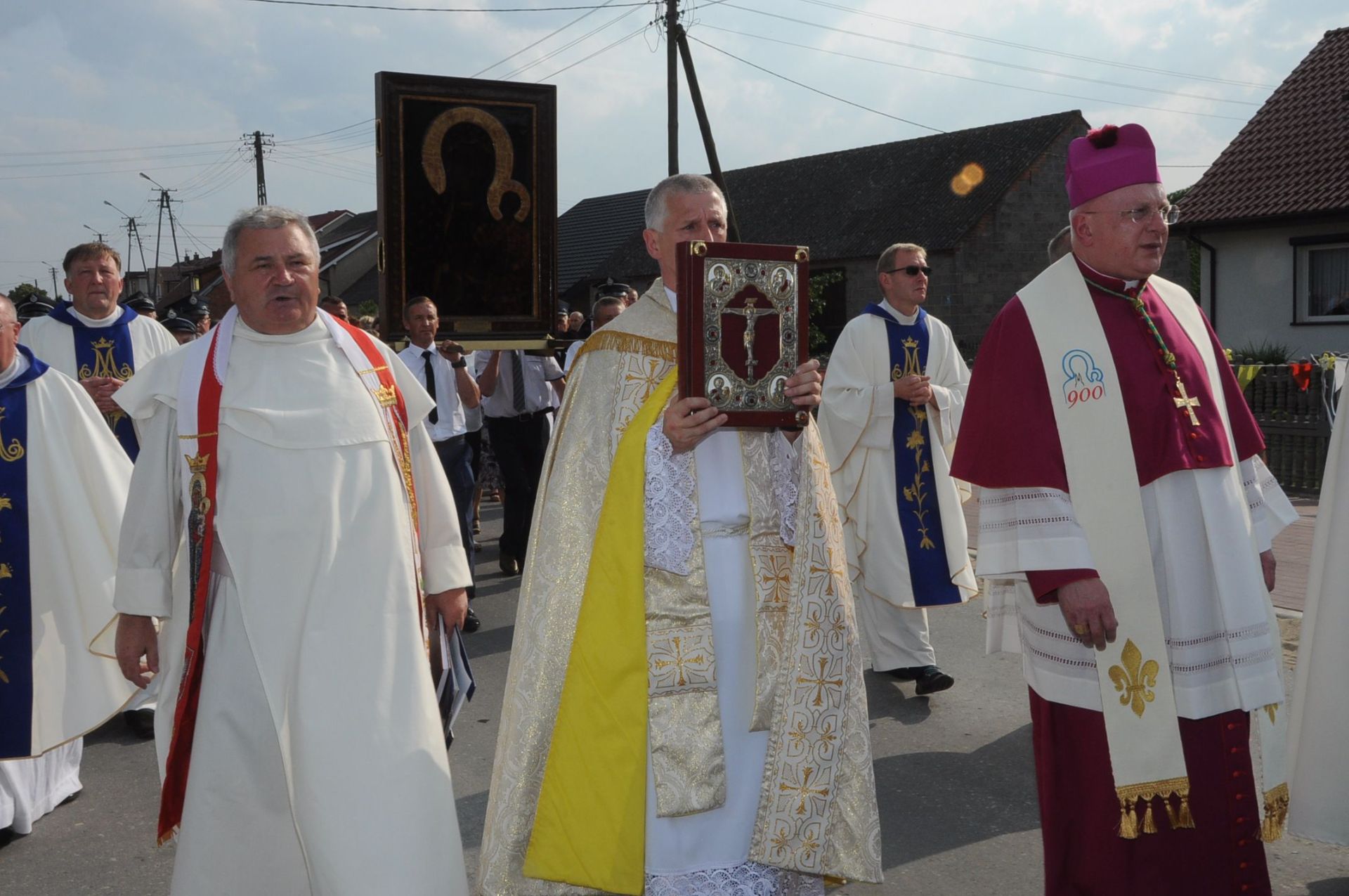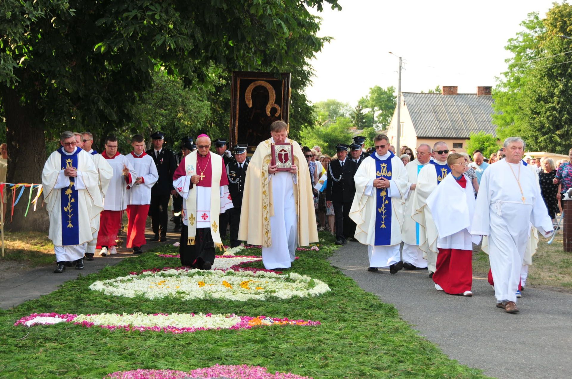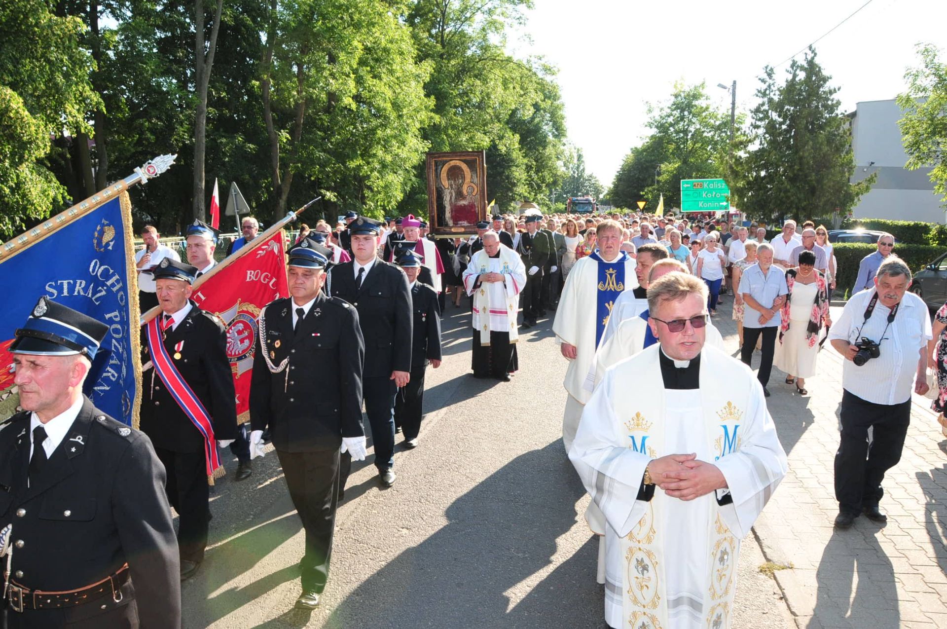 W sobotę 8 lipca, o godzinie 17.00 wierni bardzo licznie zgromadzili się w kościele na oczekiwanie przybycia do Matki Bożej. Po krótkiej modlitwie i wspólnym śpiewie wszyscy wierni wraz ze strażakami z udali się przed plac Gminny by oczekiwać na przyjazd Matki Bożej. Około godziny 17.30 o. Paweł – kustosz Obrazu Matki Bożej z korowodem policji, motocyklistów i straży przywiózł z parafii Brudzew Jasnogórską Ikonę. Następnie ks. Bp Krzysztof Wętkowski i ks. dziekan wraz kapłanami, asystą, służbą liturgiczną i strażakami którzy na swoich ramionach nieśli Ikonę Matki Bożej procesyjnie udali się do Kościoła.