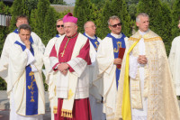 ks. kan. Aleksander Rybczyński oraz rodzina państwa Marciniaków jako przedstawiciele parafii. Liturgii powitania i Eucharystii przewodniczył ks. Bp. Krzysztof Wętkowski i wygłosił słowo Boże.