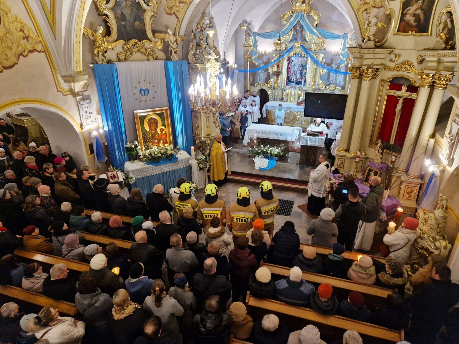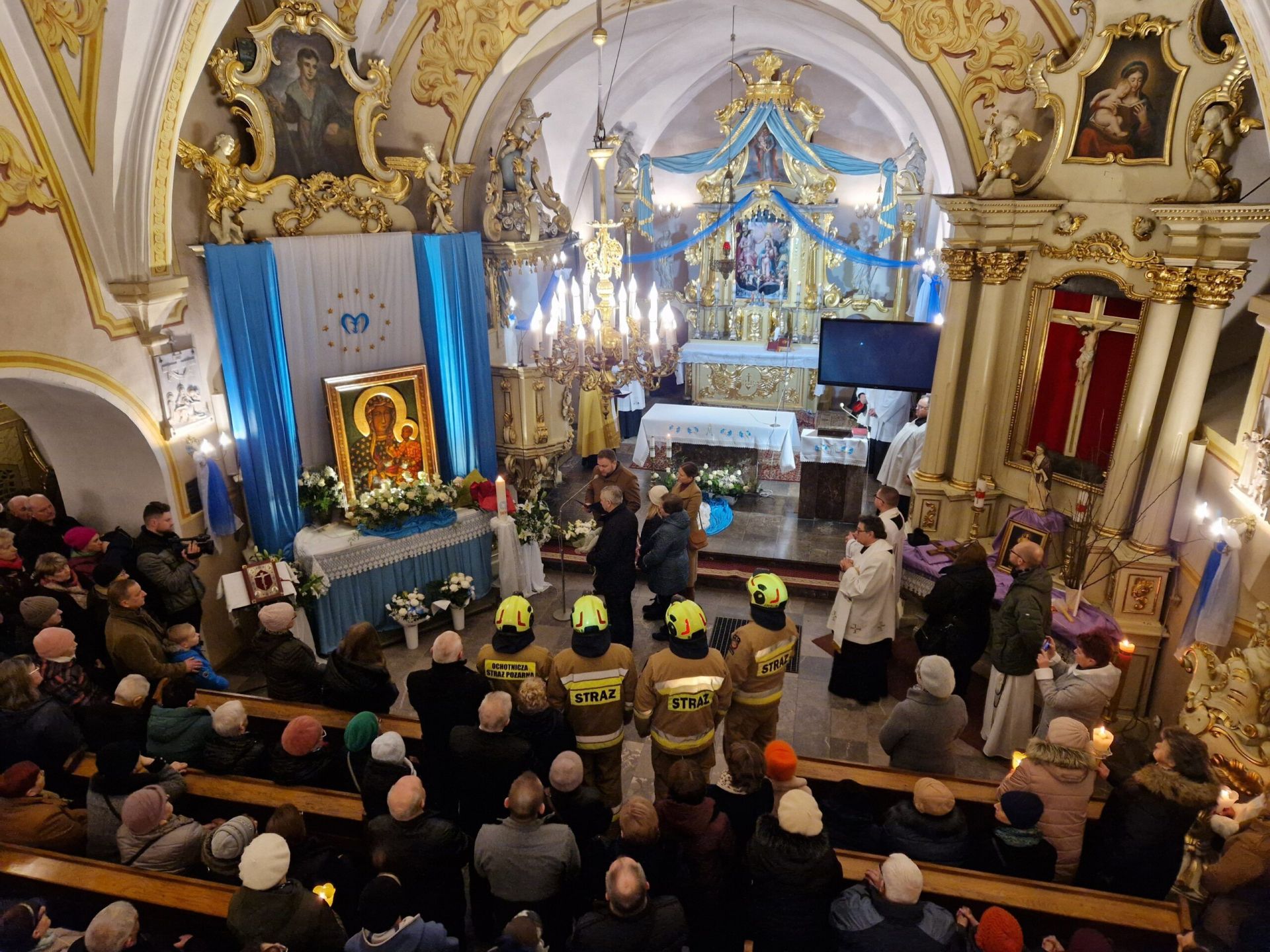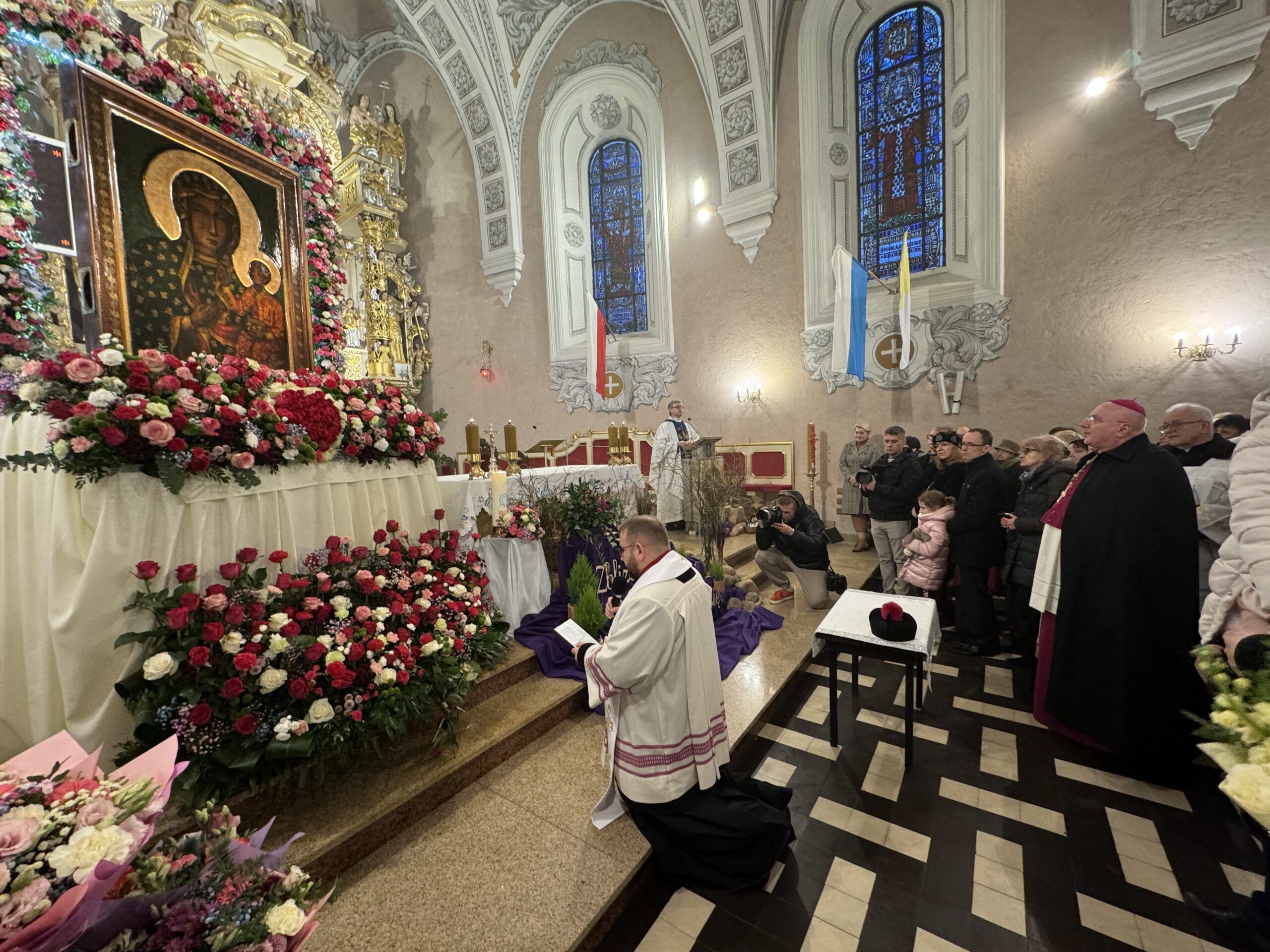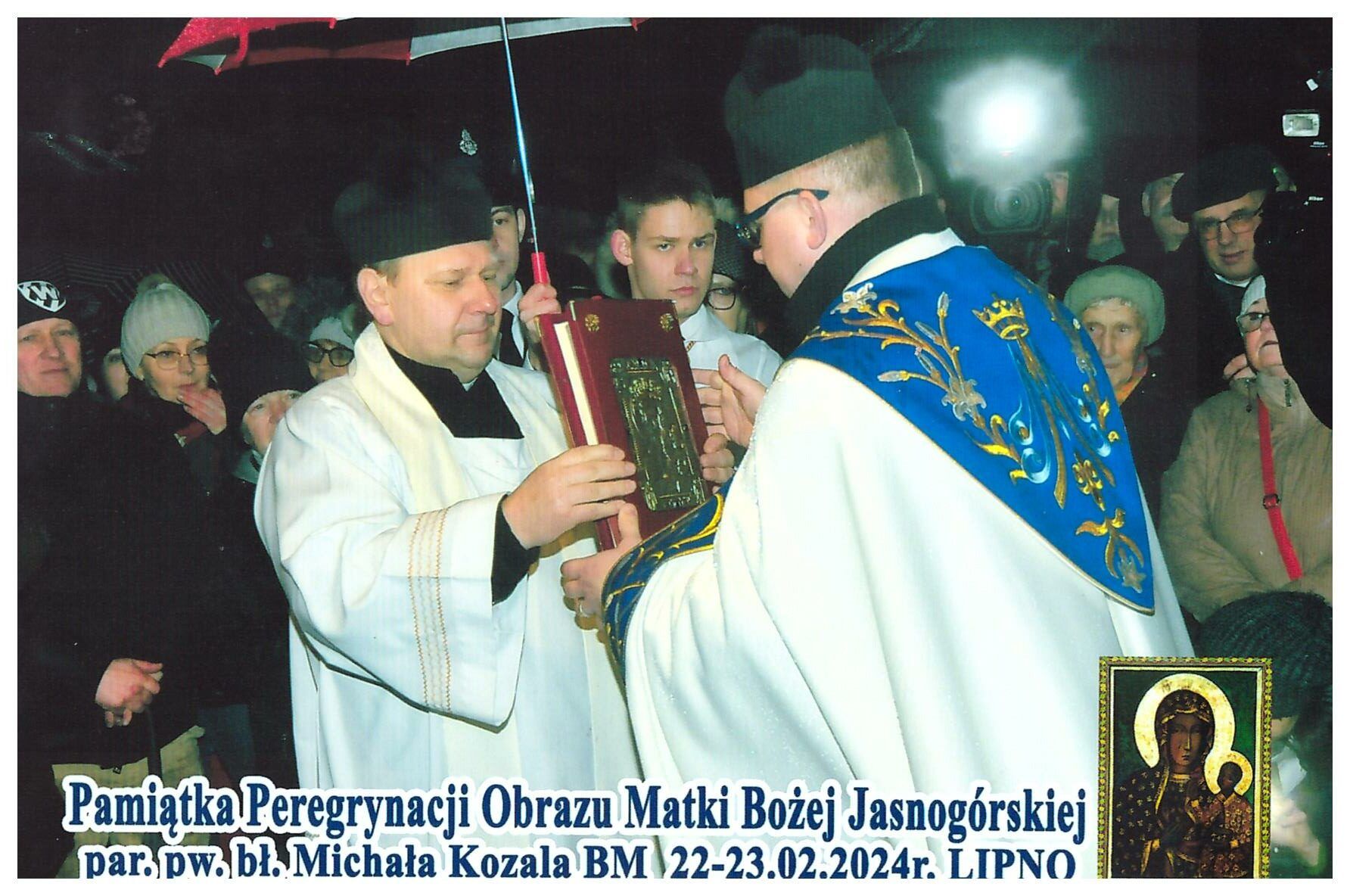 Parafia bł. Michała Kozala BM w Lipnie, przeżywała nawiedzenie Matki Bożej w znaku Ikony Jasnogórskiej, w dniach: 22 i 23 lutego br. Do tego historycznego wydarzenia (gdyż było to pierwsze nawiedzenie w parafii) lipnowska wspólnota przygotowywała się duchowo poprzez czterodniowe rekolekcje, które prowadził o. Augustyn Zygmunt FCM (gwardian z Brodnicy). Parafianie, wraz z duszpasterzami: ks. Rafałem Zielińskim (proboszczem) oraz wikariuszami: ks. Robertem Dynakowskim i ks. Łukaszem Świątkiem, prowadzeni przez o. Augustyna, w strugach deszczu, wyczekiwali na Matkę Bożą, która w eskorcie wozów strażackich i policji, w samochodzie kaplicy, przybyła na plac przed kościołem. Spojrzenie na Ikonę i przekazanie Ewangeliarza, następnie śpiew pieśni na powitanie Maryi i pierwsze tony orkiestry, krótka procesja do kościoła, a w nim tron przygotowany z taką pieczołowitością dla naszej Królowej, posługa strażaków, a następnie powitania Maryi przez: Proboszcza, rodzin, młodzieży i dzieci. Po pierwszych chwilach łez i wzruszeń wiernych, nadszedł czas sprawowania Eucharystii, której przewodniczył biskup senior Wiesław Mering, wskazując, że obecność Maryi jest darem, na który nie można sobie zasłużyć. Czas nawiedzenia obfitował w dary duchowe, a świątynia przepełniona żarliwą modlitwą wiernych, stała się swoistego rodzaju sanktuarium, gdzie głosi się Ewangelię, celebruje Eucharystię, sprawuje sakrament pojednania i namaszczenia chorych. „Pasterka Maryjna”, sprawowana o godz. 22.00 przez kapłanów pochodzących i posługujących w parafii, której przewodniczył ks. prof. Jacek Szymański (były wikariusz parafii), a homilię wygłosił ks. Marcin Kamiński (rodak z parafii), Apel Jasnogórski, całonocne czuwanie, śpiew Godzinek, Msza Święta z udziałem chorych, dzieci, młodzieży i rodzin oraz tak zwana Msza Święta pożegnania, kiedy Ksiądz Proboszcz – Wicedziekan Dekanatu Lipnowskiego, dokonał aktu zawierzenia parafii Matce Bożej, to tylko niektóre „dary”, na które wierni odpowiedzieli przez podjęcie postanowień, zobowiązań zerwania z grzechem i wejście na drogę nawrócenia. Świadczą o tym liczne intencje złożone u stóp Jasnogórskiego Wizerunku oraz założona Księga Zawierzenia parafii. Dobrą okazją do ożywienia religijnego wspólnoty parafialnej i pogłębiania pobożności, będzie zapowiedziane przez Proboszcza „małe nawiedzenie” w rodzinach.