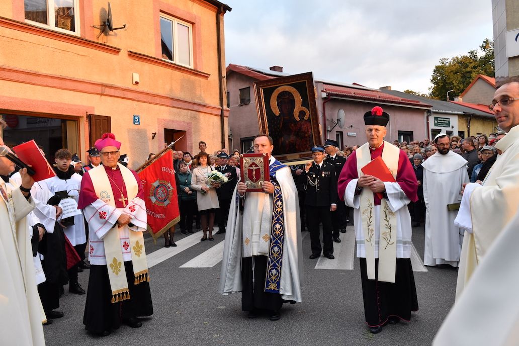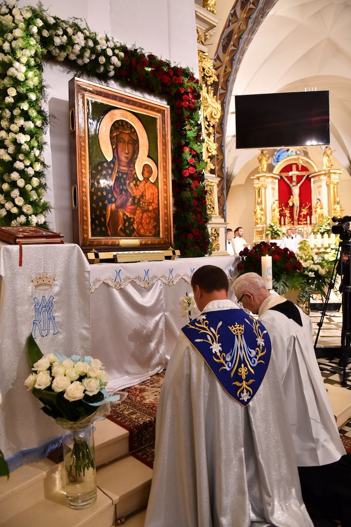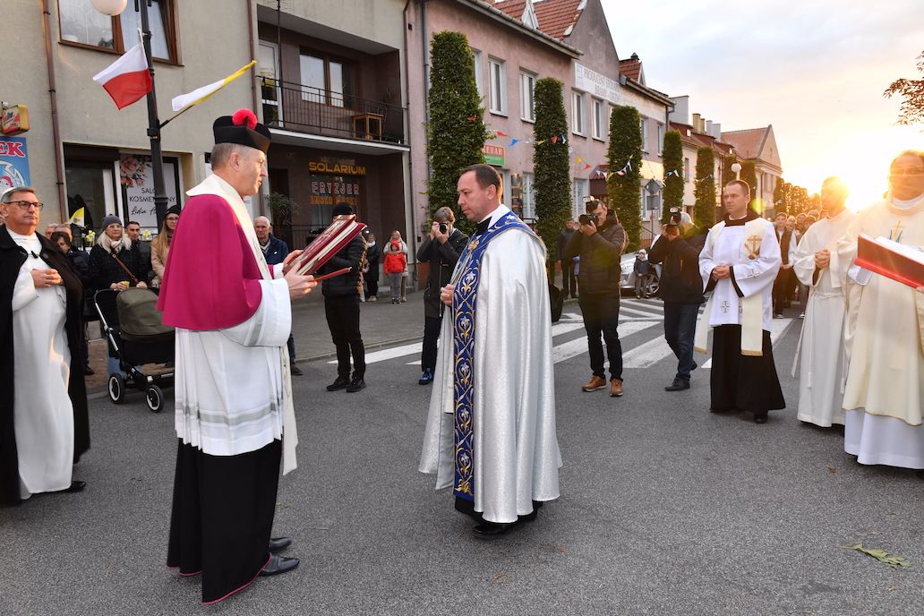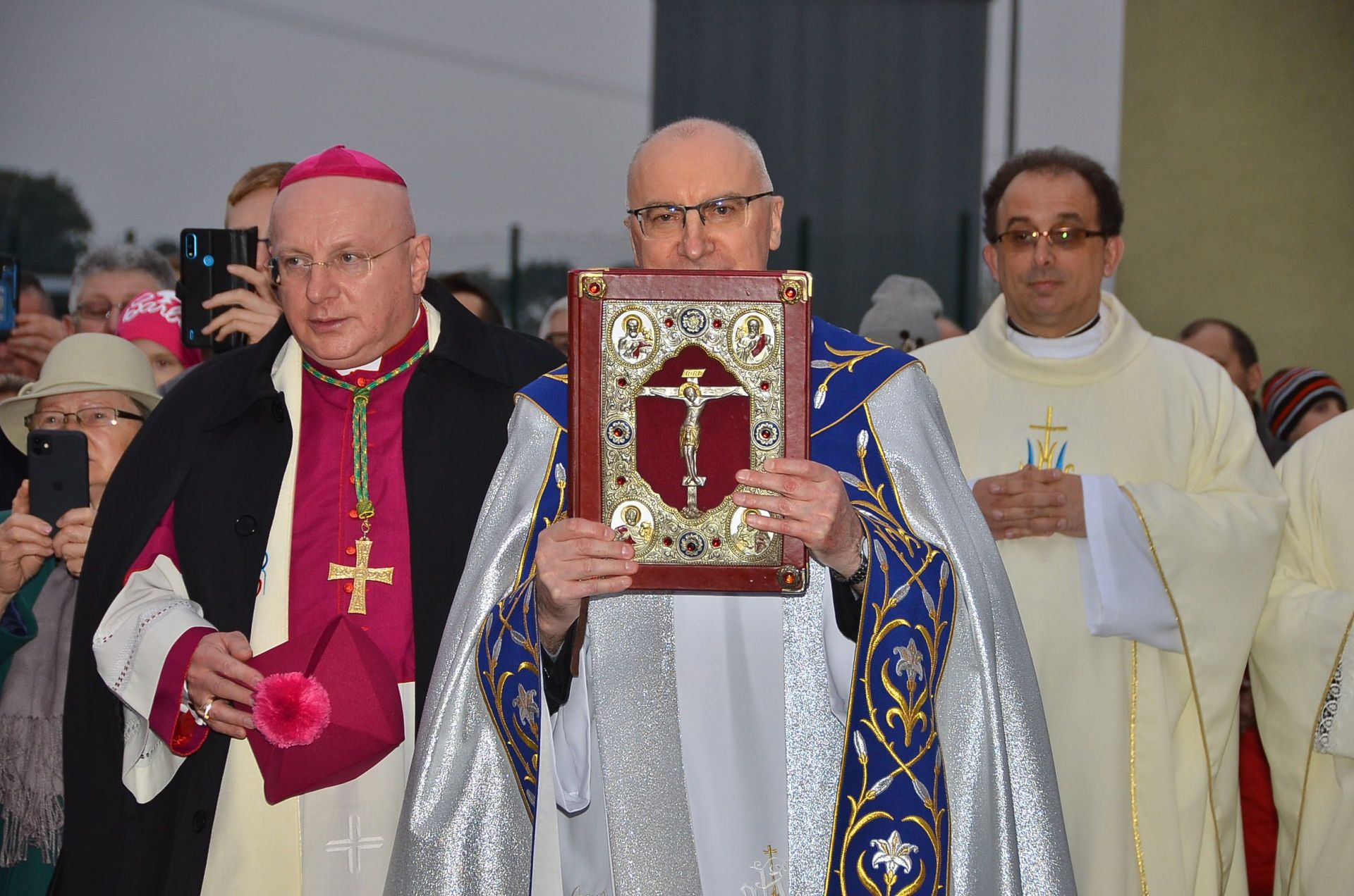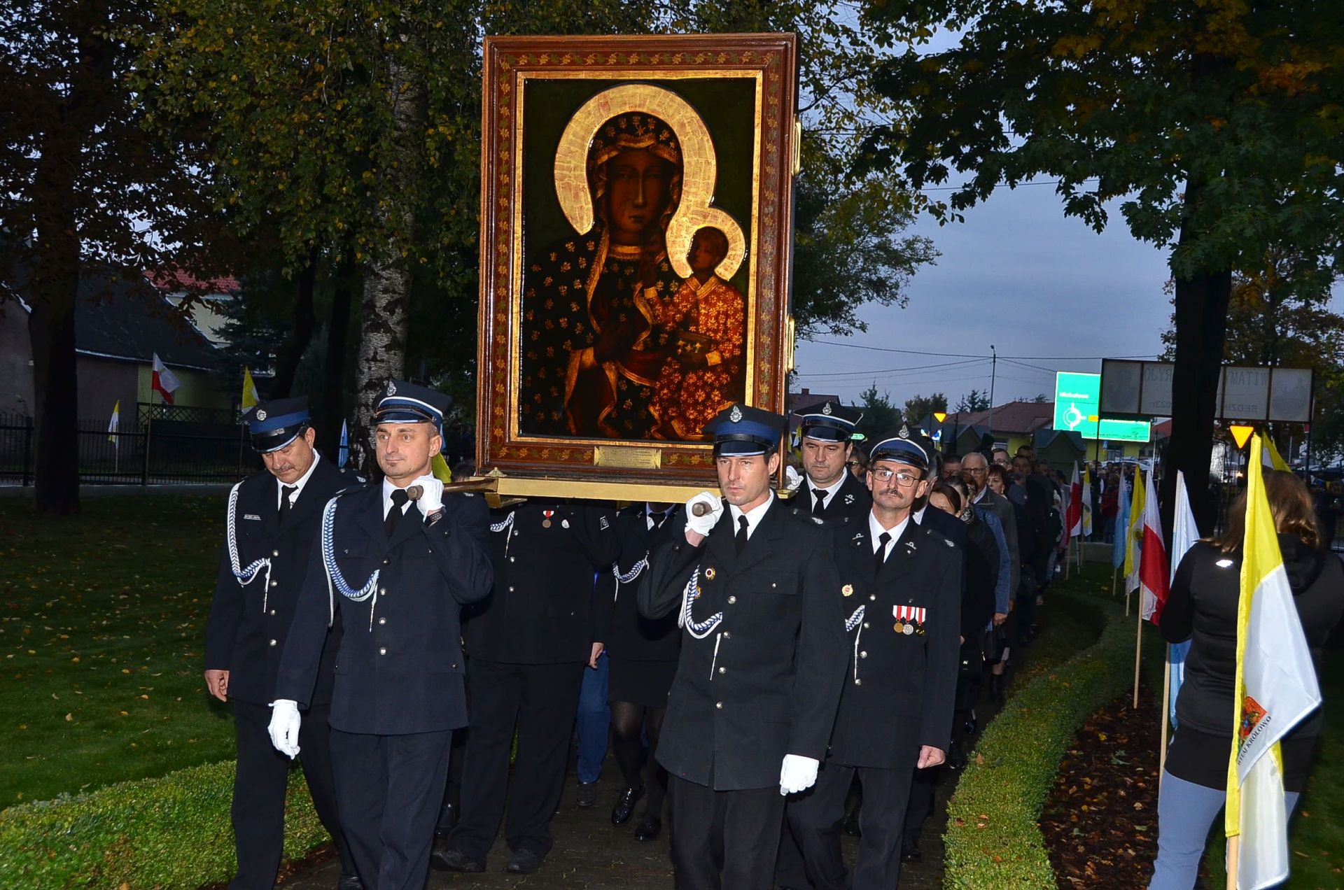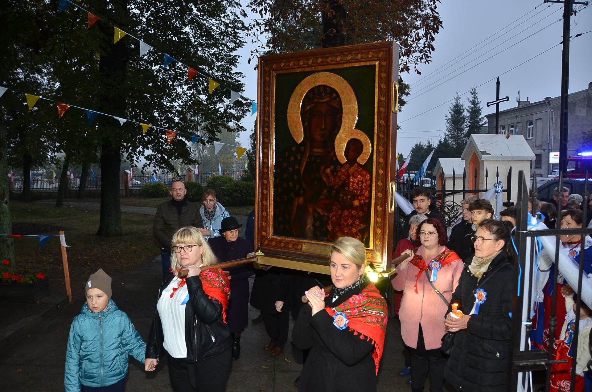 W poniedziałkowe popołudnie. o godz. 16.45 liczna rzesza wiernych zebrała się w sanktuarium, by uczestniczyć w modlitewnym nabożeństwie oczekiwania. Tuż przed godziną 17.15 ze świątyni wyruszyła procesja, aby na granicy parafii oczekiwać na Maryję. Po powitaniu i ucałowaniu Obrazu przez księdza biskupa i ojca proboszcza Krzysztofa Tarnowskiego, ks. Ireneusz Mrowicki, proboszcz parafii Wniebowzięcia NMP przekazał o. Krzysztofowi Ewangeliarz.