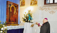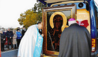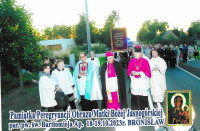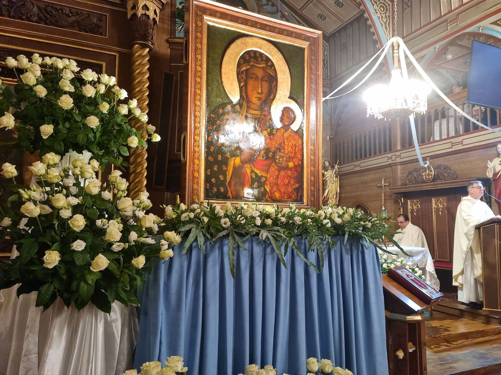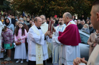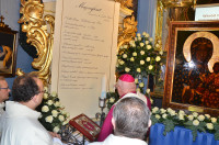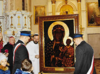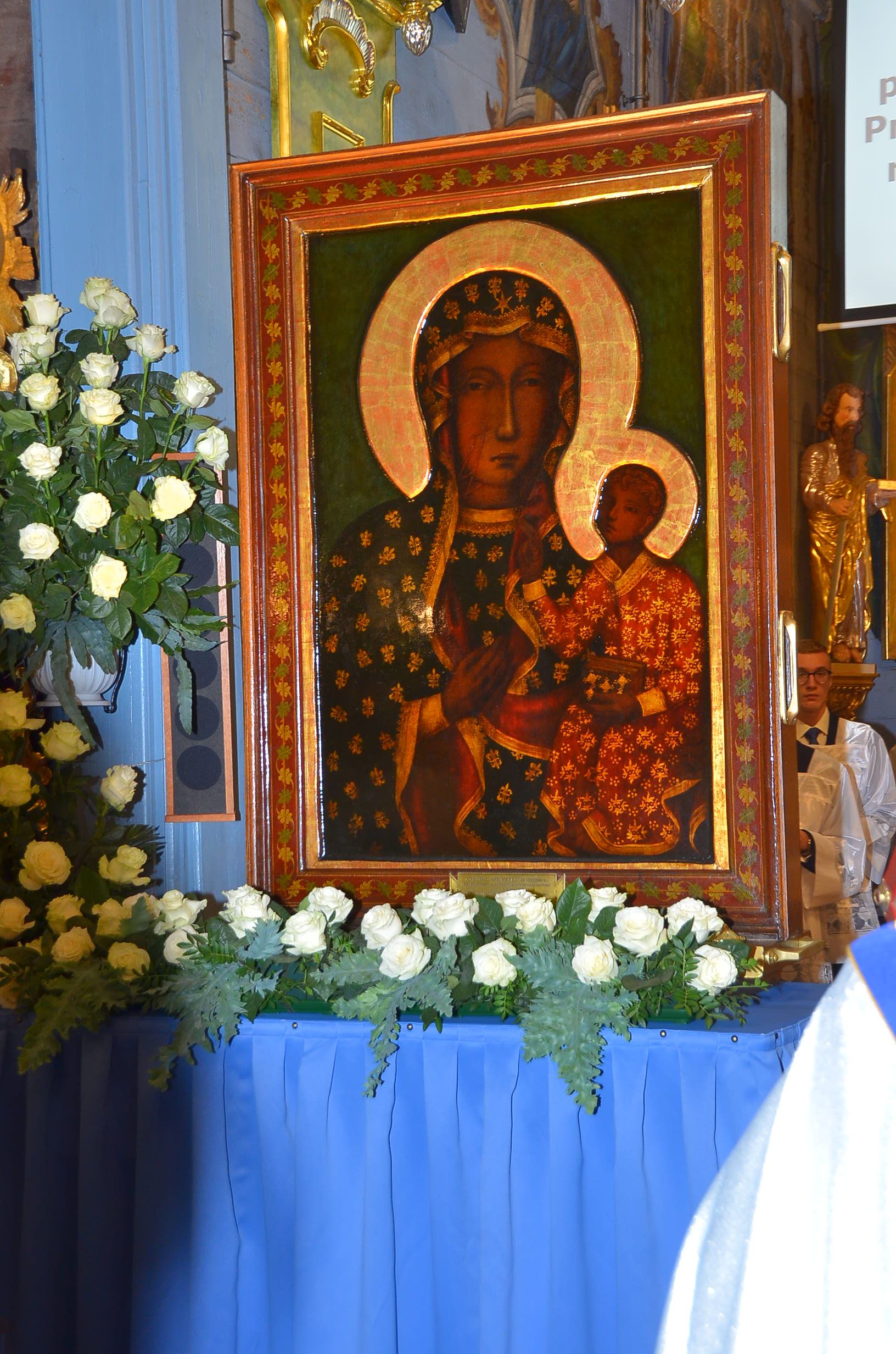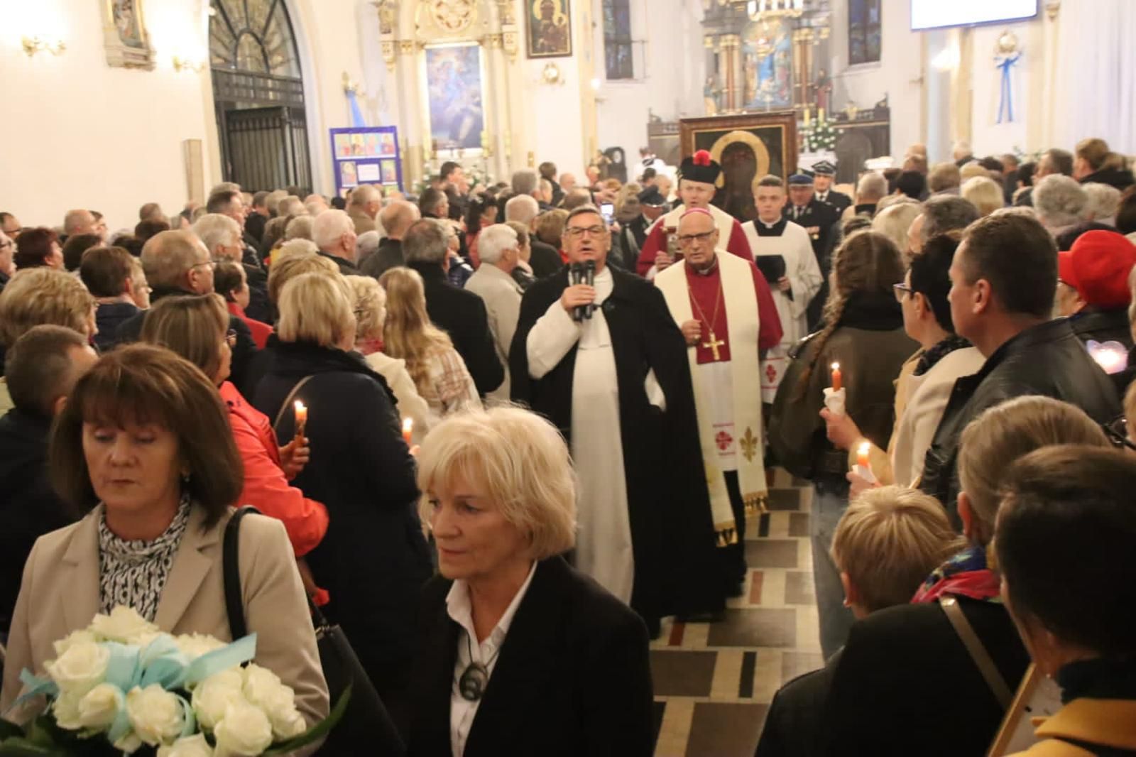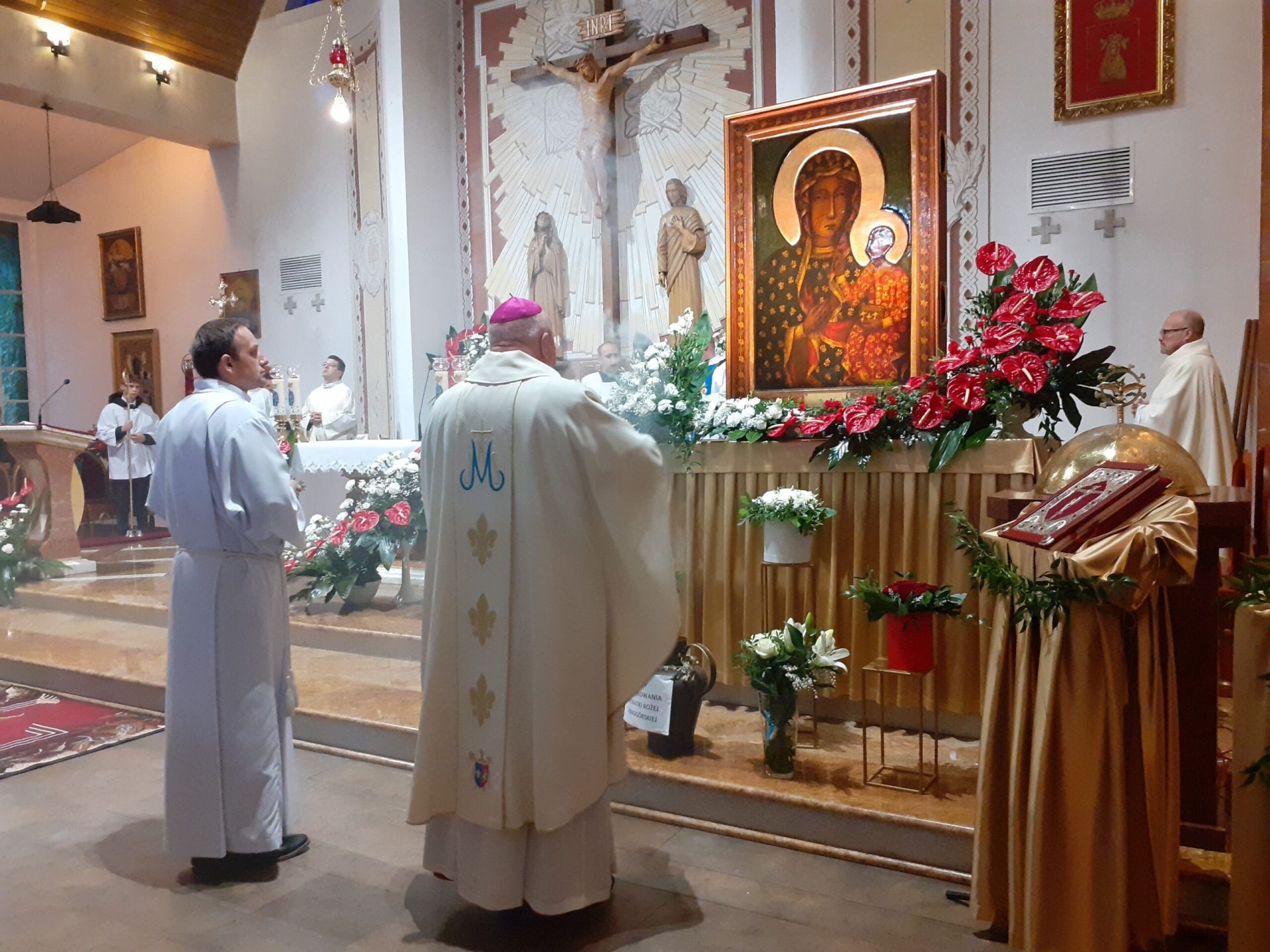 W poniedziałkowe popołudnie. o godz. 16.45 liczna rzesza wiernych zebrała się w sanktuarium, by uczestniczyć w modlitewnym nabożeństwie oczekiwania. Tuż przed godziną 17.15 ze świątyni wyruszyła procesja, aby na granicy parafii oczekiwać na Maryję. Po powitaniu i ucałowaniu Obrazu przez księdza biskupa i ojca proboszcza Krzysztofa Tarnowskiego, ks. Ireneusz Mrowicki, proboszcz parafii Wniebowzięcia NMP przekazał o. Krzysztofowi Ewangeliarz.