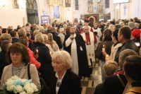 Ze śpiewem na ustach wierni w procesji ruszyli w stronę kościoła klasztornego. Obraz niesiony przez brać strażacką z OSP w Radziejowie został wniesiony do sanktuarium i ustawiony na specjalnie przygotowanym tronie. Obok zapłonęła świeca, która towarzyszy nawiedzeniu. Następnie ojciec diakon Arkadiusz Burzec odczytał Ewangelię a ks. biskup pobłogosławił wiernych Ewangeliarzem nawiedzenia.