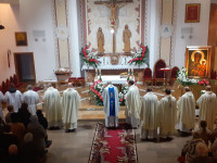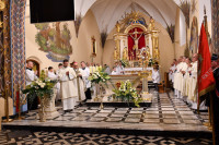 Kulminacyjnym momentem uroczystości powitania była Msza święta koncelebrowana pod przewodnictwem J. E. Ks. Bp. Wiesława Meringa w asyście wikariusza naszej zakonnej prowincji o. Mirosława Bartosa i proboszczów naszego dekanatu. Homilię wygłosił o. Mirosław Bartos. Na zakończenie liturgii głos zabrał o. paulin, Kustosz Obrazu.