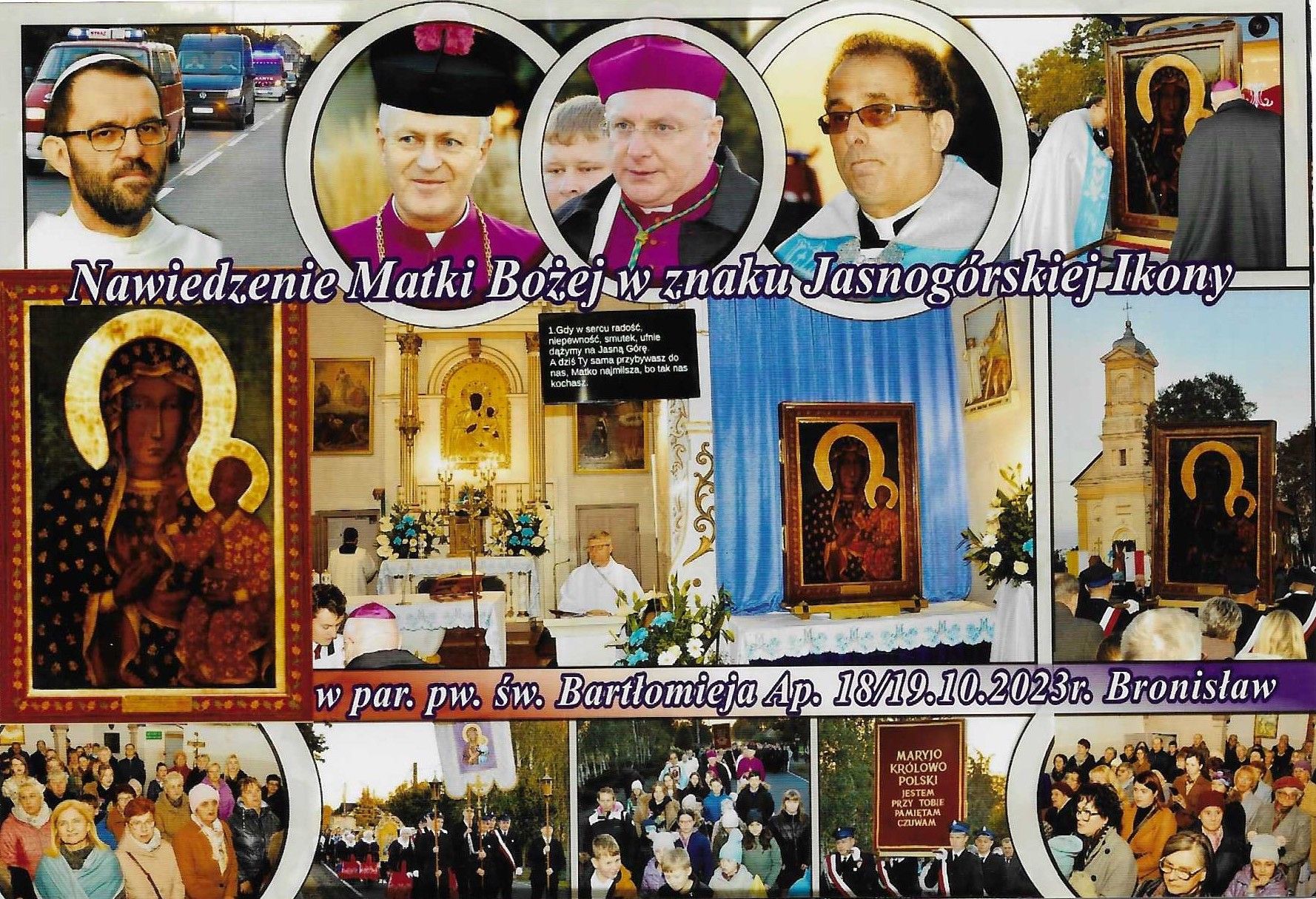 18 października o godz. 17.00 Ikona Matki Bożej z Broniewa przybyła do Parafii. Na swoje ramiona Obraz Matki Bożej wzięli druhowie strażacy z miejscowej OSP. Mszy świętej powitalnej przewodniczył Ks. Bp Krzysztof Wętkowski. Podczas tej Mszy świętej miało miejsce zawierzenie Matce Bożej Jasnogórskiej Ruchu Światło-Życie i Domowego Kościoła diecezji włocławskiej. Akt zawierzenia odczytała Para Diecezjalna DK – Bożena i Zdzisław Wardęgowie, w obecności Moderatora Diecezjalnego Ruchu – Ks. Mariusza Nowackiego i Moderatora Diecezjalnego DK – Ks. Mariusza Danielewskiego, który pełni również funkcje proboszcza tej parafii.O północy Mszy świętej w intencji powołań przewodniczył Ks. Grzegorz Wawrzyniak, były proboszcz tej parafii. Poza czasem Eucharystii trwało czuwanie modlitewne parafian.O godz. 16.00 Eucharystią pożegnaliśmy Ikonę Matki Bożej, która powędrowała do Parafii Dobre.W czasie tej Mszy świętej zostały poświęcone różańce dzieciom, które przygotowują się do I Komunii Świętej. Czas Nawiedzenia w naszej Parafii były czasem doświadczenia obecności Matki Bożej, czasem szczególnej modlitwy i otrzymywania Łaski Bożej.