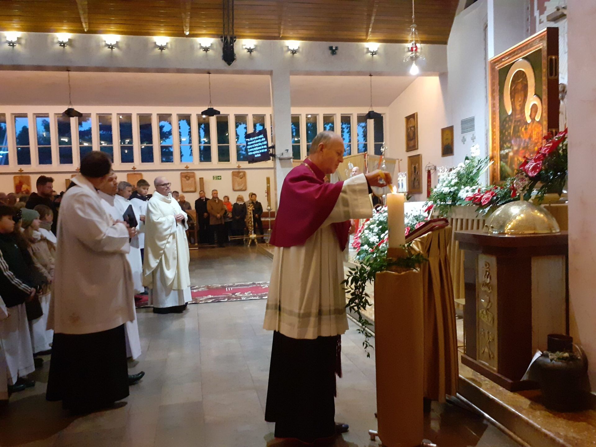 Uroczystość powitania Cudownego Obrazu Matki Bożej w Znaku Ikony Jasnogórskiej rozpoczęła się o godzinie 17.30 procesją do świątyni i Mszą świętą pod przewodnictwem księdza biskupa Krzysztofa Wętkowskiego. Koncelebrowali wszyscy księża dekanatu radziejowskiego.