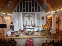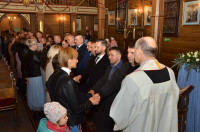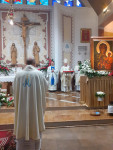 W świątyni została odczytana Ewangelia o nawiedzeniu św. Elżbiety przez Maryję, podczas której wszyscy odśpiewaliśmy pieśń uwielbienia Boga przez Maryję, czyli „Magnificat”.Następnie Matka Boża została przywitana przez księdza proboszcza i rodziny naszej parafii.