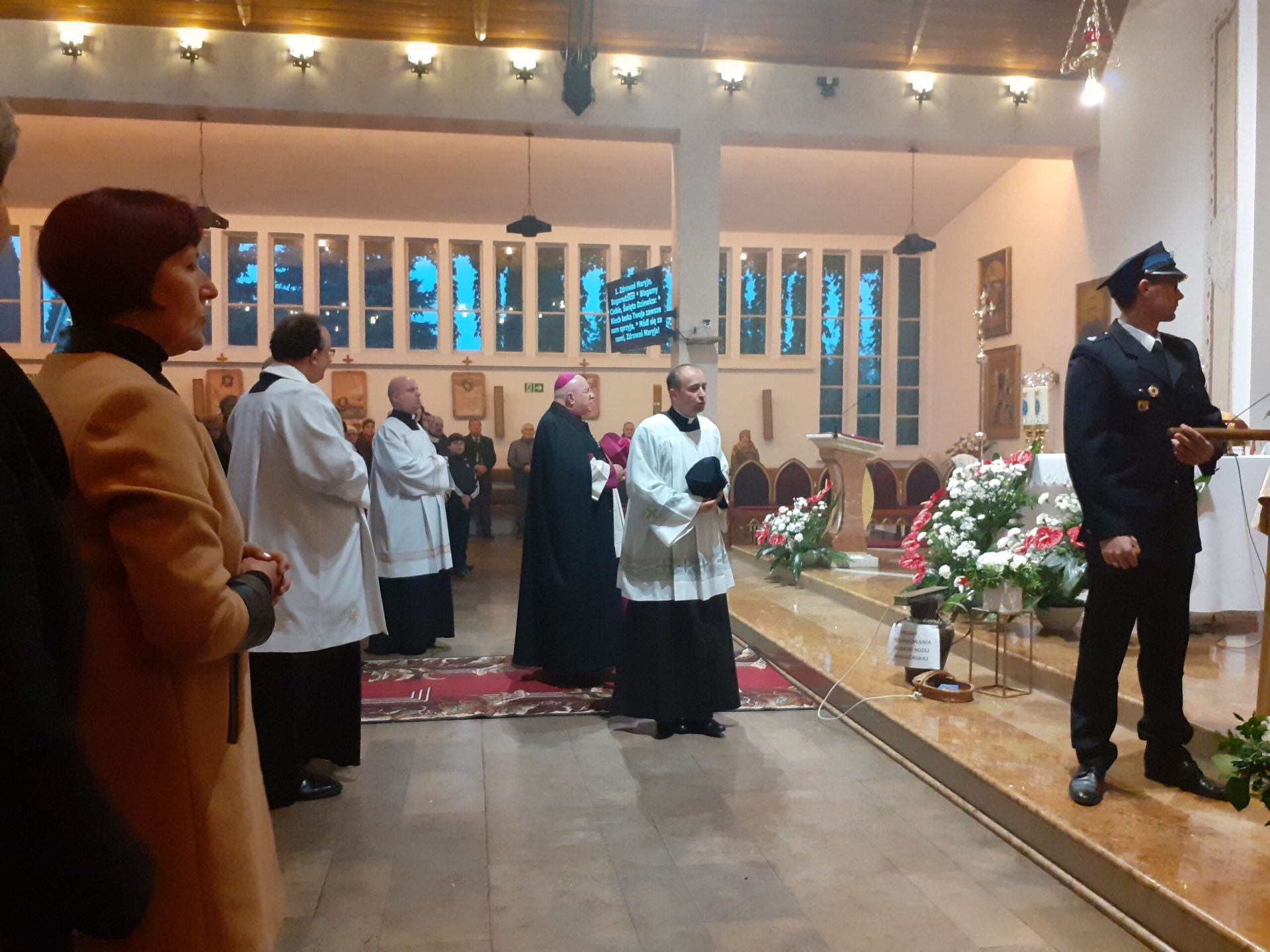 O godz. 14:00 ikona Matki Bożej została przetransportowana do szpitala, aby i chorzy mogli zostać pokrzepieni Jej obecnością. Tam, na każdym piętrze, chorzy z poszczególnych oddziałów wraz z personelem medycznym oddawali siebie, swoje zdrowie i swoje rodziny opiece Tej, która jest Uzdrowieniem Chorych. Następnie, o godz. 16:00, pod przewodnictwem ks. bpa seniora Wiesława A. Meringa, rozpoczęła się Msza święta pożegnała, a po niej nasza parafia została zawierzona opiece Maryi przez księdza proboszcza. Po akcie zawierzenia, Matka Boża powędrowała dalej – do parafii Podwyższenia Krzyża w Radziejowie.