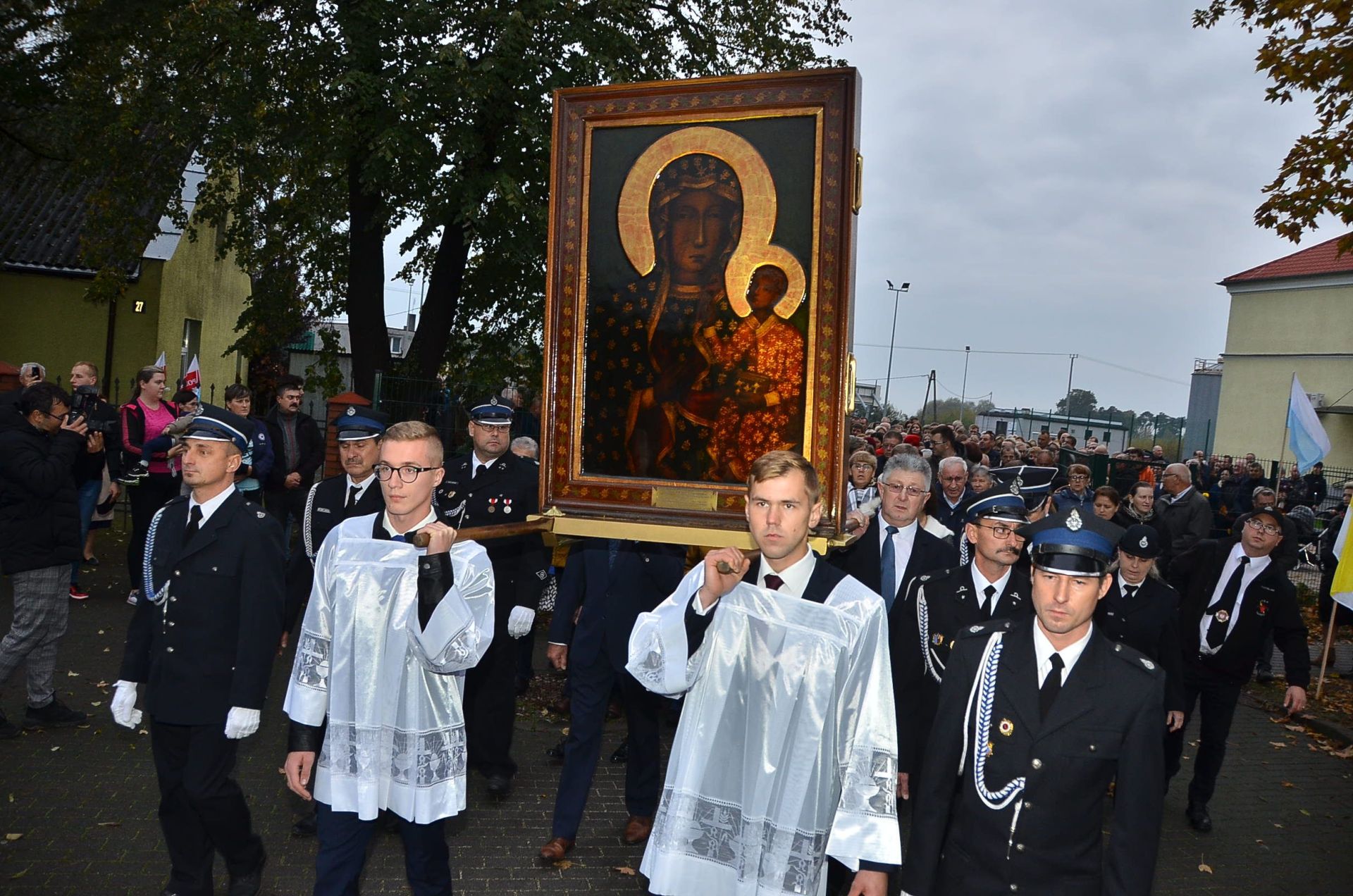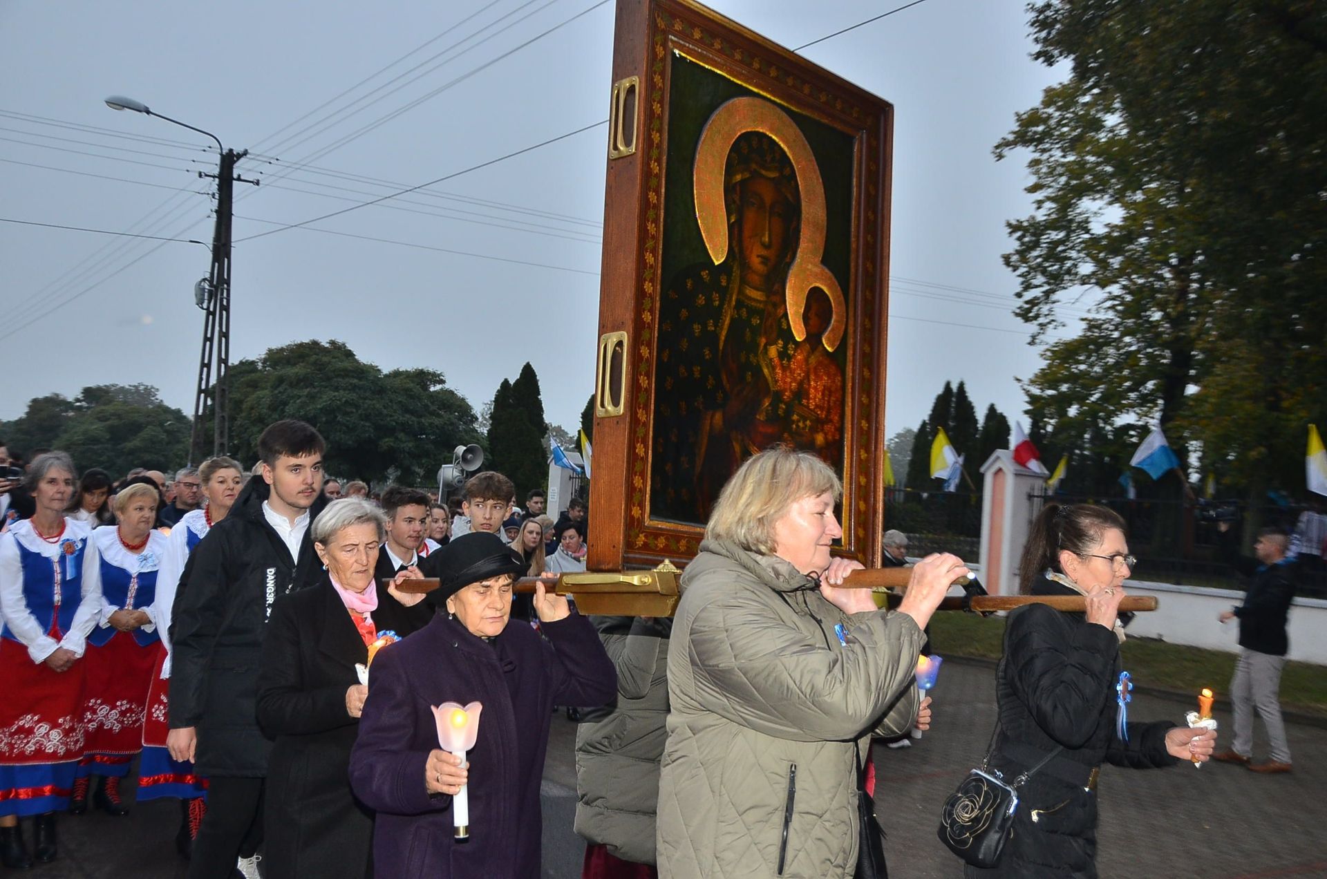 Maryja gościła w naszej parafii całą dobę. 17 października o godz. 16.00 rozpoczęła się Msza święta na zakończenie nawiedzenia. Po Mszy święta ojciec proboszcz pożegnał cudowny wizerunek Maryi odczytując akt zawierzenia, po czym z kościoła wyruszył procesyjny orszak. Obraz został przeniesiony do samochodu – kaplicy i w eskorcie samochodu policyjnego a także strażackiego odjechał do parafii Broniewo.