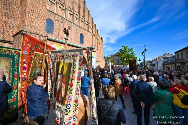 Zwieńczeniem peregrynacji Obrazu Pani Częstochowskiej w dekanacie sieradzkim I było nawiedzenie Ikony w Bazylice Mniejszej Wszystkich Świętych w Sieradzu, a tym samym, sanktuarium świętego Józefa Patrona Diecezji Włocławskiej. Licznie zebrani wierni w dzień św. Floriana pod przewodnictwem Księdza Biskupa Krzysztofa Wętkowskiego przywitali uroczyście Matkę, w asyście strażaków, którzy wnieśli relikwie swojego Patrona. O północy 21 księży, pochodzących z parafii albo w niej pracujących, celebrowało Najświętszą Eucharystię. Następnie mieszkańcy parafii oraz sympatycy sanktuarium czuwali przy Obrazie. Podkreślić należy, że od godziny 3 do 4 trwali na posterunku niezawodni Sieradzcy Pielgrzymi, a od godziny 6 do 7 czuwały Siostry Urszulanki, które poprowadziły również „Godzinki”. W liturgii Mszy Świętej o godzinie 12 uczestniczyły dzieci z przedszkoli i szkół podstawowych, które są „naszymi Orłami”.Bogu niech będą dzięki za ten czas łaski.