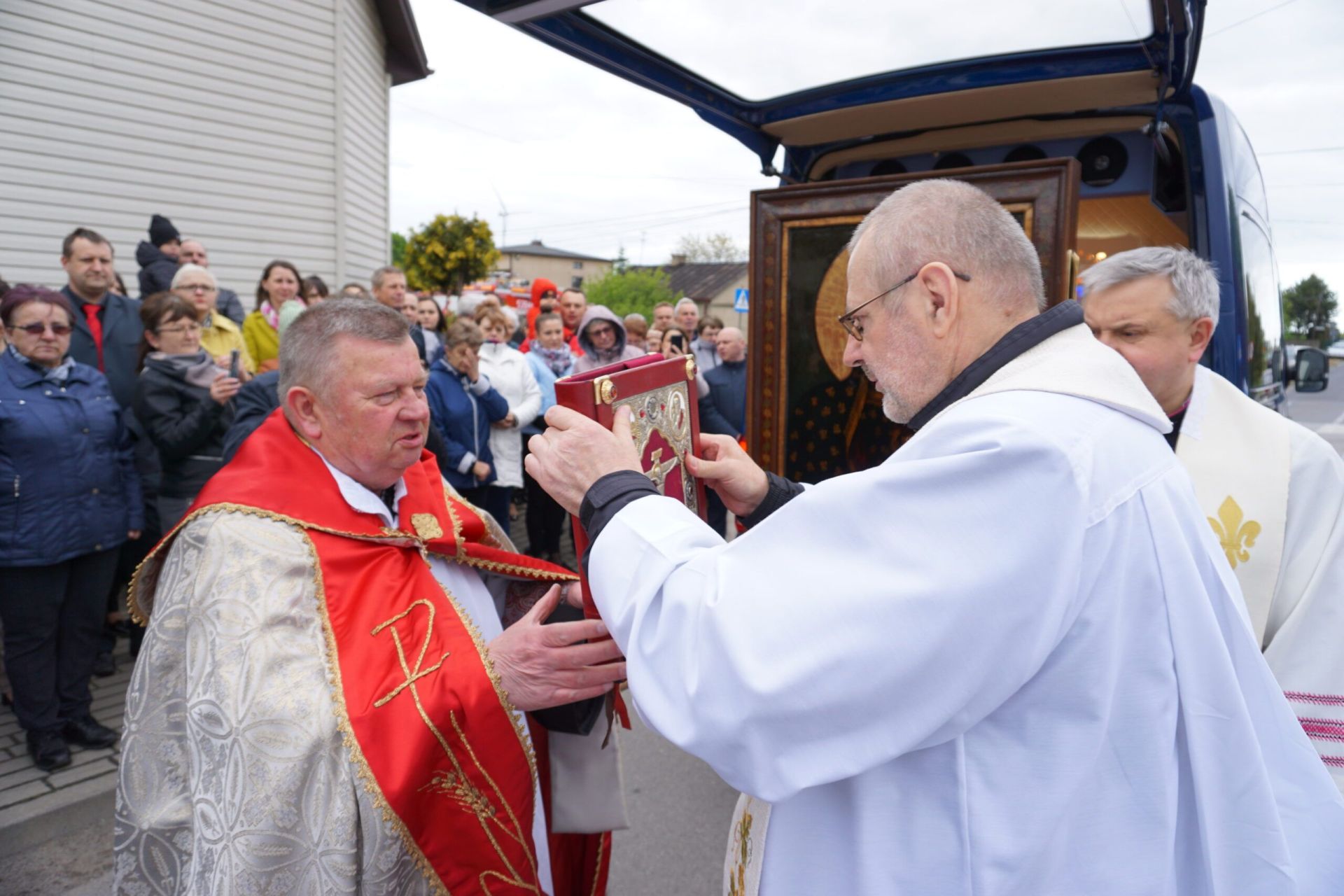 W Parafii św. Walentego w Kłocku obraz Matki Boskiej przywitali: Parafianie, ks. Proboszcz Janusz Tomczak i ks. bp Stanisław Gębicki.