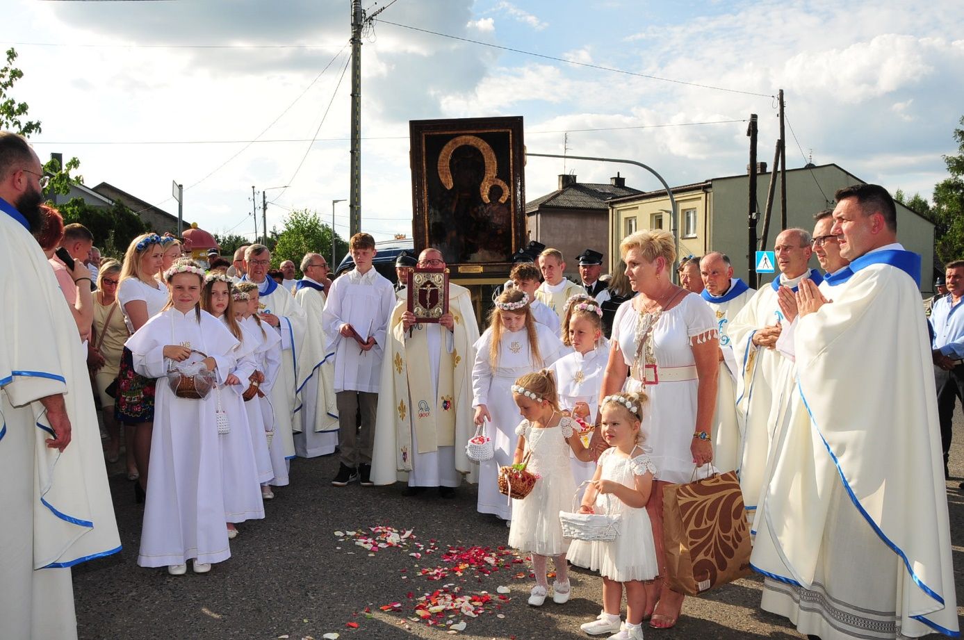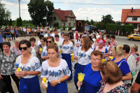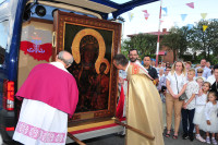 29 czerwca br., w czwartek o godz. 17.00. wierni zgromadzili się w kościele na Nabożeństwie Oczekiwania. O godz. 17.30. w procesji do miejsca powitania obrazu uczestniczyli: bracia strażacy, osoby niosące krzyż i świece, następnie kobiety niosące feretrony i chorągwie, delegacje do niesienia obrazu (dyrekcje szkół, mężczyźni, kobiety, młodzież), ministranci, dzieci, księża i wszyscy wierni. Podczas przygotowania obrazu orkiestra wykonała fanfarę Jasnogórską. Maryję w ikonie z Jasnej Góry powitał dziekan ks. Stanisław Nowak, w imieniu parafii proboszcz ks. Karol Zając, przedstawiciele rodzin, młodzieży i dzieci. Na miejscu powitania zgromadzili się tłumnie parafianie i duchowieństwo dekanatu tuliszkowskiego, księża pochodzący z parafii, którzy koncelebrowaliMszę Św., aby z radością i wzruszeniem powitać Matkę Bożą.
