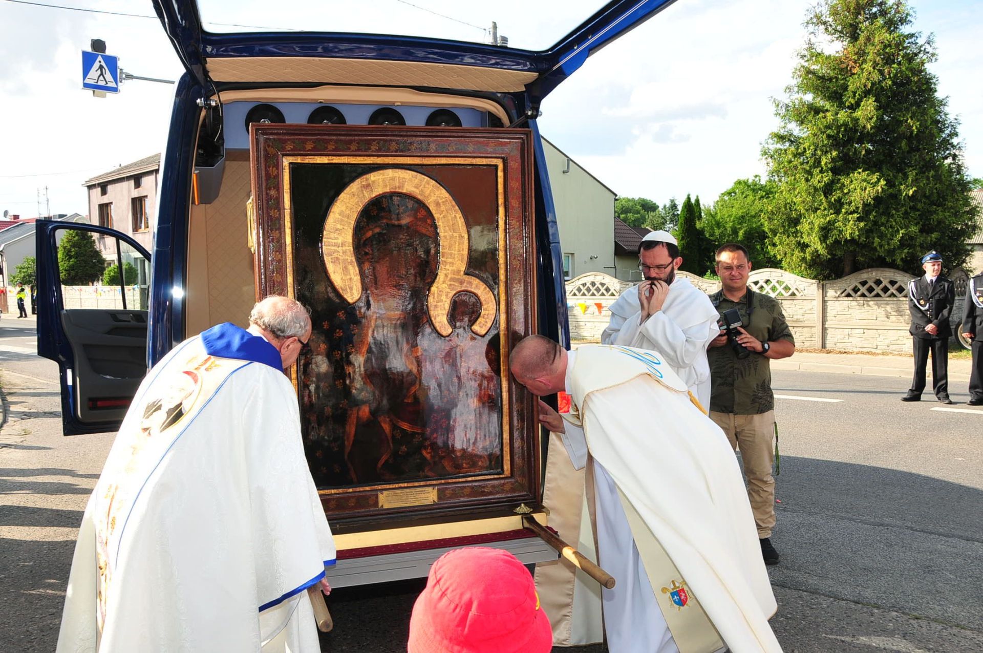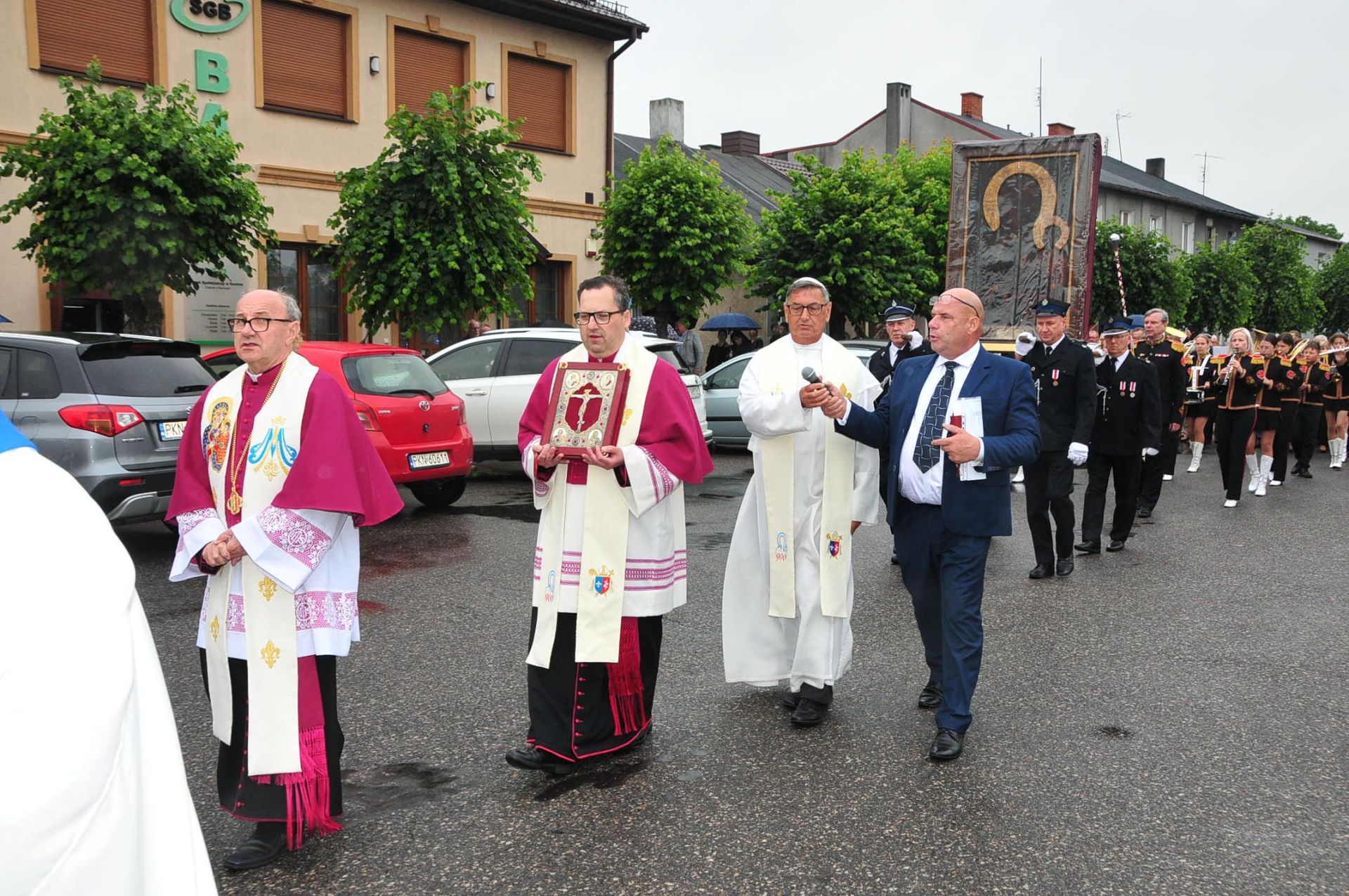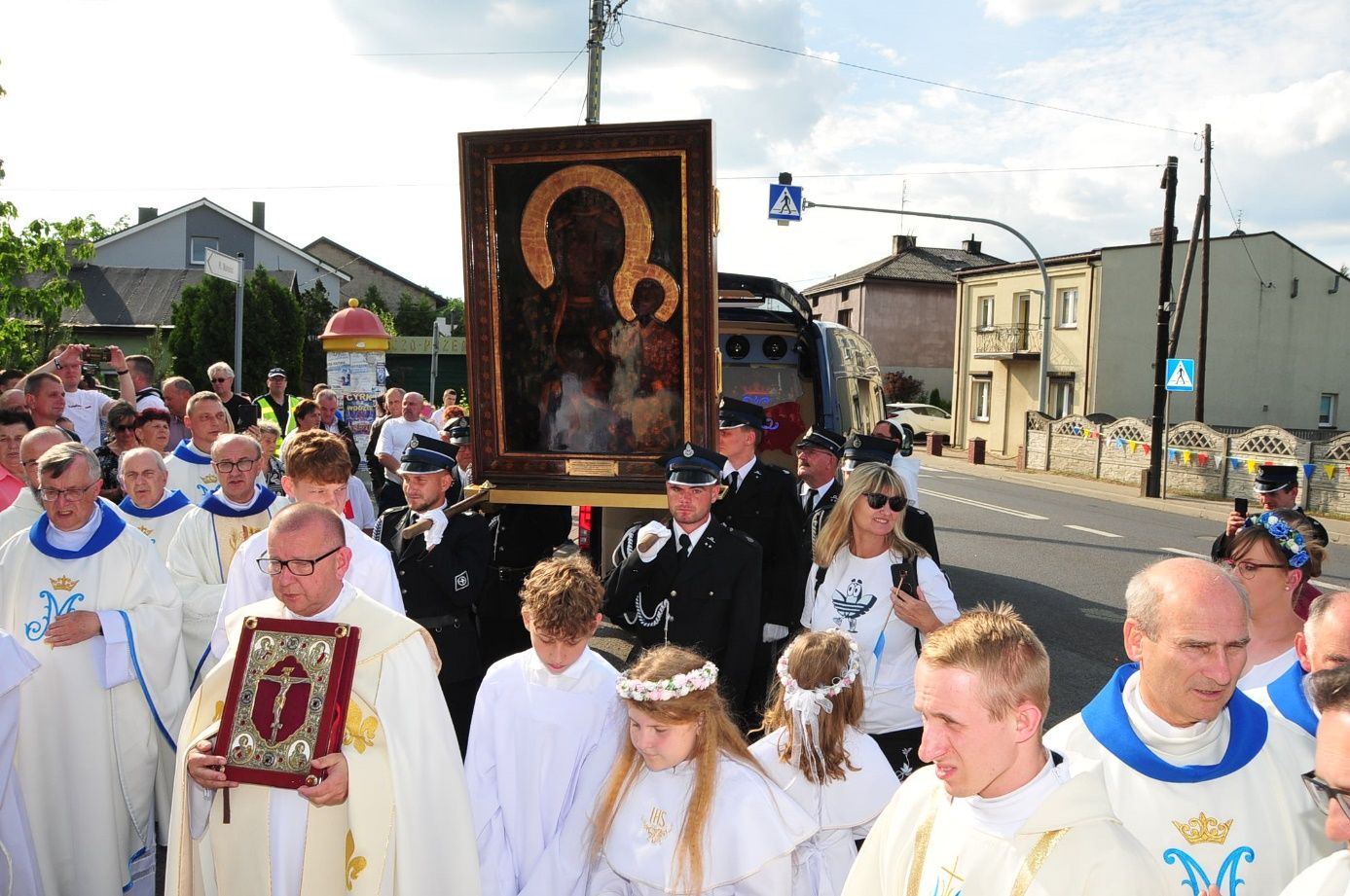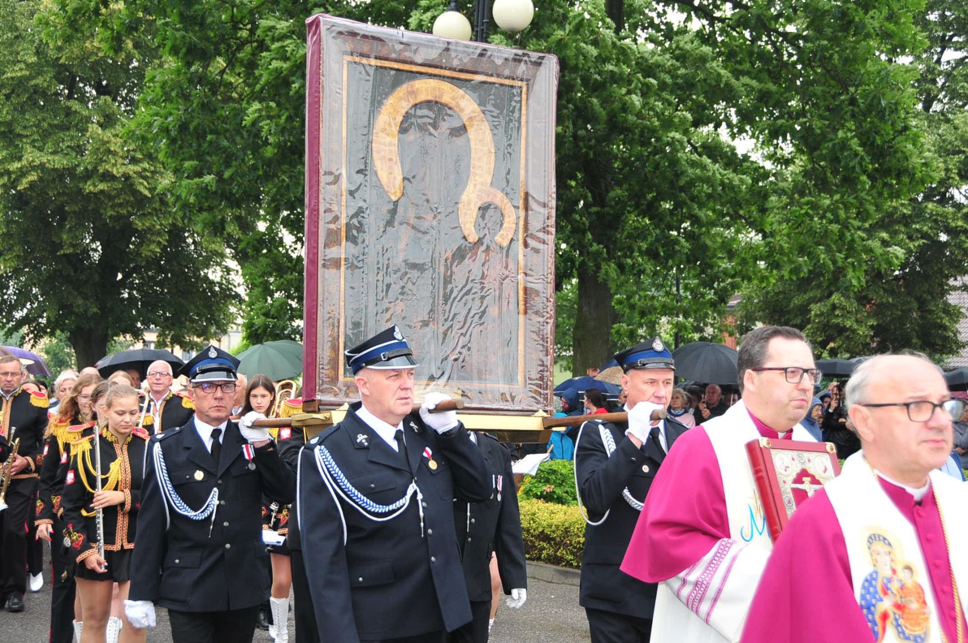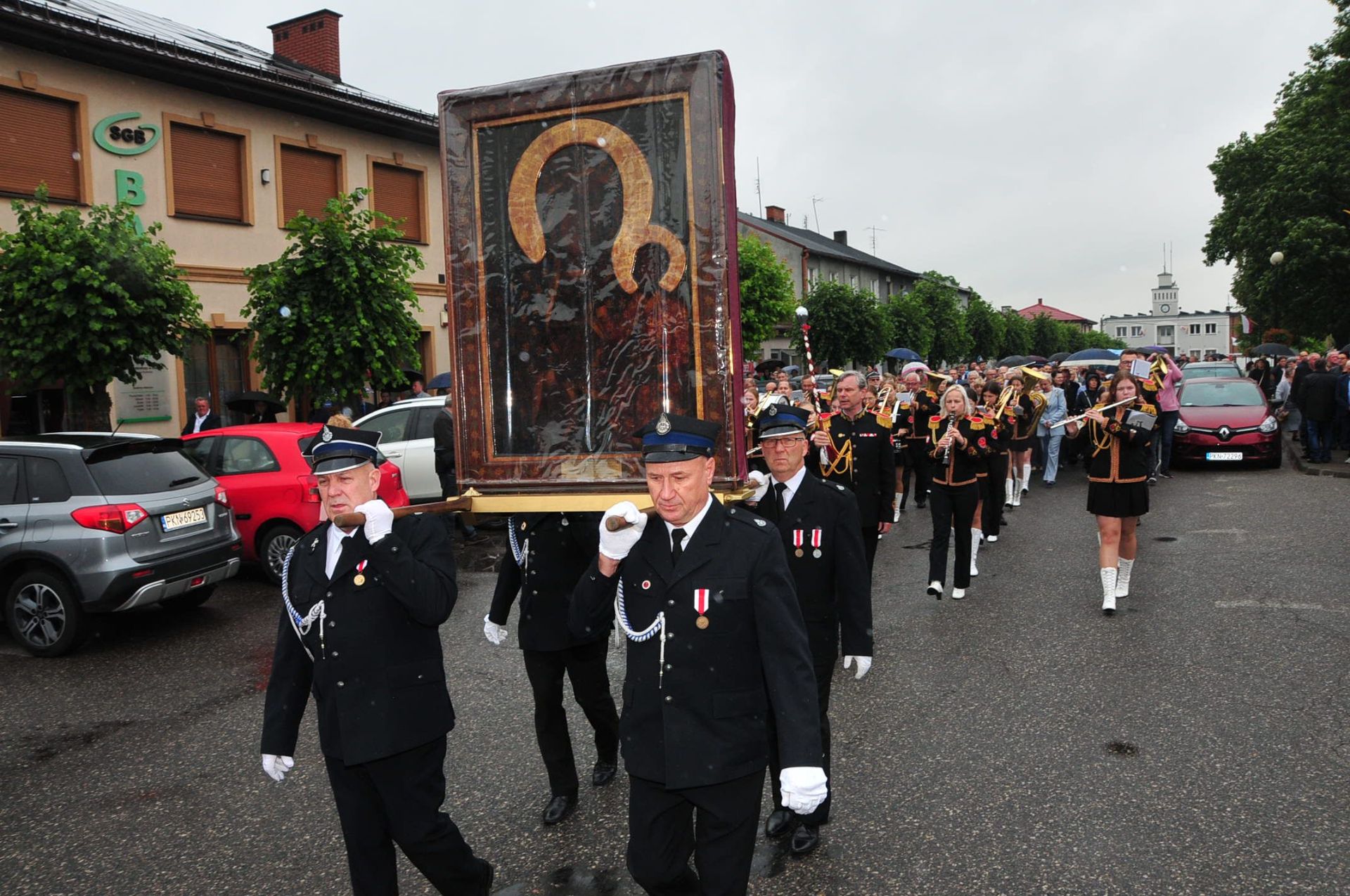 Po uroczystej Eucharystii wierni odprowadzili Obraz Matki Bożej, który w asyście strażaków i motocyklistów Grupy Jocker’s, został przekazany do parafii p.w. Wszystkich Świętych w Kucharach Kościelnych.