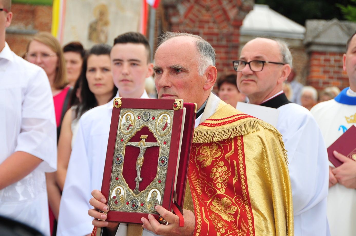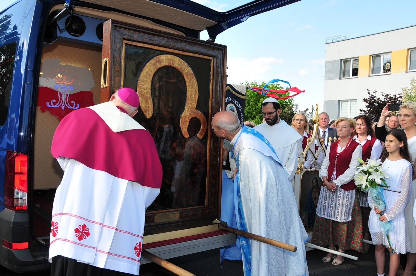 Uroczystości zostały zakończone eucharystią o godzinie 16.00, której przewodniczył ksiądz biskup senior Wiesław Alojzy Mering. Ikona Matki Bożej Częstochowskiej w uroczystej procesji została złożona do samochodu-kaplicy i udała się do parafii Lisiec Wielki.