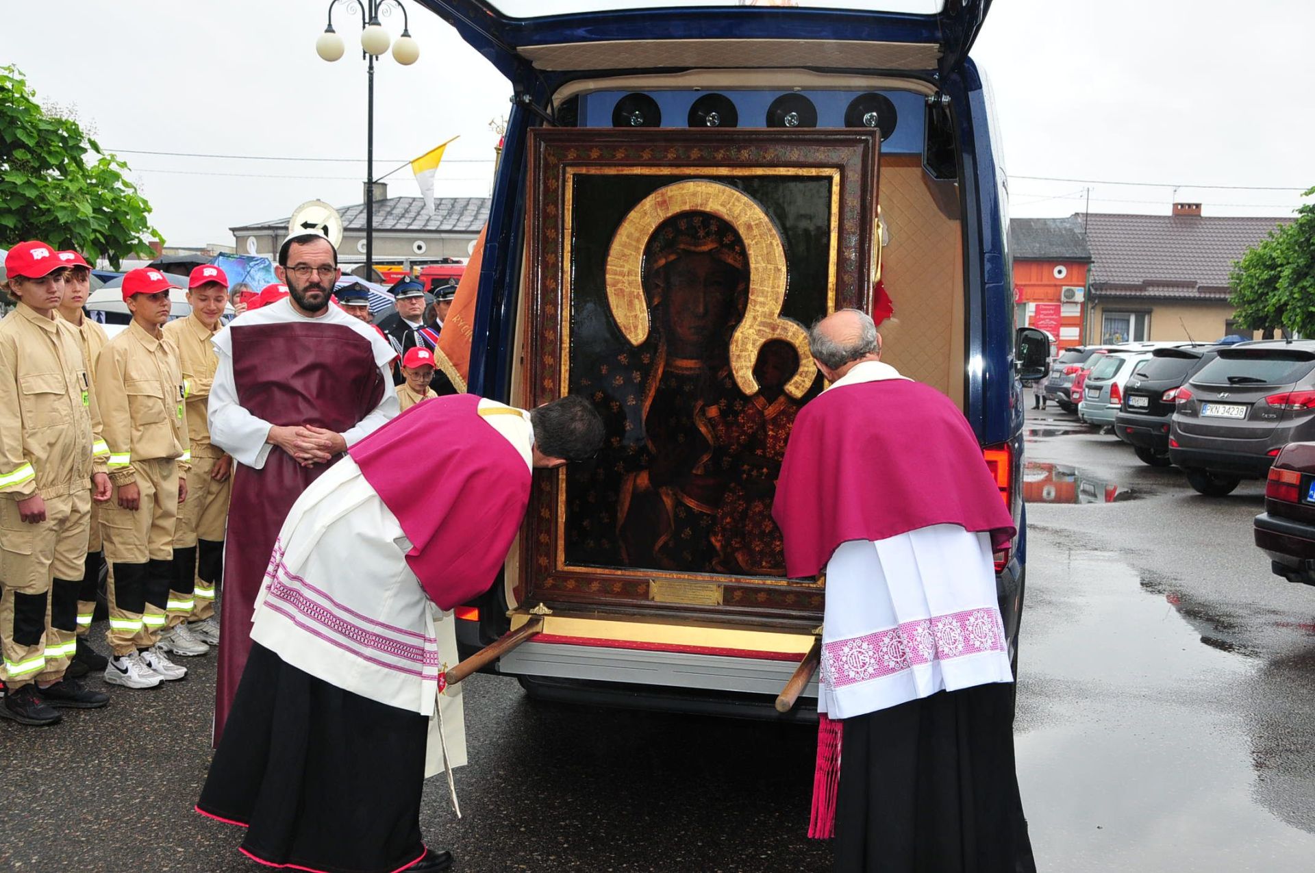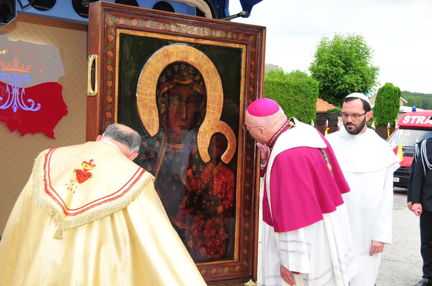 Z parafii pw. Św. Jana Chrzciciela w Liśćcu Wielkim, w asyście druhów strażaków, Pani Jasnogórska powędrowała do parafii Narodzenia Najświętszej Maryj Panny w Wyszynie.
