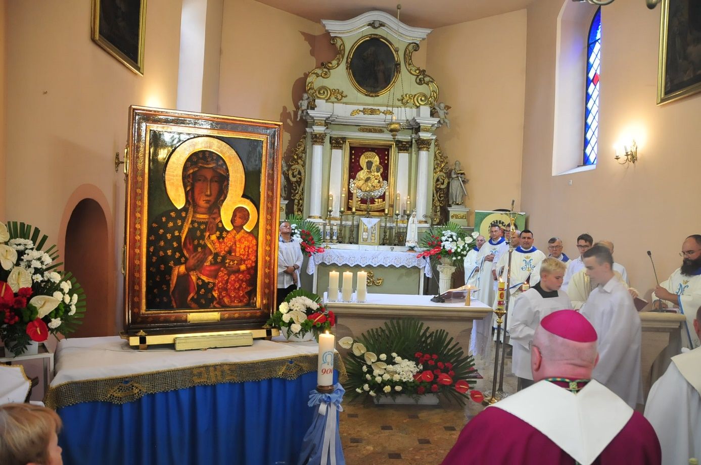 Powitaniu Obrazutowarzyszył Bp Krzysztof Wętkowski, który również przewodniczył Mszy Świętej koncelebrowanej z udziałem wszystkich księży naszego dekanatu i wygłosił kazanie.