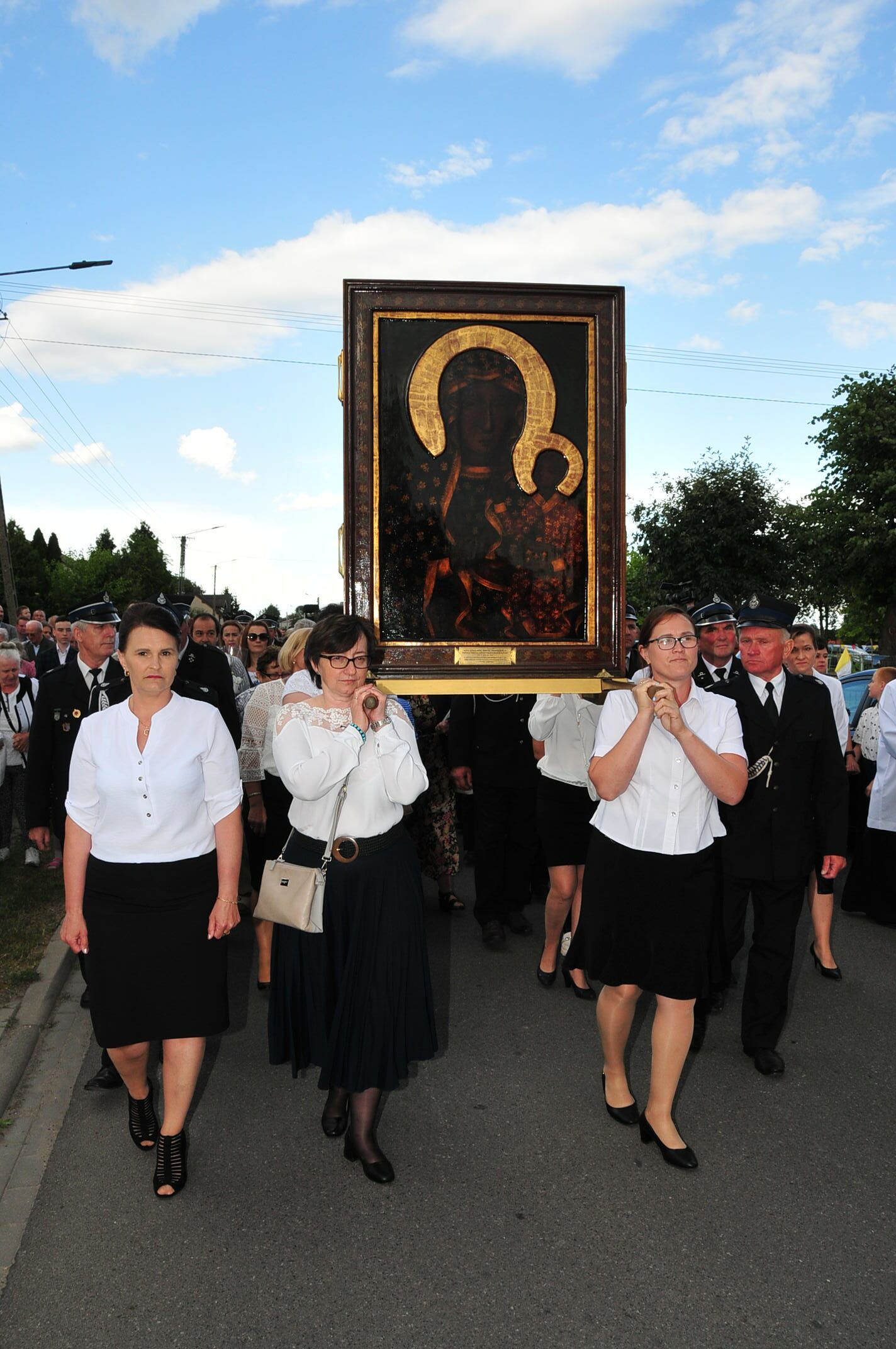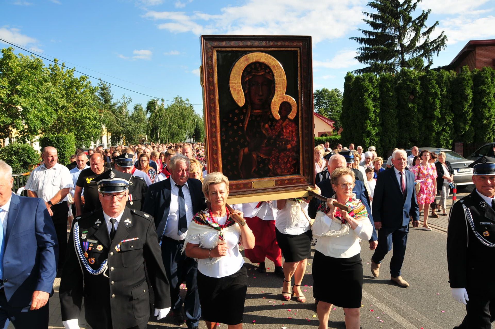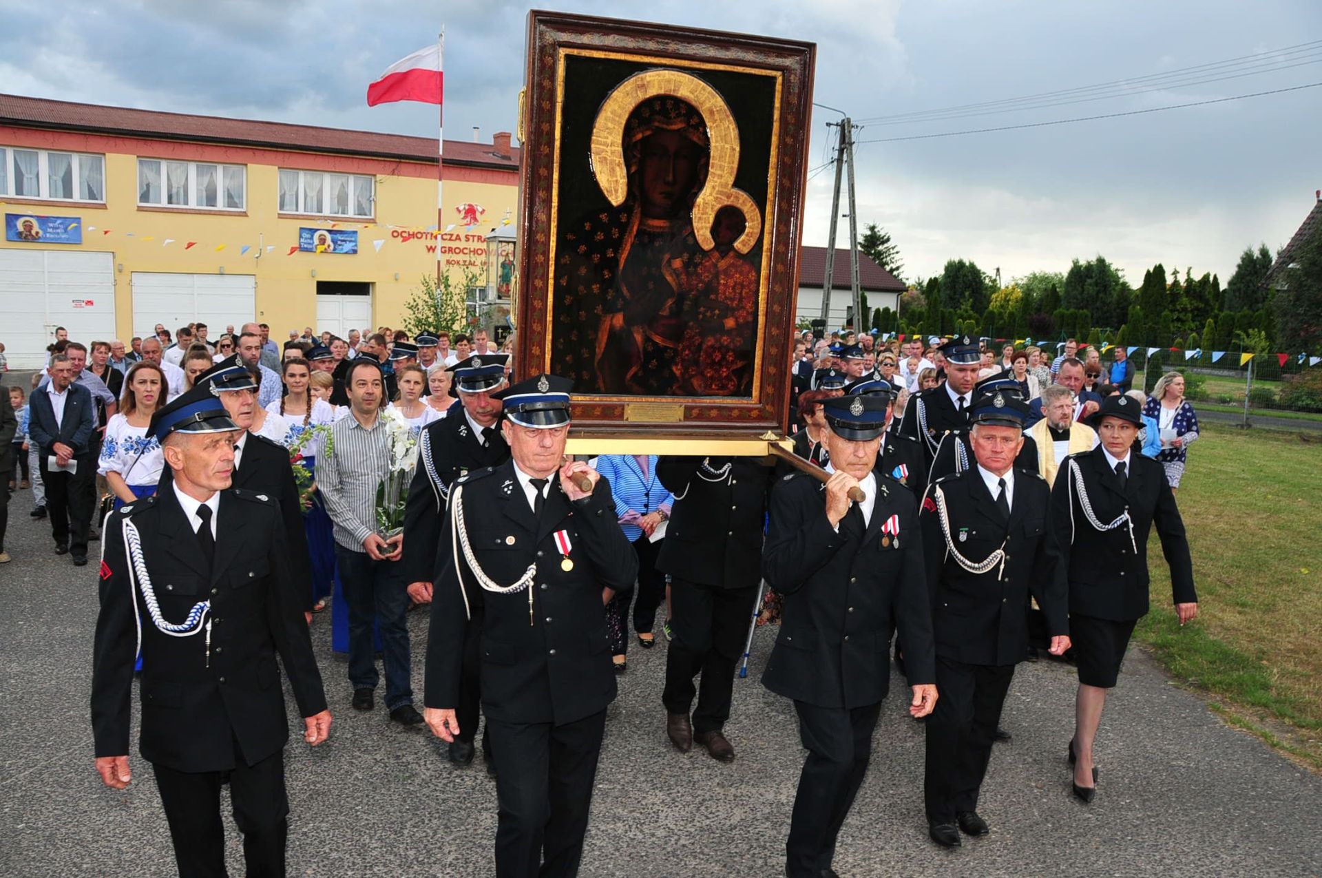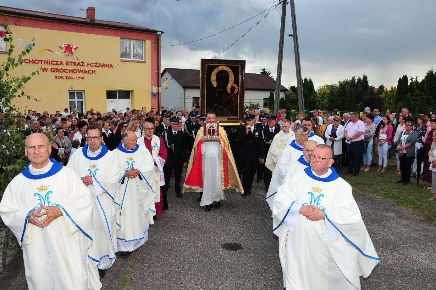 Z parafii Wszystkich Świętych w Dzierzbinie, w asyście druhów strażaków – Pani Jasnogórska powędrowała do parafii Św. Doroty w Grochowach.