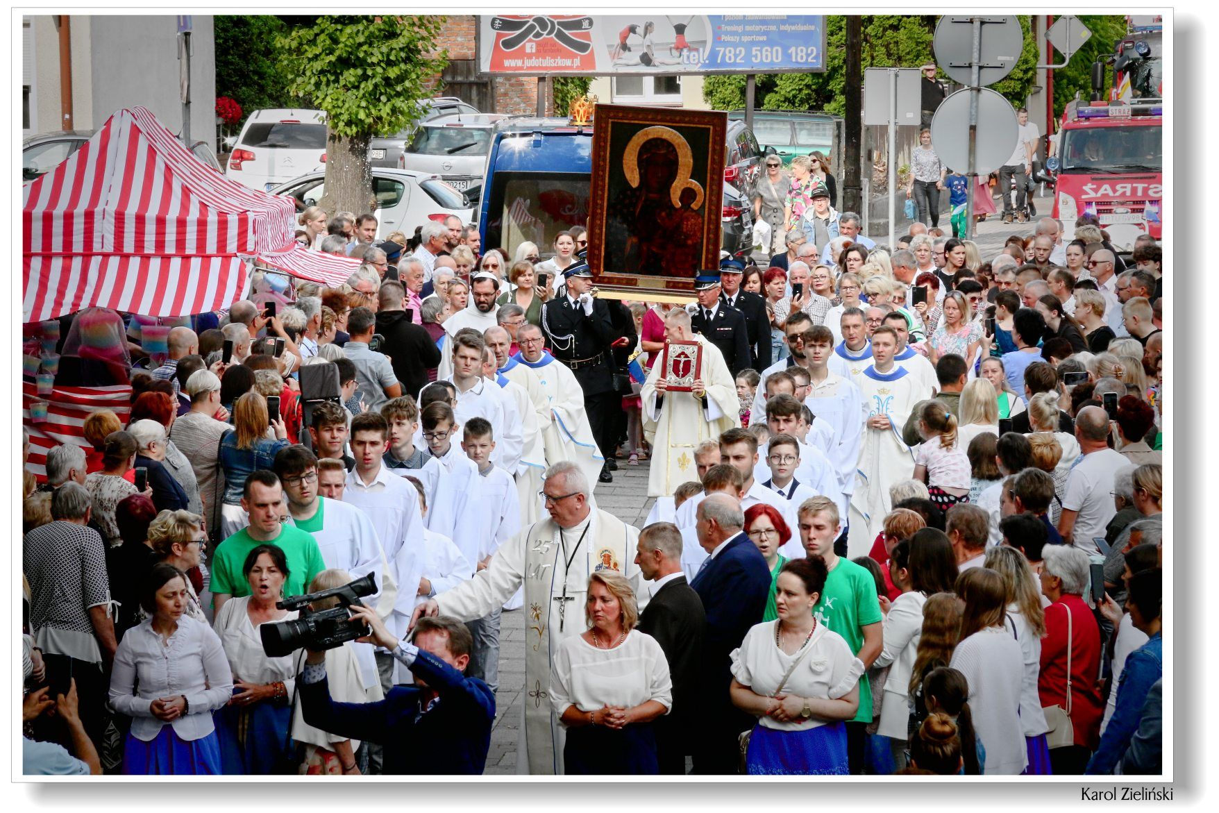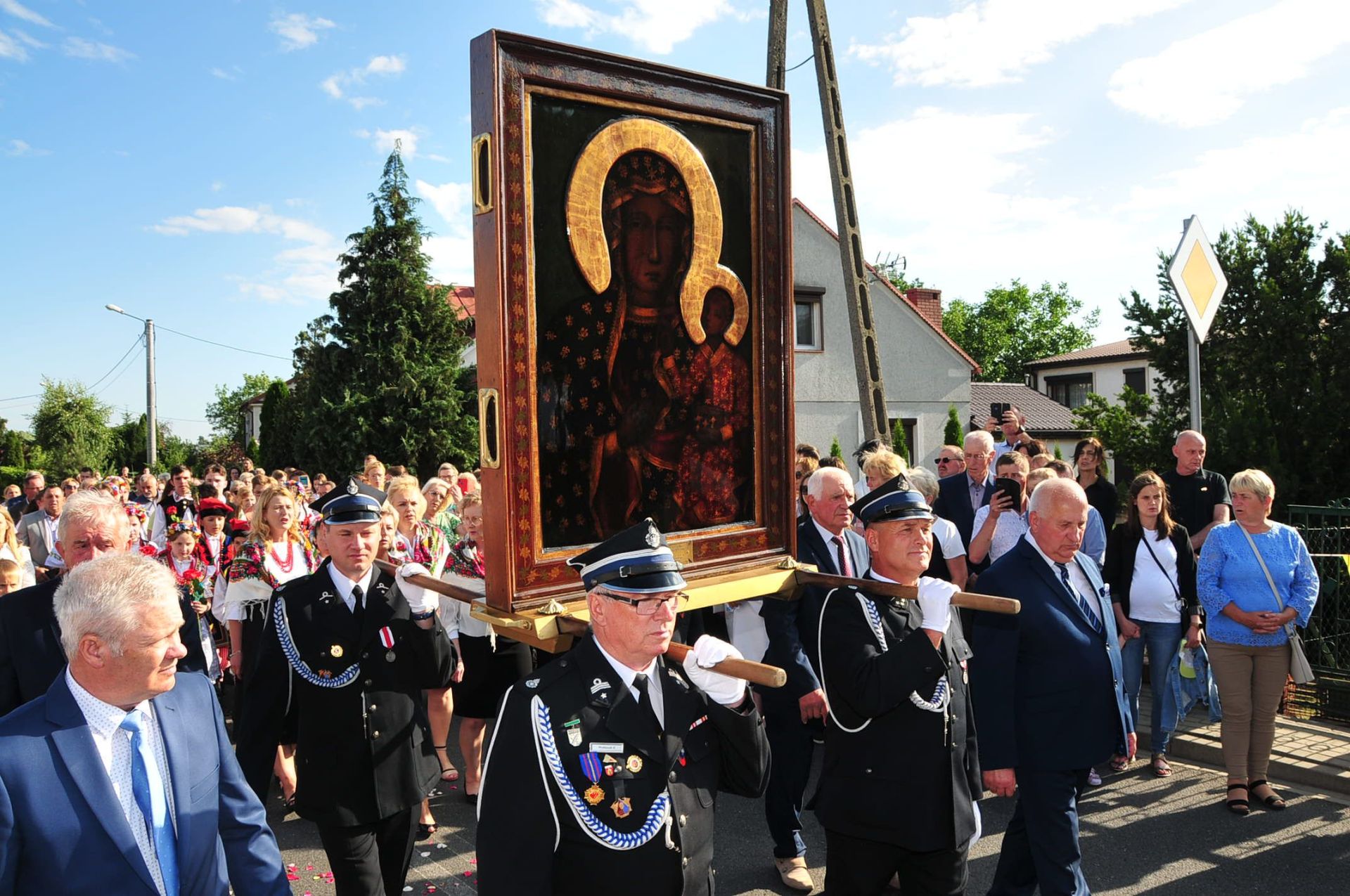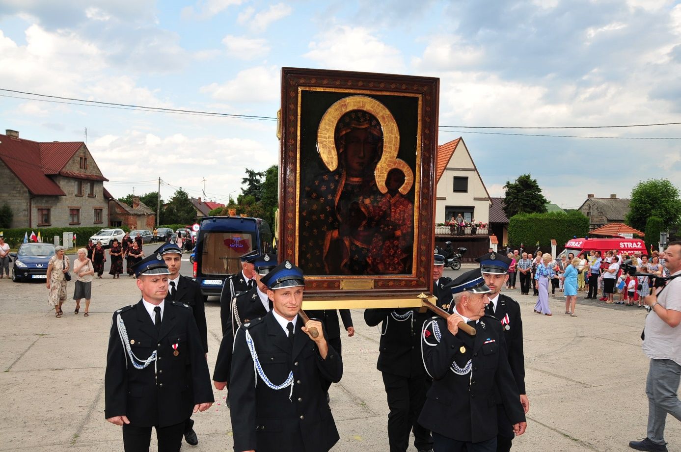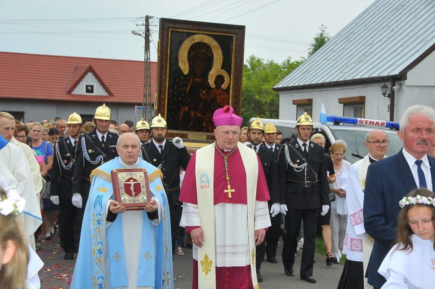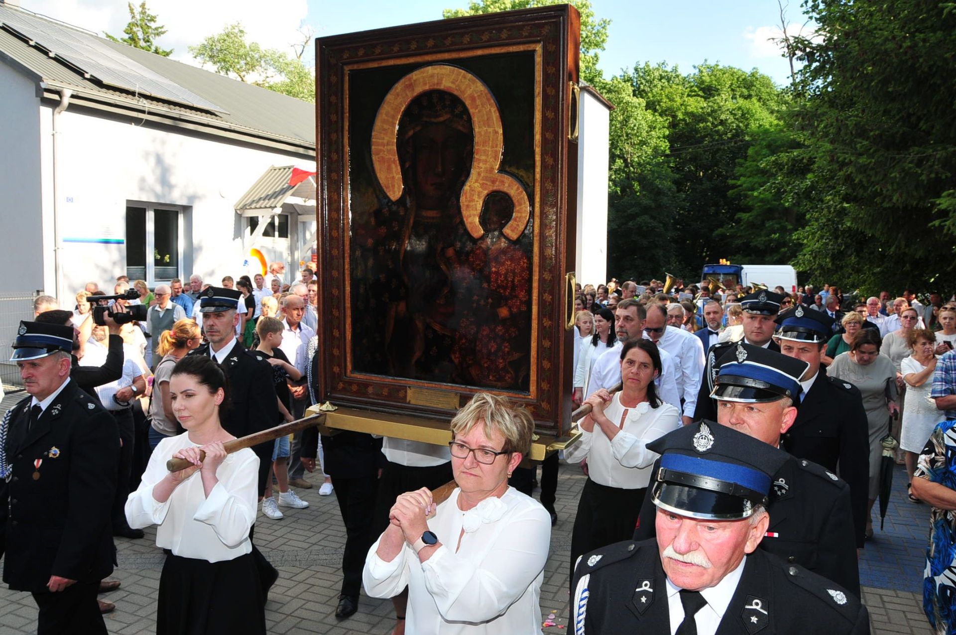 Z parafii Wszystkich Świętych w Dzierzbinie, w asyście druhów strażaków – Pani Jasnogórska powędrowała do parafii Św. Doroty w Grochowach.