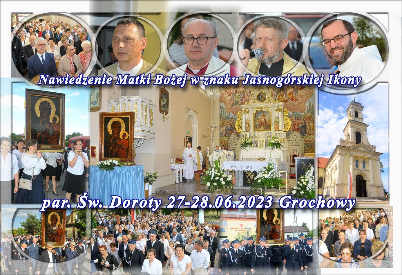 Nawiedzenie Matki Bożej w znaku Ikony Jasnogórskiej w parafii p.w. Świętej Doroty w Grochowach, poprzedziłoTriduum Maryjne(24-26 czerwca br.), które poprowadził ks. Piotr Grzymała, salezjanin. Przez codziennie sprawowaną Eucharystię o godz. 09.00. i 18.00., sakrament pokuty, dwu godzinąAdorację Najświętszego Sakramentuoraz spotkania o godz. 15.00., przy kapliczkach na terenie parafii, naKoronce do Miłosierdzia Bożego, parafianie starali się jak najlepiej przygotować się na spotkanie z Matką Bożą.