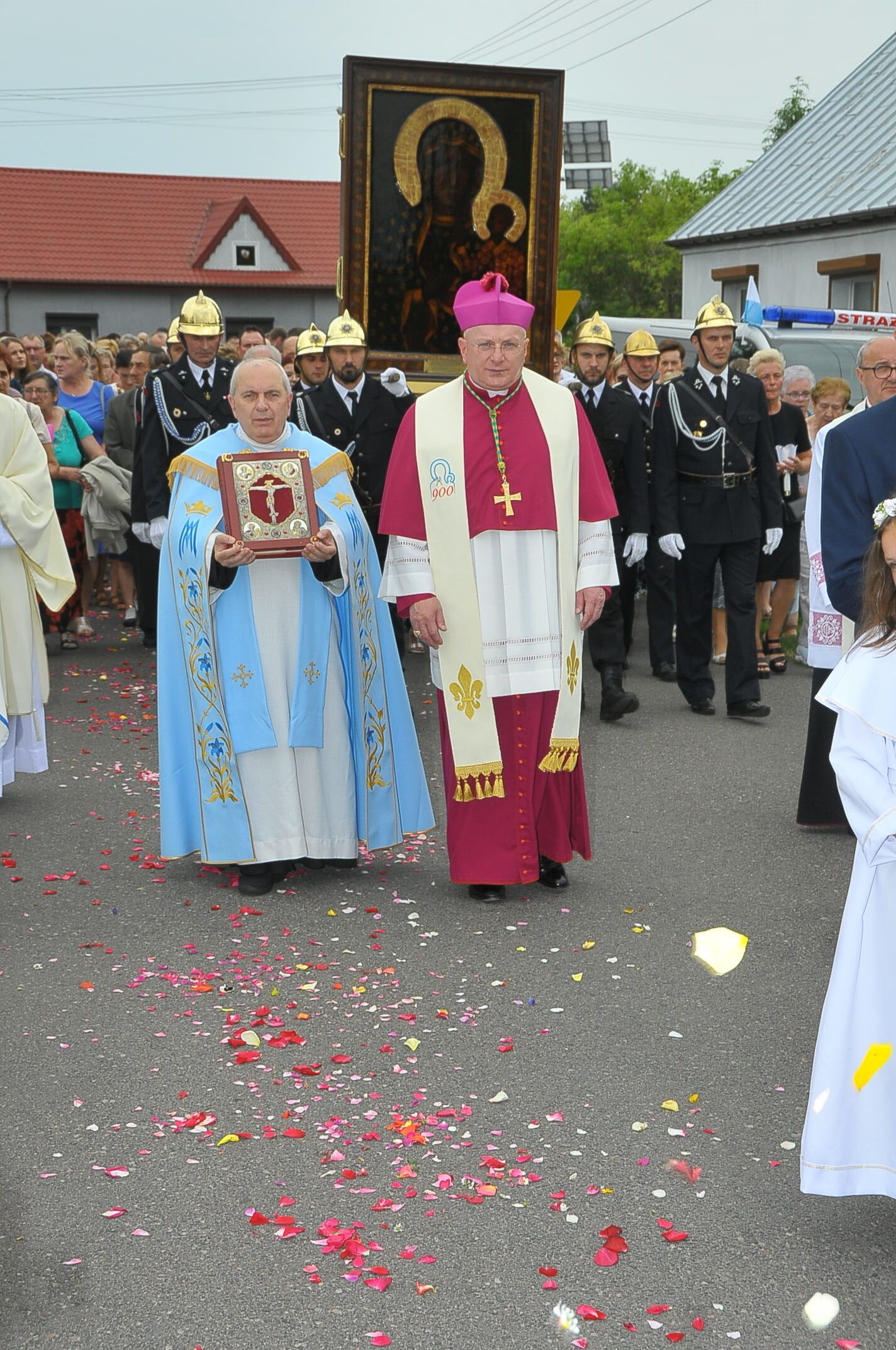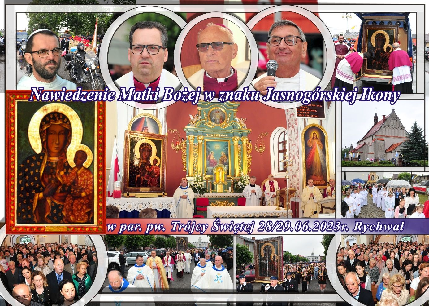 W środę 28 czerwca br., o godz. 16.30. rozpoczęło się w kościeleNabożeństwie Oczekiwania, tłumnie zgromadzili się parafianie i duchowni z dekanatu tuliszkowskiego. Następnie w uroczystej procesji wszyscy zebrani udali się na główny plac w Rychwale czyli Plac Wolności, dawny rynek. Z wielkim wzruszeniem i radością, w kroplach wyczekiwanego deszczu o godz. 17.30. powitaliśmy Maryję, naszą ukochaną Matkę, Panią Jasnogórską – Królową Polski. Maryja przybyła w asyście wozów strażackich i motocyklistów z grupy Joker’S.