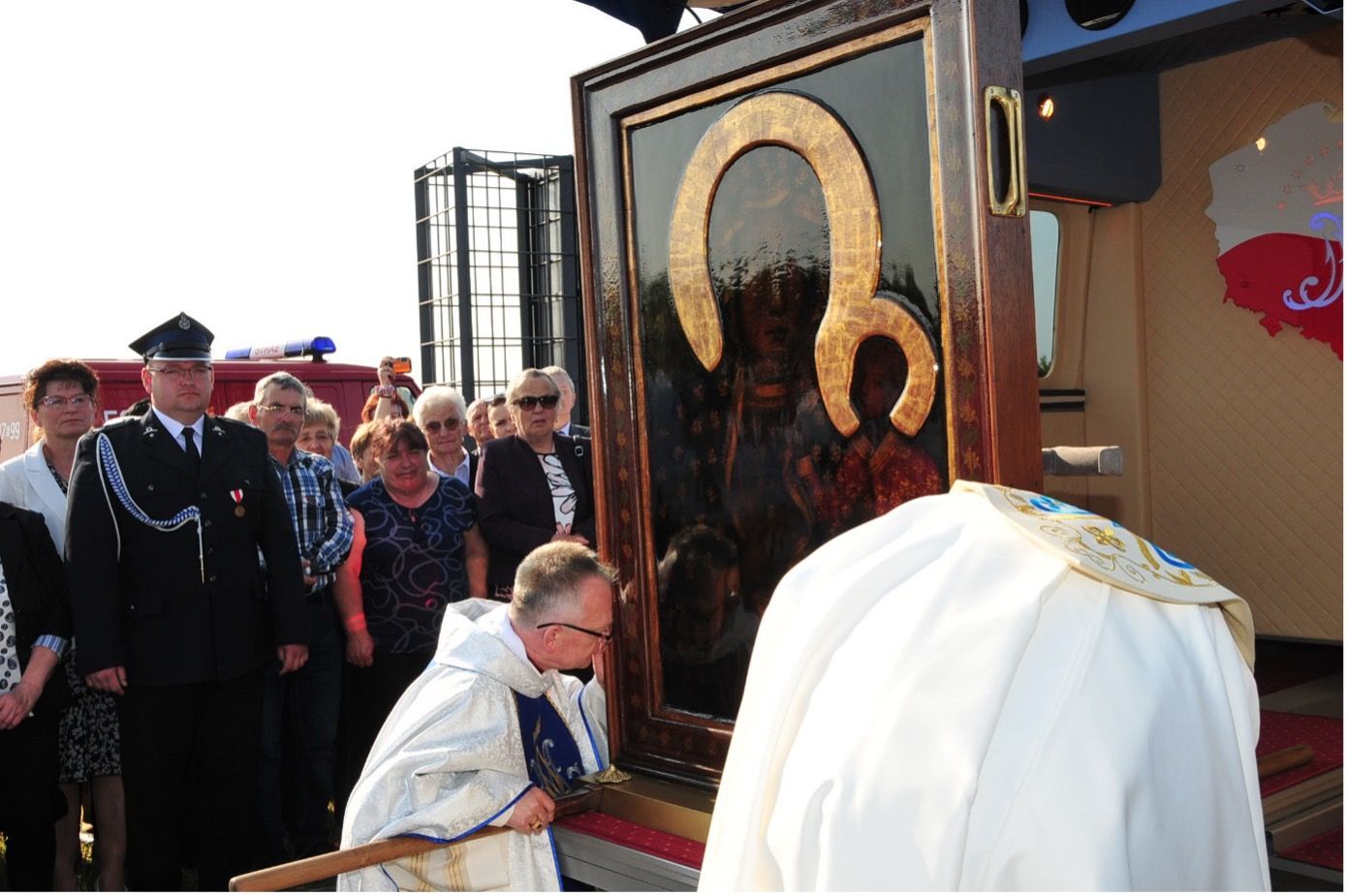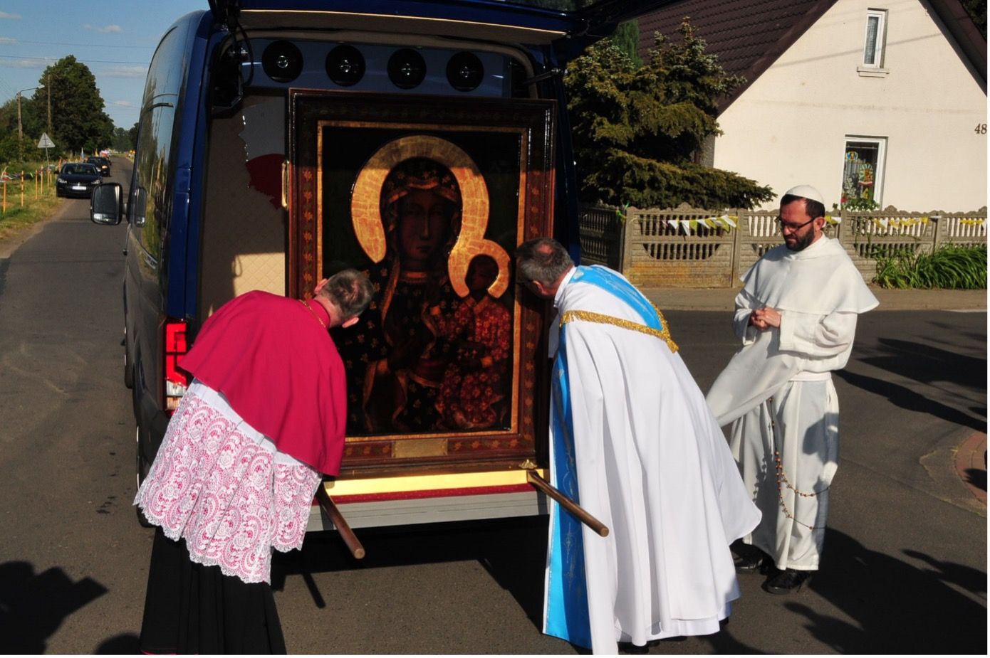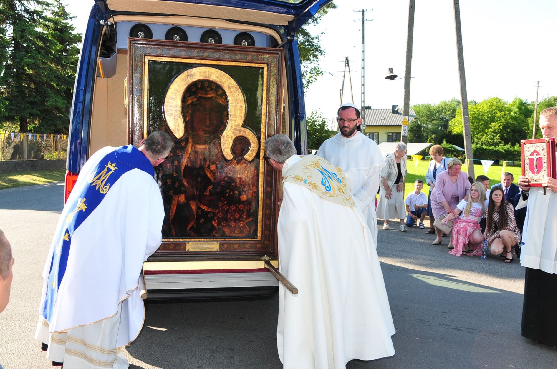 O godz. 16.45 ks. Proboszcz zawierzył przed obrazem Matce Bożej całą parafię, po czym nastąpiło wyprowadzenie obrazu ze świątyni do samochodu– kaplicy. Pięć minut przed godz. 17.00 Obraz Jasnogórski wobec zgromadzonych parafian opuścił nasza parafię i udał się do parafii Niewiesz.