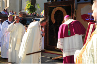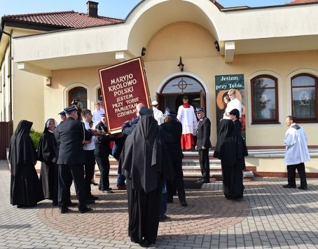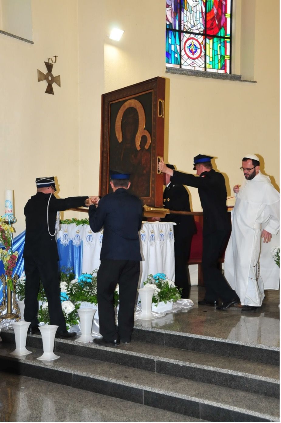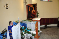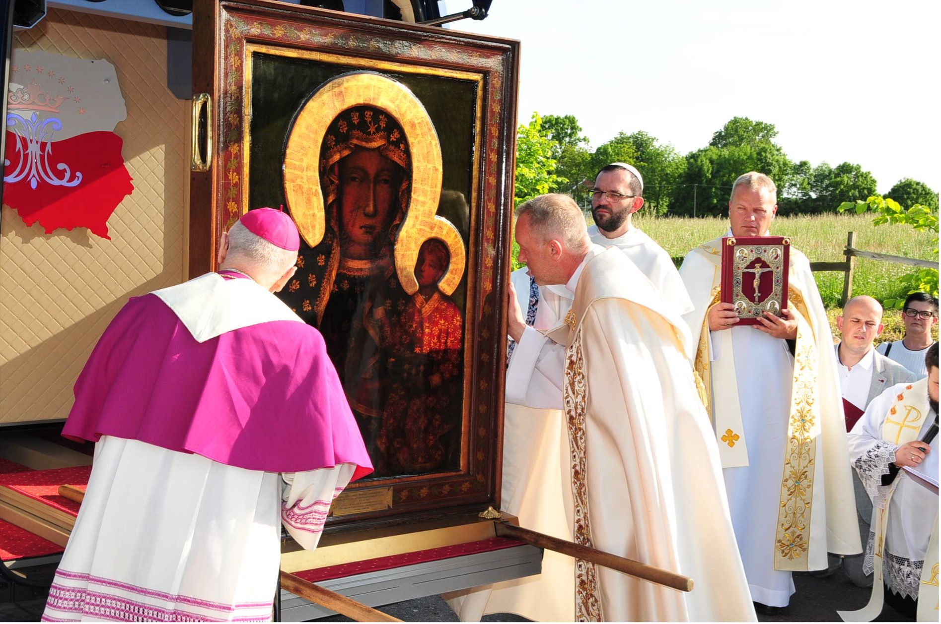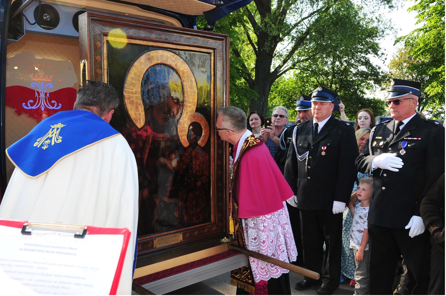 O godz. 16.45 ks. Proboszcz zawierzył przed obrazem Matce Bożej całą parafię, po czym nastąpiło wyprowadzenie obrazu ze świątyni do samochodu– kaplicy. Pięć minut przed godz. 17.00 Obraz Jasnogórski wobec zgromadzonych parafian opuścił nasza parafię i udał się do parafii Niewiesz.