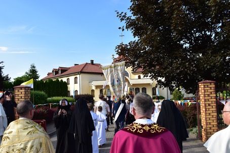 Matka Boża po spotkaniu z wiernymi w Sanktuarium, w świątecznym orszaku, została uroczyście odprowadzona doKlasztoru Sióstr Matki BożejMiłosierdzia, gdzie do piątku po Bożym Ciele przebywała. Uroczyste zawierzenie Parafii Królowej Polski miało miejsce w starej części Sanktuarium, przy ołtarzu i łaskami słynącym obrazie Matki Bożej Częstochowskiej, przed którym modliła się i wielu łask dostąpiła Święta Faustyna. Odnowiony Obraz Matki Bożej wraz z odnowionym ołtarzem, zostały ofiarowane Bogurodzicy jako wotum wdzięczności za życie i powołanie Świętej Faustyny z naszej Parafii. Za wielką godność wszyscy poczytują sowie, że tegoroczną uroczystość Bożego Ciała, swoją obecnością zaszczyciła sama Matka Boża. Eucharystyczna procesja była wyjątkowa: pierwszy ołtarz – w starej części sanktuarium, przed obliczem Czarnej Madonny, milczącym świadkiem modlitwy Helenki; drugi w klasztorze – przed obliczem Matki Bożej z kopi Obrazu Jasnogórskiego. Na zakończenie pobytu Matki Bożej Częstochowskiej w Świnicach Warckich, po Mszy świętej sprawowanej w klasztorze, Siostry Zgromadzenia Matki Bożej Miłosierdzia, zawierzyły Bogarodzicy swoją wspólnotę zakonną. Świadkami tego aktu oddania byli licznie zgromadzeni parafianie i pielgrzymi. „Wielkie rzeczy uczynił nam Bóg”. Modlitwą Maryi z „Magnificat”, stajemy przed Jego Majestatem pełni zdumienia i wdzięczności. Bogu niech będą dzięki za dar Nawiedzenia Najświętszej Maryi Panny.