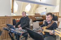 O godz. 15.00 modlono się Koronką do Bożego Miłosierdzia, po której przyszedł czas na adorację Najświętszego Sakramentu. – Nie jesteśmy sobie w stanie wyobrazić, jak wielkie łaski Boga dla nas przygotował – mówił ks. Janusz Kowalski, proboszcz parafii i kustosz sanktuarium rozpoczynając modlitwę. Zwieńczeniem dnia była modlitwa uwielbienia, którą prowadził Jakub Tomalak wraz z zespołem. Ten ceniony muzyk i kompozytor, znany z głębokiego nurtu muzyki chrześcijańskiej, nadał popołudniowej modlitwie wyjątkowego charakteru. – Oddajemy Ci nasze choroby, nasze lęki, nasze rodziny... Chcemy wołać z nadzieją i radością: Jezu, ufam Tobie! – modlono się.