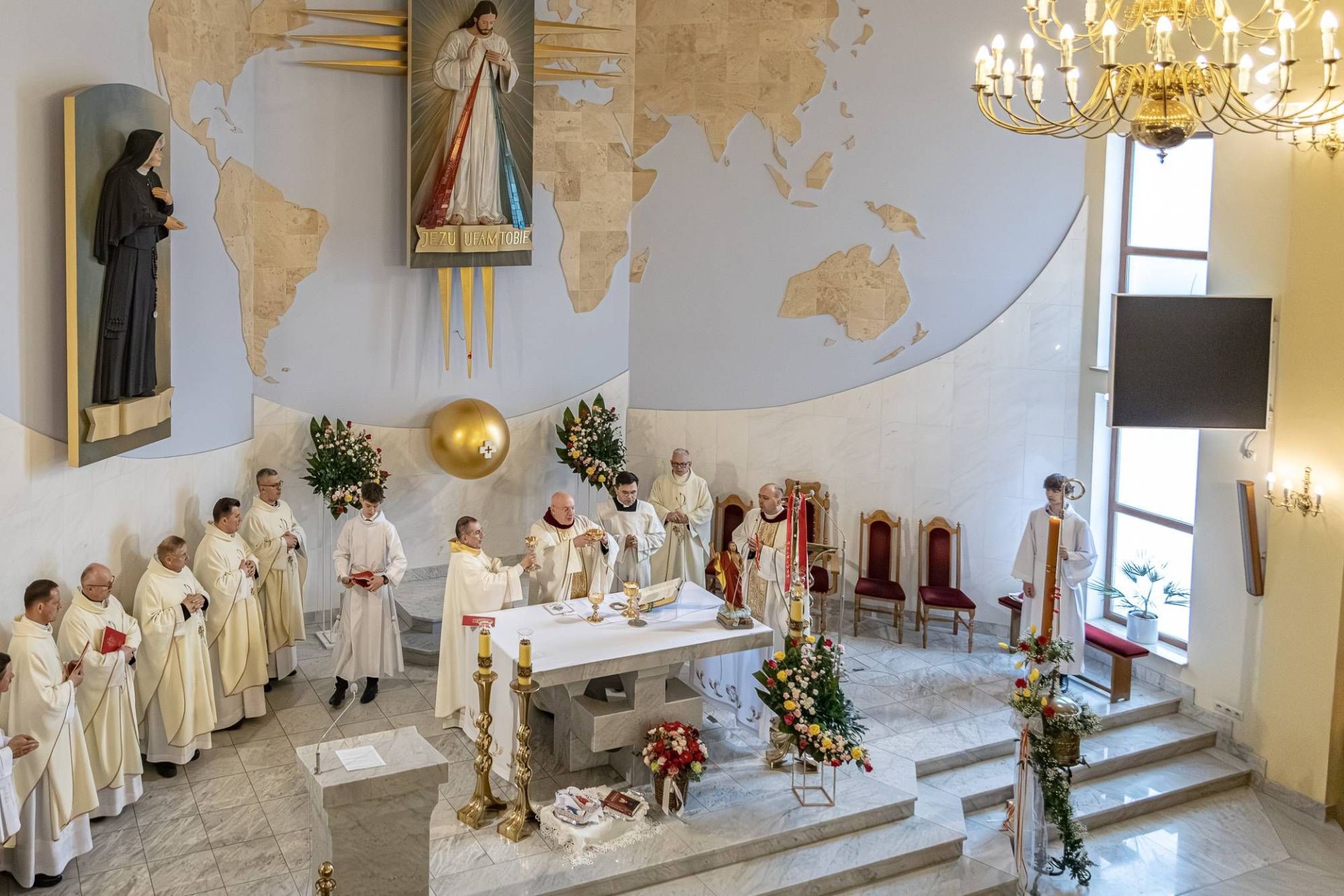 „Pokój wam” – wezwanie, które wybrzmiewa w odczytywanej dziś Ewangelii skierowane jest do całego świata. Biskup Wętkowski w homilii zauważył, że Faustyna spisywała „Dzienniczek” w dramatycznym czasie między dwiema wojnami światowymi, przekazując wezwanie do zwrotu ku Bożemu miłosierdziu. Mimo upływu lat to orędzie pozostaje aktualne. Świat zdaje się wręcz oddalać od Bożego miłosierdzia, zamiast się do niego zbliżać. Żyjemy w szczególnym momencie konfliktów wynikających z poczucia władzy oraz pogardy dla prawa i ludzkiego życia. – Pokój może przyjść tylko, gdy ludzkość zwróci się z powrotem ku Bogu i ku Bożemu Miłosierdziu – mówił ksiądz biskup podkreślając, że każdy jest wezwany do modlitwy o pokój na świecie. – Nie ma innej drogi do pokonywania zła, jak mnożenie dobra i dzielenie się dobrem.