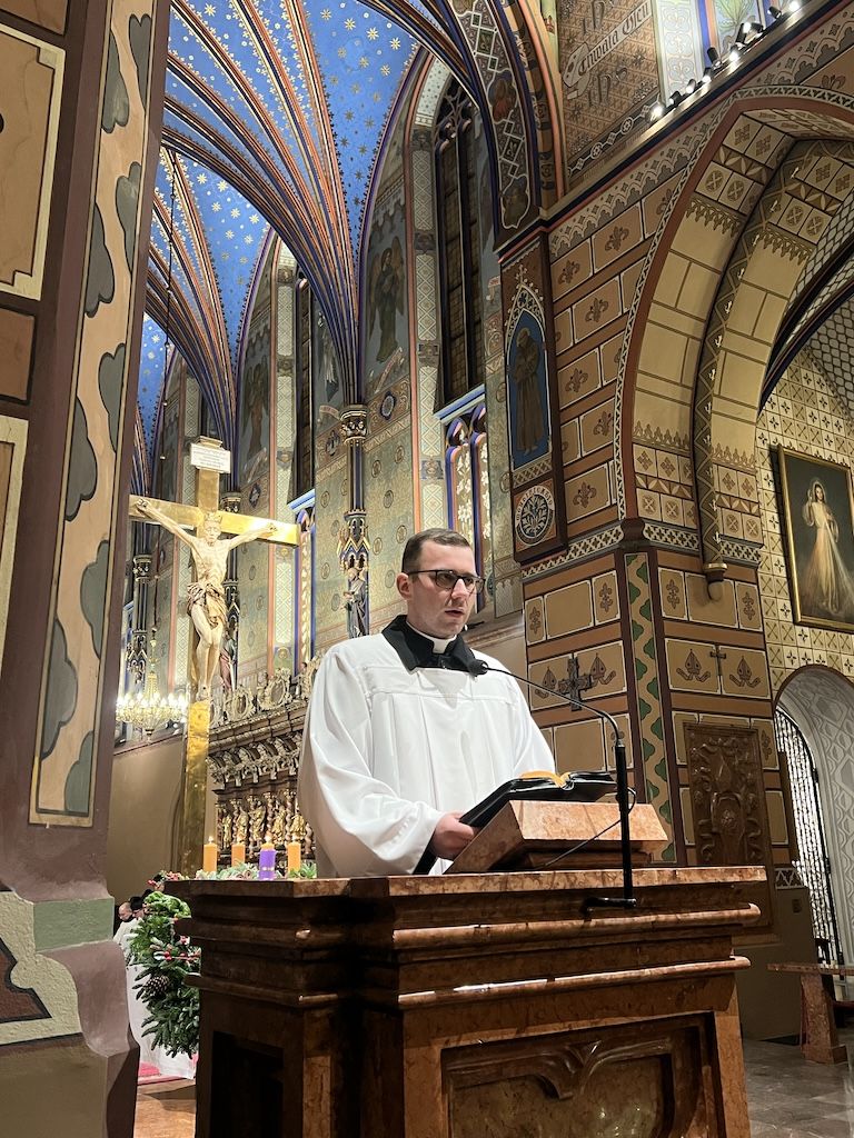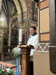 Kazanie wygłosił ks. prał dr Jacek Kędzierski, który zwrócił uwagę, że rozpoczynający się nowy rok liturgiczny i duszpasterski wierni przeżywają jako uczniowie i misjonarze Chrystusa. Podkreślił, że istnieją dwie rzeczywistości, o których warto pamiętać na początku Adwentu: znaczenie słowa „adwent” oraz symbolika wieńca adwentowego. Przypomniał, że wywodzące się z łaciny słowo adventus oznacza przyjście – zarówno to historyczne, sprzed dwóch tysięcy lat, jak i to ostateczne, na które chrześcijanie nieustannie oczekują. Wskazał również, że Adwent jest czasem wyciszenia serca, aby na nowo odkryć swoje powołanie do bycia uczniem i misjonarzem poprzez słuchanie Jezusa i świadczenie o Nim życiem.